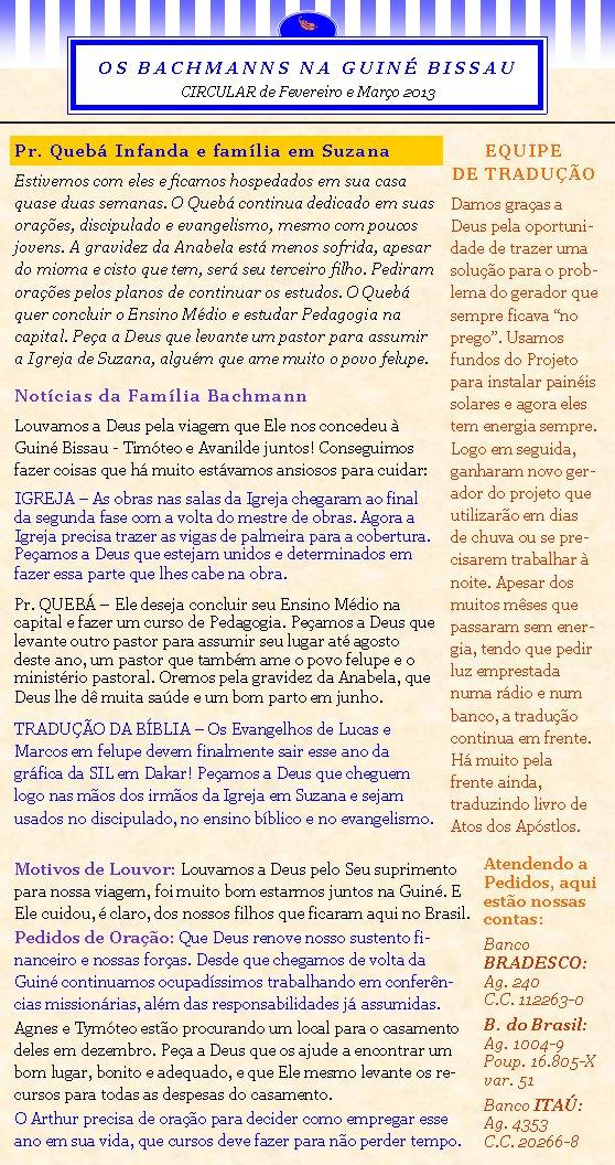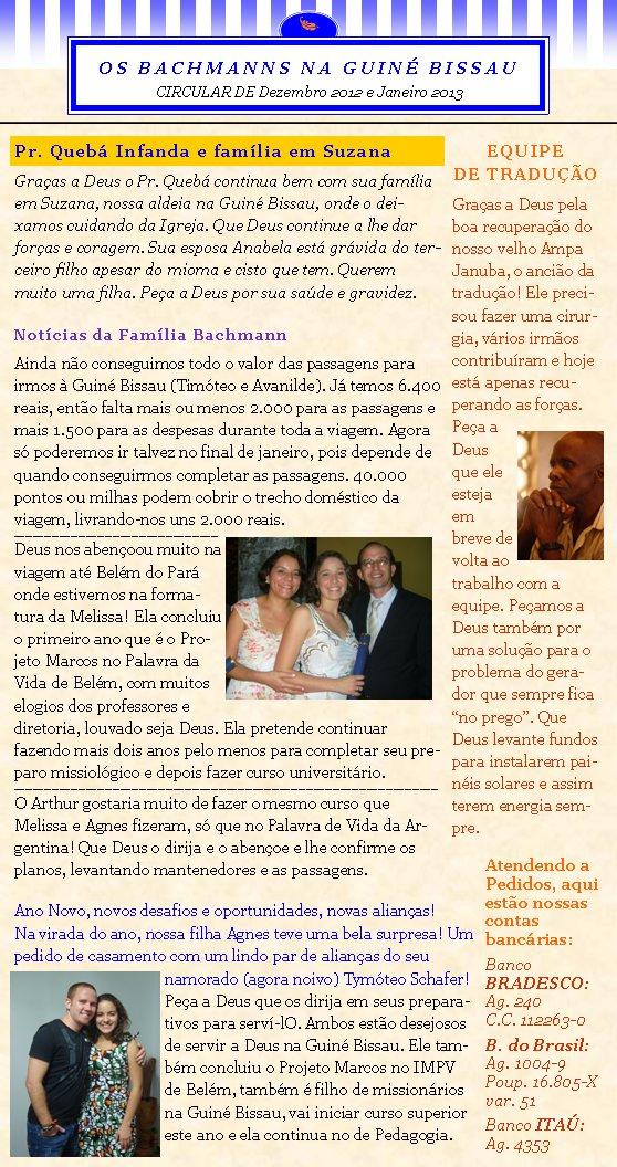Circular dos Bachmanns Dez 2012 Jan 2013 _ Graças a Deus conseguimos o valor das passagens, em breve estaremos na Guiné! _ Timóteo Bachmann