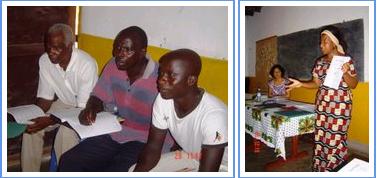 Leiamos Jola (a língua do povo Felupe) As matrículas já estão abertas! Venha enquanto há vagas! Por apenas 1000 francos CFA (em torno de 5 reais) terás vaga garantida em sala, um caderno de caligrafia, lápis, afiadeira (apontador), borracha, a cartilha Upisenal Êjoolay, o livrinho - gibí do Angebonaw ata Hutumahu (O Sapo Bocudo) e um livro de Leitura com histórias e lendas do folklore felupe. Que tal? Não te interessa? Mas esperamos muito que interesse ao povo daqui, apesar do fato de valorizarem muito mais o português, entendendo que é como um "passaporte" para a riqueza e vida boa na Europa! Triste ilusão! Entendem que a escola é lugar de se ensinar falar a língua e adquirir a cultura portuguesa, ou, de se tornar "civilizado". Por isso, quando falamos de escola em Jola-Felupe, logo dizem que não precisam, que já sabem falar a língua Jola. Ao que perguntamos: Mas os portugueses, em sua terra, só porque falam sua língua, por acaso não vão à escola? Diante do que não sabem o que responder. Precisam despertar para a necessidade de serem alfabetizados na sua língua materna, o Jola-Felupe, porque então será bem menos difícil aprender a ler e escrever o português, que nem sabem falar, mas pelo menos já conheceriam a maioria das letras do alfabeto e já saberiam reconhecer letras e formar palavras... PEÇA A DEUS QUE OS DESPERTE E TENHAMOS MUITOS ALUNOS EM NOVEMBRO APRENDENDO A LER E ESCREVER EM SUA PRÓPRIA LÍNGUA! Estamos no final da primeira semana de Formação de Alfabetizadores, ministrado por nossas amigas Marly e Juliana. Os futuros professores serão nossos irmãos (na foto) Pedro Sambú, Armando Djemme e possivelmente, se ele se sair bem no treinamento, nosso velho Ampa Januba. Contávamos com Mario Sungú, que foi impedido de participar por causa de um treinamento para professores onde ele é obrigado a estar. Contávamos também com o Tcherno, que não encontrou outro professor para estar em seu lugar na escola para ele poder vir participar desta formação. Além deste programa de Alfabetização, temos outros MOTIVOS DE ORAÇÃO: a) Estudos da Melissa em Goiânia, ainda com dificuldade de ter professores com tempo para ajudá-las nas matérias mais difíceis. b) Estudos do Arthur, ainda com dificuldade de ter aulas de reforço em matemática, física e química com professores daqui. c) sabedoria para entregar o trabalho pastoral ao Pr. Quebá d) Sabedoria na coordenação do campo até janeiro de 2010, pois teremos até lá várias equipes vindo nos visitar ou nos ajudar no trabalho. PODE ORAR!! NOTA: Graças a Deus o "probleminha" do Banco do Brasil foi resolvido, já consigo fazer saques. Se para alguém for mais fácil usar a conta do BB para nos enviar sua benção, pode usar: Ag. 1004-9 Conta Poup. 16.805-X var. 01 No amor do Senhor Jesus, visando a redenção das nações, escrevo pela família Bachmann, com muita gratidão: Timóteo ENTRE DOIS MUNDOS Novembro 2009 Há quase 7 anos estamos entre dois mundos. Desde fevereiro de 2002 que estamos tentando nos adaptar à cultura do oeste africano, da Guiné Bissau, e do povo felupe, que se constitui num mundo totalmente à parte do que conhecemos no Brasil. Há quase 7 anos que temos enfrentado desafios, lutas e tristezas, como também alegrias e bençãos tremendas ao tentarmos conciliar nossa cultura goiana e amazonense, meia nordestina, ainda com a mentalidade brasileira do jeitinho, do carinho e da saudade com uma cultura totalmente diferente, com valores muitas vezes opostos aos nossos. Estamos entre dois mundos. Agora nossa luta é para nos adaptarmos à saída desta região, para não mais vivermos no meio desse povo que aprendemos a amar, apesar das grandes diferenças. Não é fácil admitir que temos que sair, que temos de nos distanciar geograficamente deles para podermos continuar lhes servindo e abençoando à distancia, porque nos esforçamos muito para nos alojarmos no meio deles. Imagine agora a dificuldade para nos desalojarmos, para nos arrancarmos com muitas coisas das quais ainda precisamos, que trouxemos e que não podemos simplesmente deixar aqui. Continuamos entre dois mundos, tentando voltar ao "nosso". Um motivo de grande alegria e gratidão a Deus, é a vinda de um pastor nacional que já está em nosso meio, o Pr. Quebá Infanda, junto com sua esposa Anabela e filhinho Josué. Eles é que estão agora no processo de adaptação e ajustes, em grau bem menor, é ao mesmo tempo motivo de tristeza porque é o que nos libera para partir, para desocupar o pastorado desta Igreja que ele ocupará de forma muito melhor e mais eficaz. Somente por isso é que preciamos sair de Suzana, para que ele faça de forma ainda melhor seu trabalho, para que esteja à vontade para cumprir o ministério pastoral que Deus lhe deu no meio deste povo que ele já ama. Mas não estamos deixando o Projeto Felupe, de forma alguma, ainda. Não estamos deixando nosso campo missionário na Guiné Bissau: Precisamos continuar acompanhando e supervisionando o trabalho da alfabetização e tradução, e continuar apoiando a obra de construção. Nos próximos anos precisamos estar no Brasil para estar com nossos filhos pois estão em fase escolar e idade muito crítica, precisando de boa escola e de nossa presença, MAS estaremos vindo à Guiné Bissau quantas vezes for preciso durante os anos de 2010 e 2011 para continuar este ministério, até que nossos filhos estejam independentes e permitam nossa volta para morar em outra parte da Guiné Bissau para continuarmos cooperando de muitas formas para que a tradução da Palavra de Deus continue não somente em Jola-Felupe mas em muitas outras línguas também. Mesmo entre dois mundos, continuamos contando com suas orações. Ainda entre dois mundo, continuamos na total dependência do nosso Deus que nos trouxe até aqui e que começa a nos retirar aos poucos. Será um desafio nos re-instalarmos no Brasil, mas sabemos que Deus mesmo continuará nos mantend