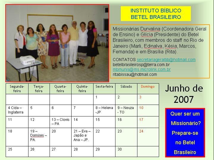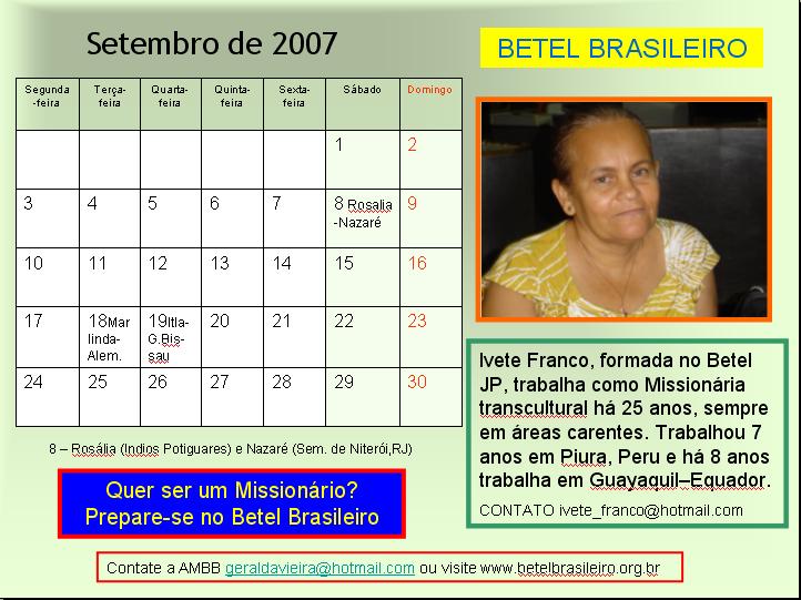 Eli Rodrigues ; ENSINO: Durvalina Barreto Bezerra ; AMBB (Agência Misssionária):