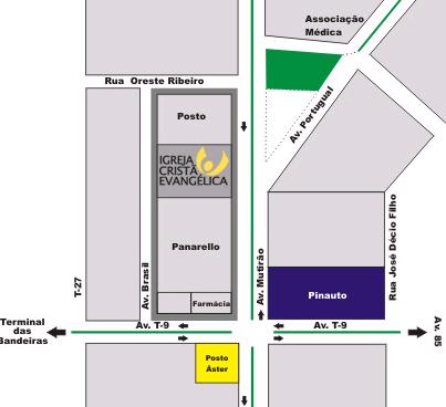 Endereço: Igreja Cristã Evangélicado Setor Oeste (Mapa em anexo) Avenida Mutirão, nº 2558, LT 21/22 Setor Bueno, Goiânia-GO CEP: 74215-240 Fone: 3285-5480 Obs: Entrada pela Rua Brasil (fundos) atenciosamente,