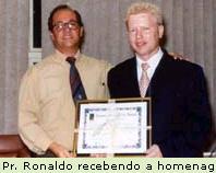 e glorificado!” exulta o pastor. Pr. Ronaldo recebendo a homenagem