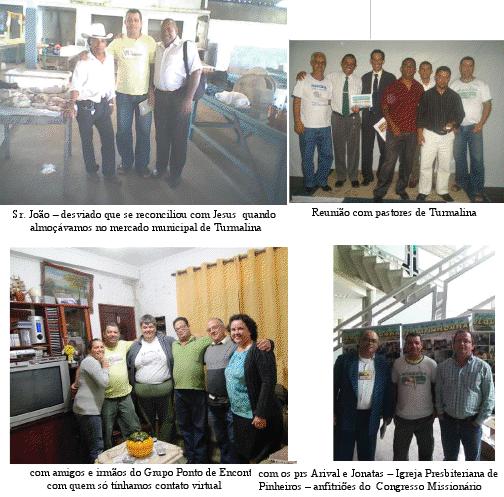 Homem e Mulher - Jovem e Adolescente“Ide por todo o mundo e pregai o Evangelho a toda criatura” Deus está chamando Você!! Pastor – Profeta – Missionário – Evangelista- Mestre “Assim como o Pai me enviou eu também vos envio” Deus está chamando Você!! Médico – Dentista – Nutricionista – Psicólogo Terapeuta - Assistente Social – Advogado Professor – Manicure – Cabeleireiro “Ser-me-eis minhas testemunhas... até os confins da terra” “O Espírito do Senhor está sobre mim, pelo que me ungiu para pregar as boas novas” Isaías 61:1a Saudações no precioso nome de Jesus, Estamos no vale do Jequitinhonha, desde 5ª. feira, dia 29 de julho e ficaremos aqui até o próximo domingo, dia 08 de agosto. Viemos em 01 van com mais 10 irmãos do Rio e São Paulo, 01 carro com 03 irmãos de Itajaí - SC e na 5ª. feira, chega 01 ônibus com mais 42 irmãos do Rio de Janeiro. Já chegou também 01 caminhão com os donativos para o povo. Cestas básicas, roupas e calçados, brinquedos e eletrodomésticos (tv,geladeira e fogão), além de bíblias e livretos diversos. Visitamos as 02 comunidades quilombolas, (Macuco e Morro Branco), onde já há um bom grupo de novos convertidos sendo discipulados. Muitos irmãos viajam cerca de 10 km no lombo de burro para participar dos cultos. Outros caminham mais de 05 km e outros vem de moto de distancias maiores, mas apesar de toda dificuldade e pobreza do local é impressionante a alegria e entusiasmo de cada um deles. Em Macuco, já iniciamos a construção do templo local, faltando apenas o acabamento interno e externo, mas em Morro Branco, o povo ainda reune-se embaixo de 01 amendoeira. Nesta viagem iríamos trazer 60 sacos de cimento para o inicio da obra , mas a irmã que se comprometeu em doá-los perdeu seu emprego e ainda caiu extremamente enferma não podendo concretizar a doação. Estamos com 02 famílias de obreiros dando assistência a essas comunidades que ficam a cerca de 01 hora do centro da cidade. Um deles, o pr. Ademir, já estabeleceu uma igreja na cidade vizinha - Turmalina - contando com cerca de 50 membros. Nos comprometemos de dar apoio e levantar o suporte financeiro para que eles possam continuar a obra. Estamos também dando apoio e cobertura espiritual a 02 casas de apoio as crianças ( Casa Lar e Creche Ebenézer). Nessas casas a maioria das crianças são orfãs ou deixadas desde seu nascimento por seus pais que, na maioria alcóolatras e desempregados, não tem recursos para sustentar a prole pois o desemprego aqui é enorme. (A maioria dos homens passam cerca de 09 meses fora de casa trabalhando em regime de semi escravidão nas lavouras de cana e café em São Paulo e quase sempre voltam sem recursos suficientes para o sustento familiar). Trouxemos para a casa lar uma máquina para fazer fraldas e também roupas e calçados para as crianças maiores. Muitas mães tem nos procurado pedindo ajuda material ( comida, roupa, calçados e até nossos colchonetes). Não dá para expressar em palavras a dor de nosso coração em ver tanto sofrimento e carência, não só material, mas principalmente espiritual. Durante todos esses dias Temos feito visitas de casa em casa mas também estaremos evangelizando nos hospitais e presídios da cidade, na sexta feira( dia 06) exibiremos um filme na praça central da cidade. No sábado (dia 07), teremos de manhã uma intensa programação com as crianças e palestras para os pais, quando estaremos também distribuindo as cestas básicas, roupas e calçados que trouxemos. A noite teremos um grande culto na praça central e domingo encerraremos com um culto na sede do projeto. O que temos feito ainda é muito pouco, mas queremos e podemos fazer muito mais. Para isso precisamos que você nos ajude, orando e contribuindo, seja financeiramente ou com donativos diversos para trazermos nas próximas viagens. Você pode causar um significativo e duradouro impacto nestas vidas, participando conosco deste projeto. Deus te abençoe muitíssimo. Wanderley Pinheiro de Almeida 05/08/2010 = = = Saudações