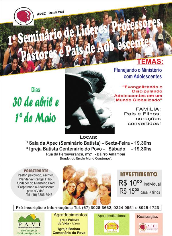 Contato: Pr Elias Fernando. Tel (67) 8413-2687 e-mail: pastoreliasfernando@estadao.com.br