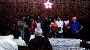 ano de vida e trabalho.Ao final, o Pr. Wagner, Chinko Júnior e Dival, foram ao Hospital da Beneficência Portuguesa, distribuir novos testamentos, não sem antes jantarem na casa do pastor. Comida estrangeira. ARROZ DONTÊ, francês, e SOROBRÔ, japonês. Em português: sobras de ontem...