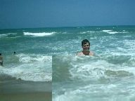 viajar de avião. Estava tomando banho de mar, quando um avião