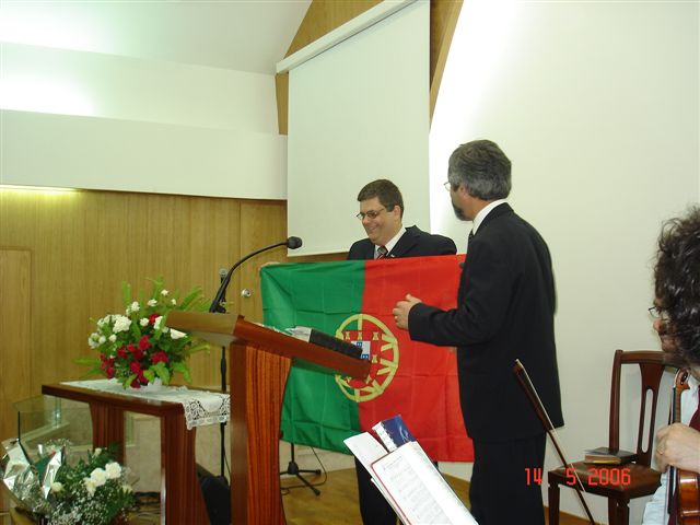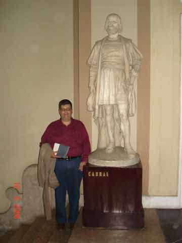 Naquela manhã de junho deste ano (2006), enquanto me apresentava como descendente legítimo de portugueses (descendente de "cristãos novos" por parte de pai (judeus refugiados que viviam em Portugal), num ápice de recordações, fui levado, pelas asas da imaginação, aos primeiros meses escolares, aos bancos do Colégio Estadual Clóvis Bevilácqua, em Vila Anglo Brasileira, região do Sumaré, capital paulista. Lá se vão tantos anos, desde aquelas manhãs frias paulistanas, em 1973. E uma canção voltou à minha mente, canção que contava, de forma clara, didática e linda, o descobrimento do Brasil. Incrível! Canção que esqueci por quase 35 anos! Um pequeno trecho voltou à minha mente, e cantei para os portugueses, que puderam ver em mim sinceridade na felicidade por estar nas terras lusitanas. Ah, essa INTERNET! Quando bem usada, pode nos trazer surpresas tão belas! Descobri a letra daquela antiga canção. Ei-la: O ALMIRANTE PORTUGUÊS O almirante português Pedro Alvares Cabral no ano de mil e quinhentos saiu de Portugal com treze barcos veleiros do rio Tejo prò (para o) mar para nas