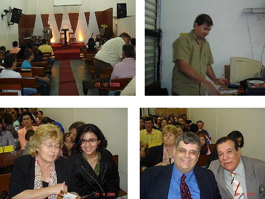 TERÇA-FEIRA, 26 DE DEZEMBRO DE 2006 DEUS NOS AGRACIOU COM UM MICROCOMPUTADOR POTENTE PARA A MESA DE SOM, QUE AJUDARÁ NAS GRAVAÇÕES DAS PREGAÇÕES (ÁUDIO E VÍDEO), BEM COMO NA SONOPLASTIA DO CULTO Nosso irmão Mathias Chinko Júnior, expert em som, áudio e informática, foi até a "santa ruinha", a Rua Santa Ifigênia, capital brasileira da eletrônica, e adquiriu um microcomputador montado na hora, com as características indispensáveis para "turbiná-lo para o trabalho". Na quarta-feira ele já estava instalado, agora em fase de teste, porque os programas que rodavam no micro velho, não rodam no novo (W XP). E O MICRO ANTIGO? Estamos orando e pedindo a Deus outros micros usados, que dêem acesso à internet, para criarmos a SALA DE INCLUSÃO VIRTUAL COMUNITÁRIA, um centro de aprendizado de informática e internet elementar, com o intuito de ajudar as pessoas da comunidade, além de aproveitar a ocasião e repartir a mensagem do Evangelho com elas. QUARTA-FEIRA, DIA 27 DE DEZEMBRO 20 HORAS - CULTO INTERSEMANAL Havia até um número razoável de irmãos. O louvor cantado foi do tipo "primeira estrofe do meu hino preferido". Nós usamos CANTOR CRISTÃO nos cultos públicos, além de cânticos novos e corinhos, quando os músicos estão presentes. O Pr. Wagner não é músico, mas com a seqüência em RÉ e SOL consegue acompanhar ao violão os hinos e não deixar um vácuo instrumental. A mensagem versou sobre LUZ OU TREVAS EM 2007? Uma bênção, dentre tantas: chamamos as irmãs à frente, para comissioná-las na preparação da CEIA DE ANO NOVO, que celebraremos no templo, à meia-noite do dia 31. A Bruna, filha da Regina, responsável pela Ceia, lamentou a situação financeira, dizendo que não havia recursos. Aquilo indignou o pastor, que afirmou que isso não poderia ficar assim. Mesmo aqueles que não fossem passar o ano novo com a igreja, que fossem responsáveis e investissem no trabalho de sua igreja, porque Deus espera de nós nada menos que responsabilidade e fidelidade. Cantamos um hino e ofertamos. Resultado: Deus supriu. ALELUIA!!! --------------------------------------------------------------------------------
