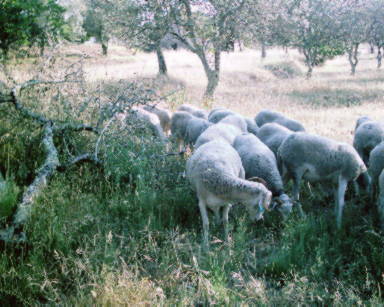 foto, ao fundo, as oliveiras; à frente, as ovelhas.