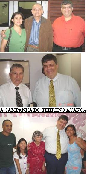 solicitado. Um jovem talentoso e empresário, filho de uma ex-ovelha de um outro ministério, procurou-me e disse: "pastor, estou procurando uma igreja onde congregar, estou fora, vou voltar; mas enquanto isso quero ofertar para o terreno". E as ofertas desse jovem fizeram muitas e muitas quotas! Bendito seja Deus! Alguns empresários amigos de meu irmão decidiram também ajudar e mais verbas foram aparecendo. Alguns anônimos, gente que eu nunca descobrirei quem são, também depositaram. E assim a campanha continuou. Aleluia!