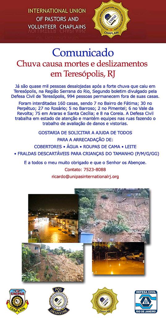 as tragédias aqui na região serrana do Rio de Janeiro. Mas estou