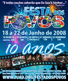 para convidar o nobre pastor bem como a amada igreja para participarem do nosso 5º Encontro de Jovens, que realizar-se á nos dias: 6,7,8 e 9 de Dezembro 2007 em Arvorezinha, ás 19:30 Hs e no domingo ás 10:00 Hs realizaremos o batismo, todos os cultos serão realizados em frente á igreja, ao meio dia será servido um churrasco beneficente (6 Reais), também teremos a presença do nosso pastor presidente Ubiratam B. Job, e os seguintes convidados, Preletores: Pastor Alexandre Cypriano– Criciúma - SC Evangelista Cláudio Adão – POA Conjuntos: Acordes de Jerusalem – Encantado Dinâmicos da Fé – POA Unção Divina – POA Cantores: Joel e Daniel – RS Irmãs Araújo - POA Raquel Machado – Novo Hamburgo Nilmar e Taisse – Putinga João Batista e Daniel – Criciúma - SC Para nós sera um grande prazer receber o nobre pastor e os irmãos para juntos desfrutar-mos de momentos de alegria e muita benção. Sendo o que tínhamos, queira receber nossos votos de estima e consideração em Cristo Jesus. Obs. . . Sugerimos o contato para confirmação Pelos números dos telefones acima citados SIDNEI CASTRO Depto da Juventude