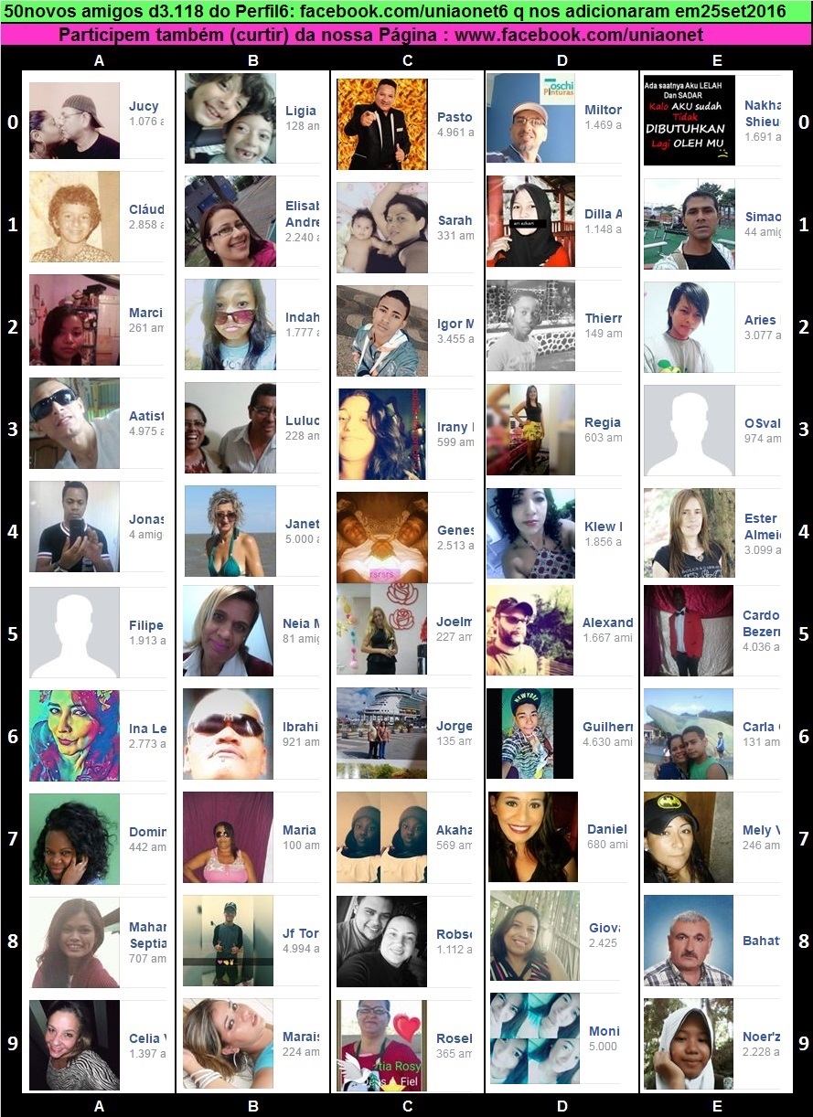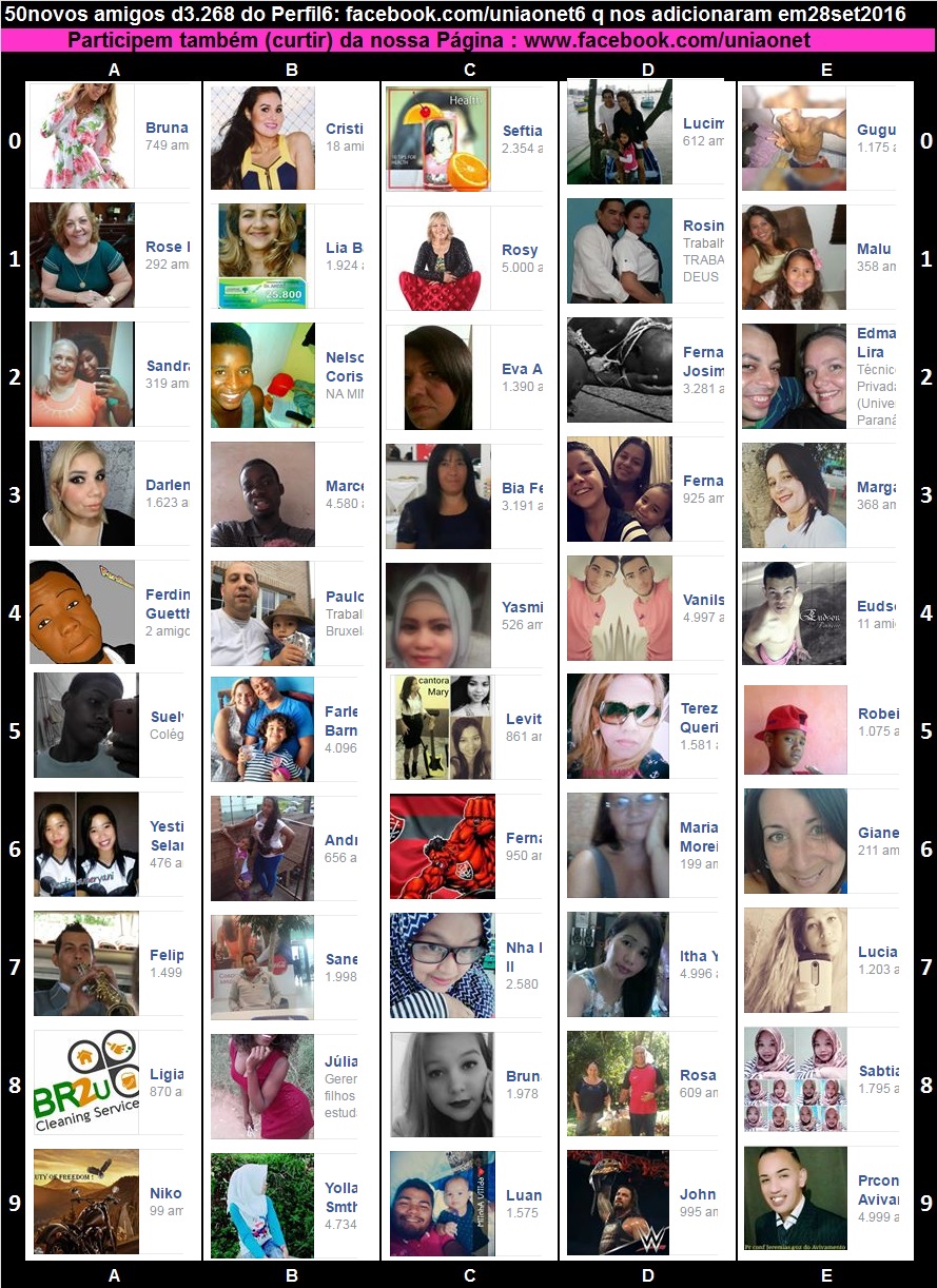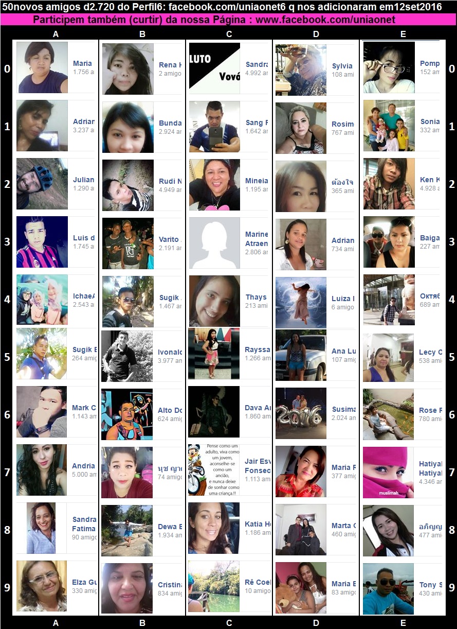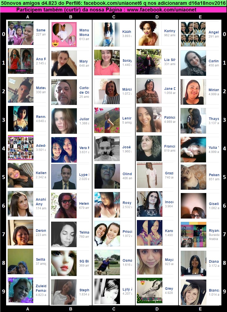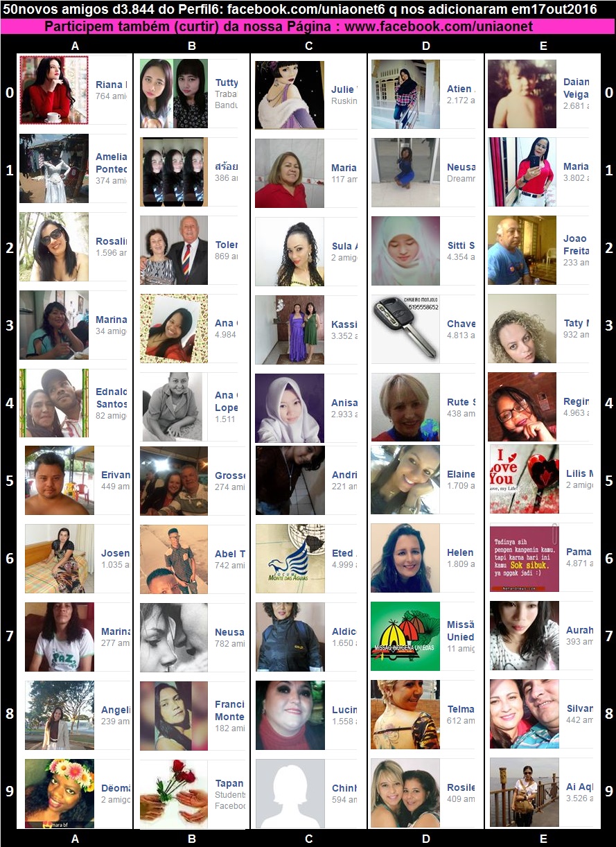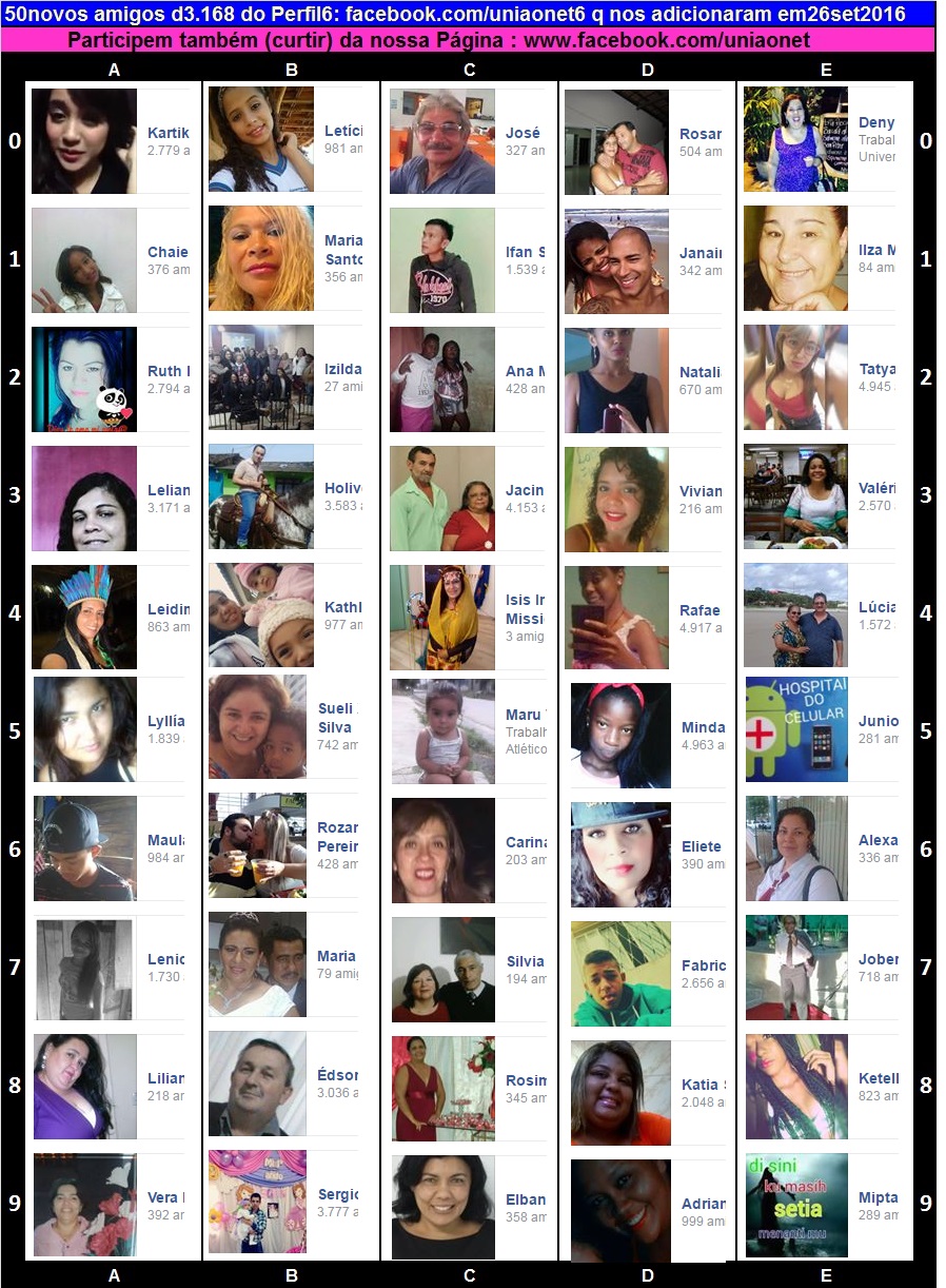 nos adicionaram em seus Perfis A0 Higina De Aguiar Teixeira , A1 Adriana