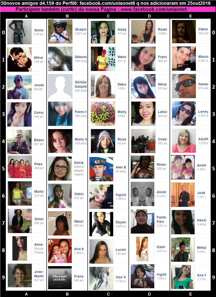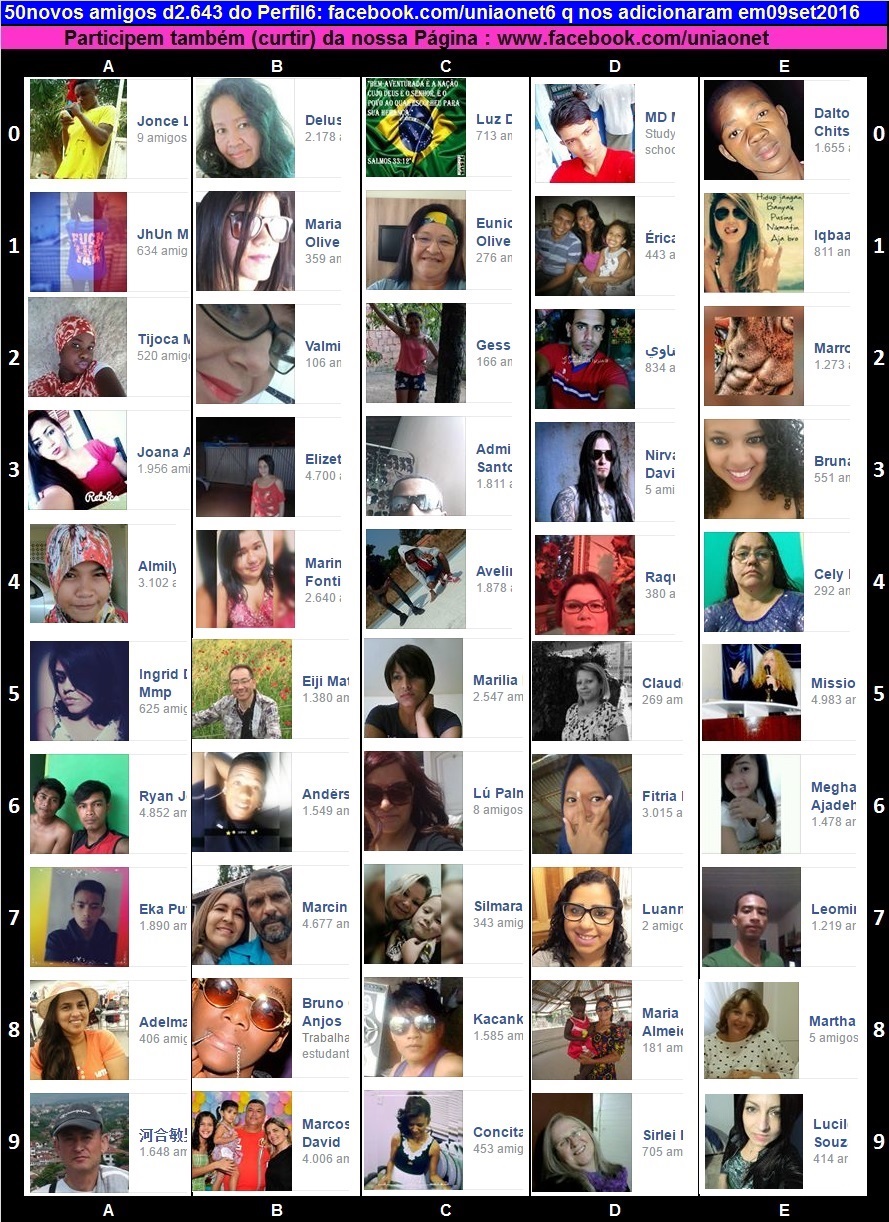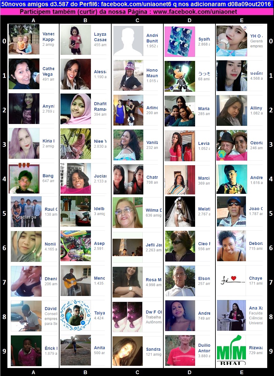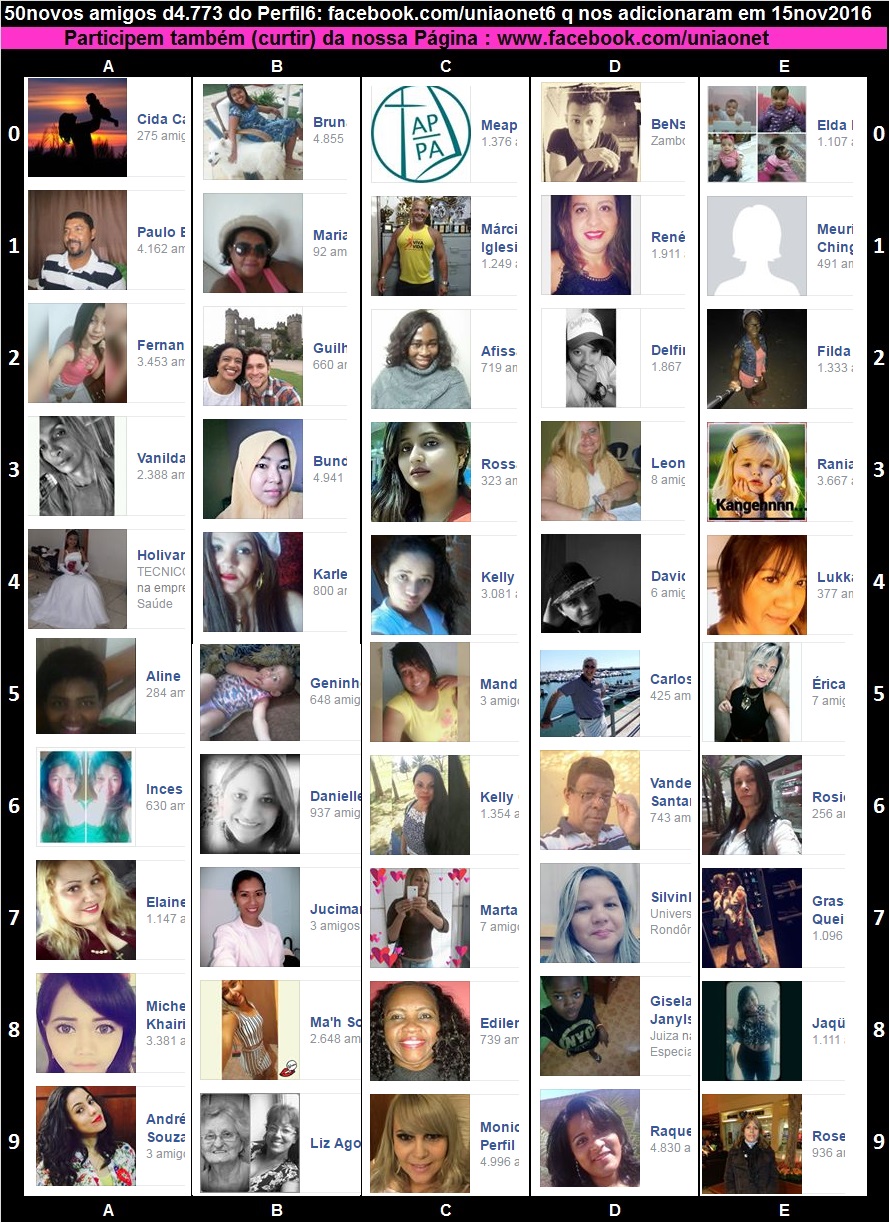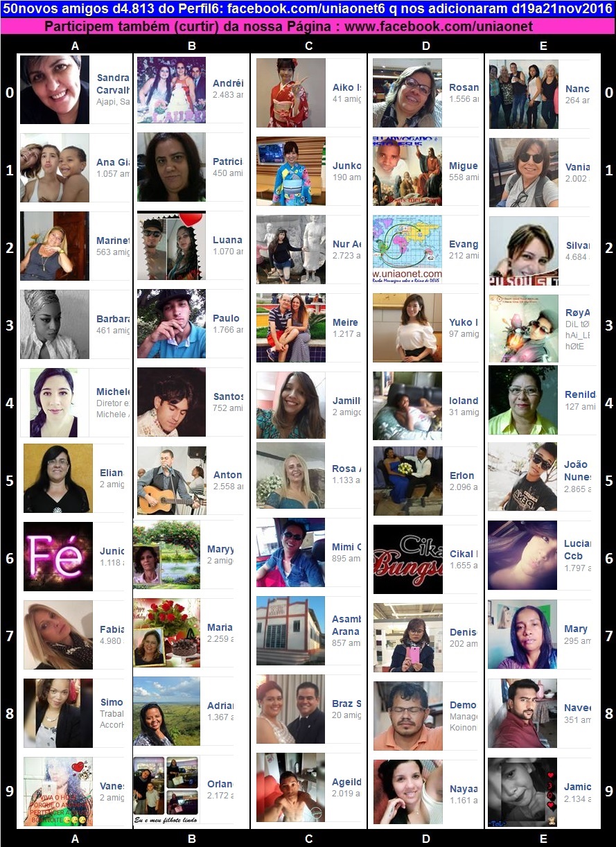 nos adicionaram em seus Perfis A0 Higina De Aguiar Teixeira , A1 Adriana