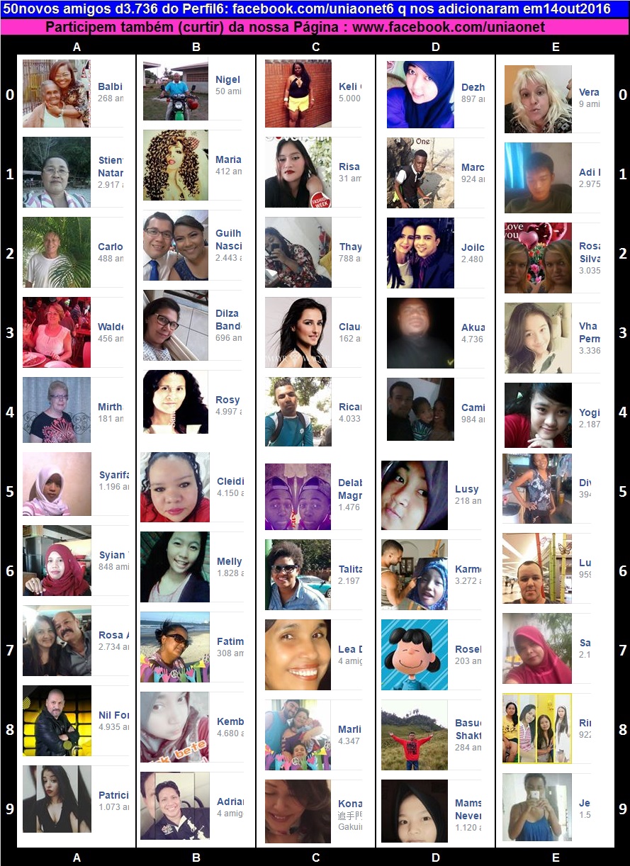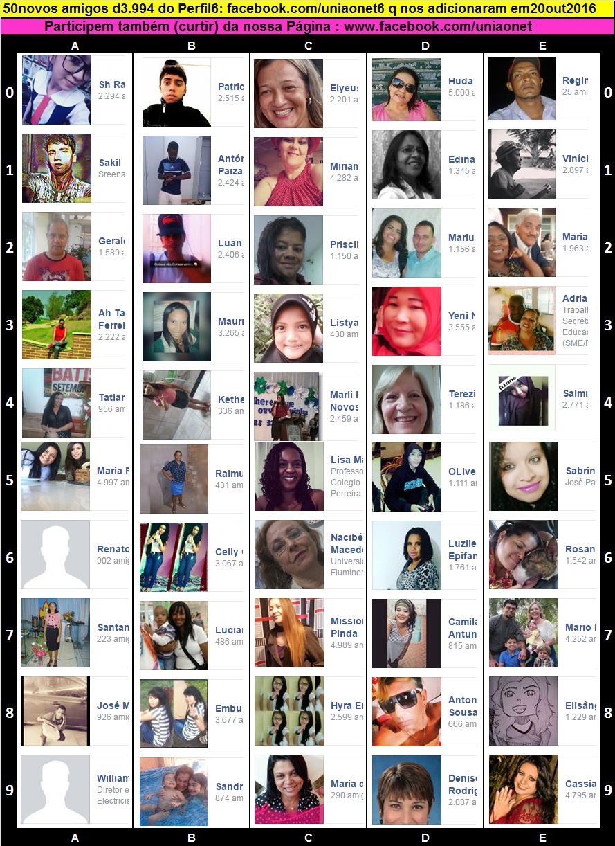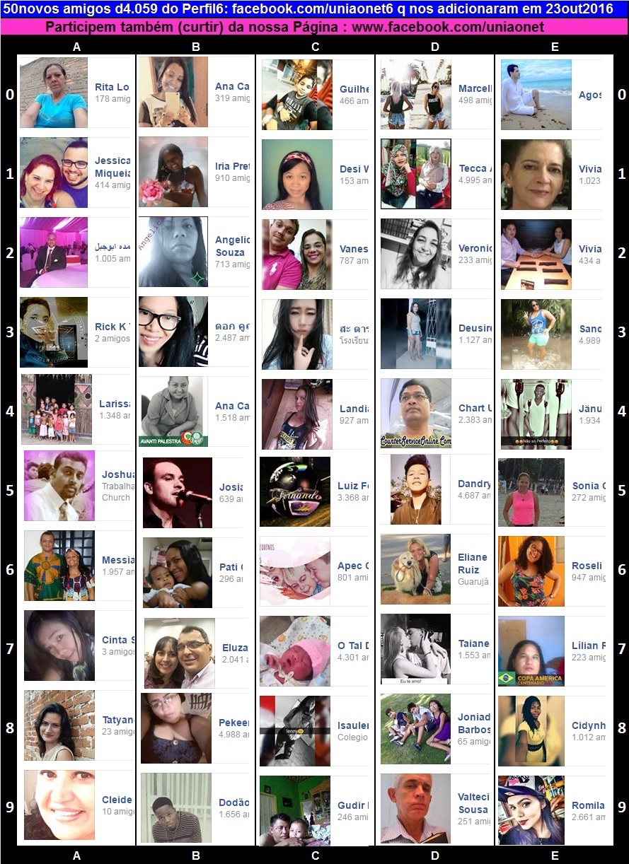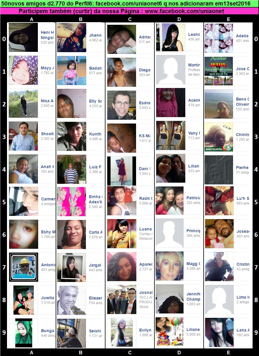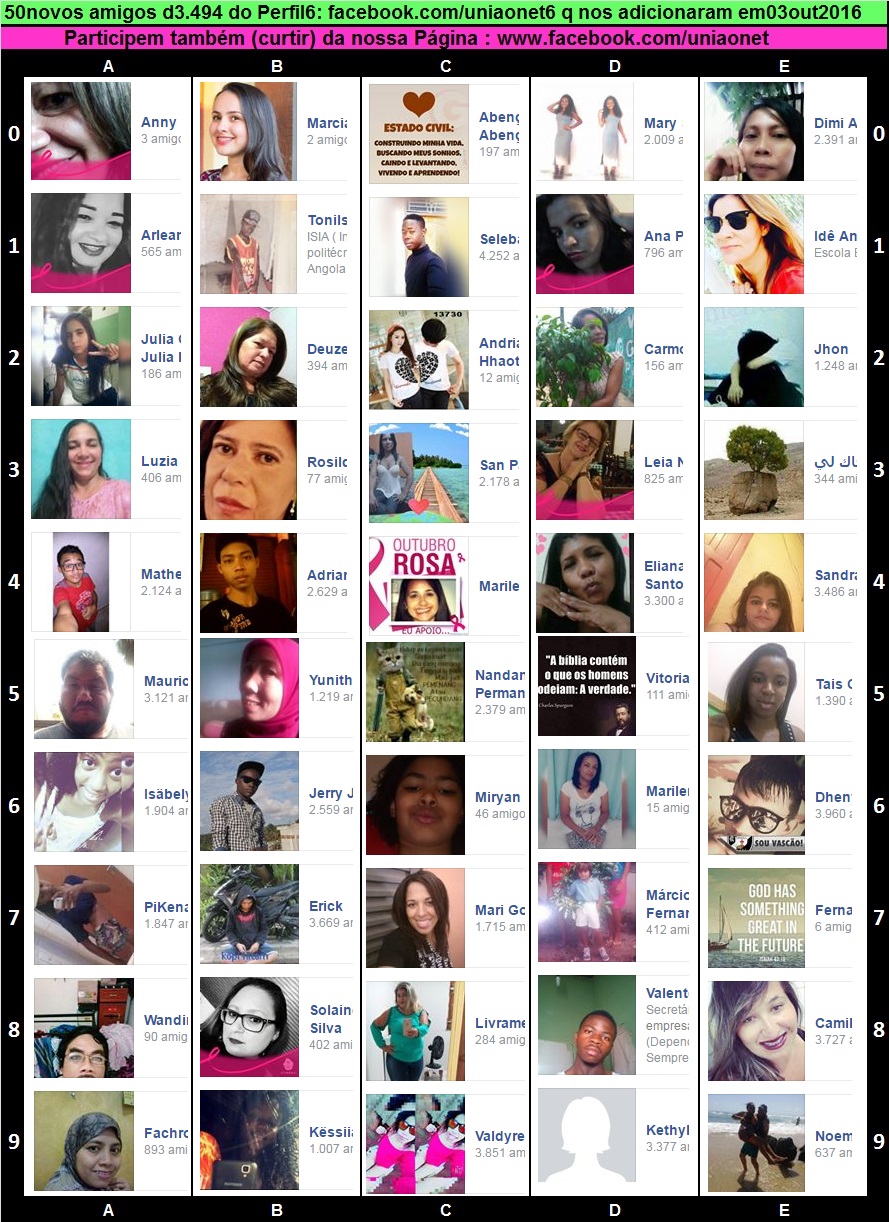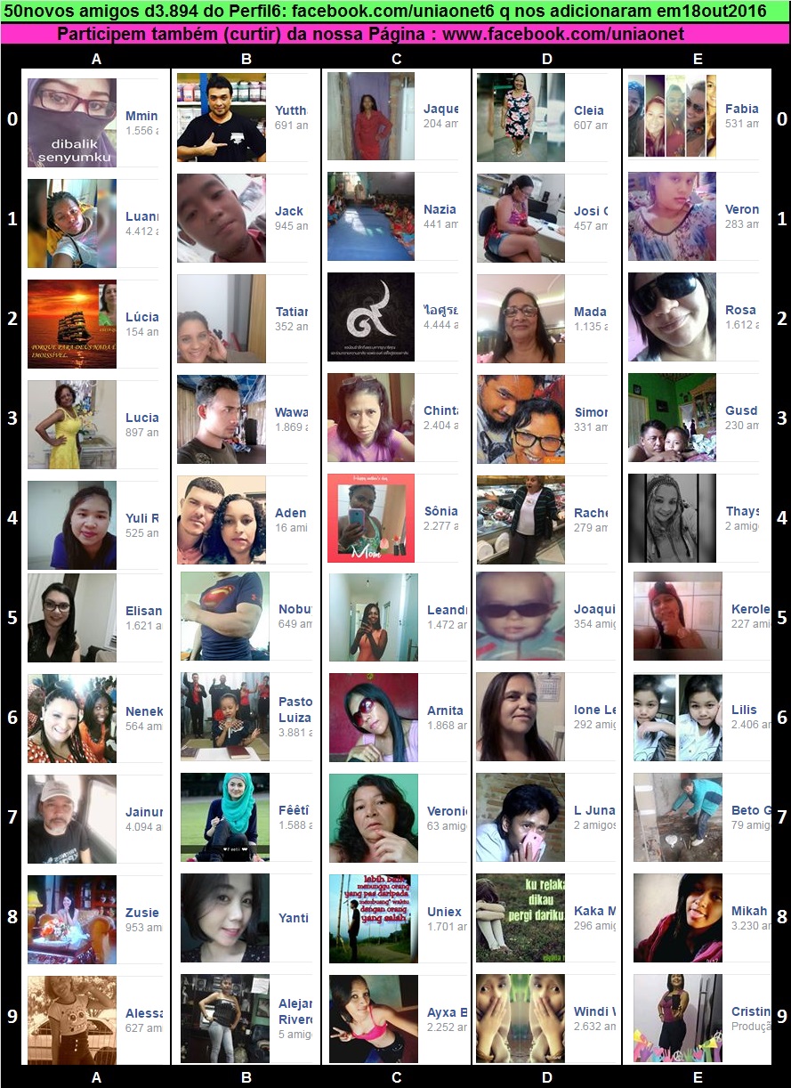 nos adicionaram em seus Perfis A0 Higina De Aguiar Teixeira , A1 Adriana