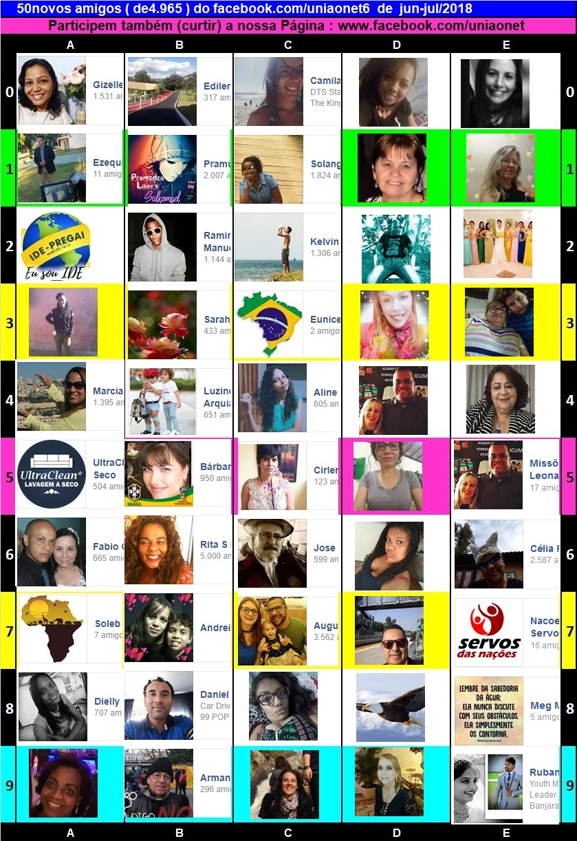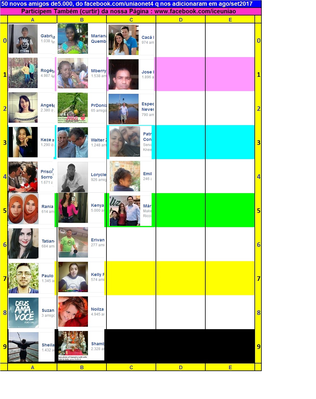 C8 Marcelo Ribeiro C9 Daiane Aparecida D0 Mak'e KenthBie D1 Ana Maria Alves de