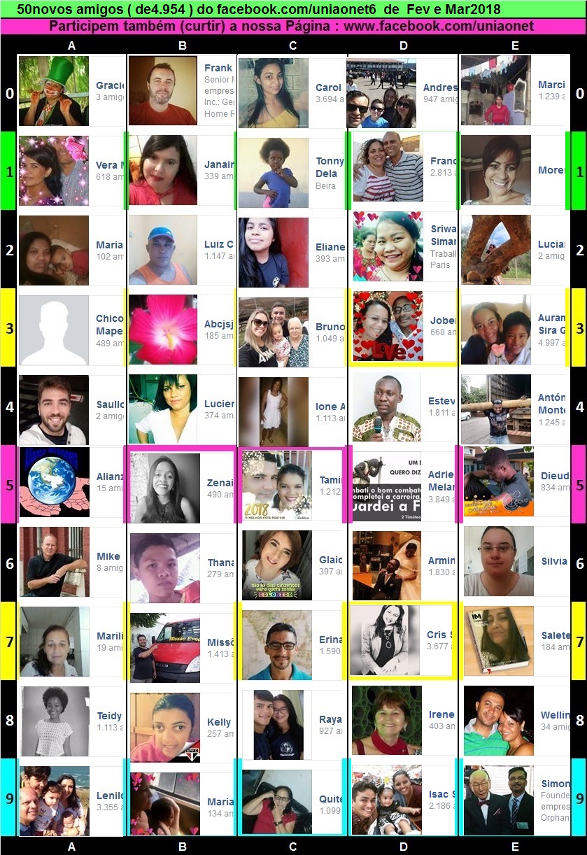 D5 Adriel De Messias Melanias D6 Armindo Tiago (21mar2018 ) D7 Cris Silva