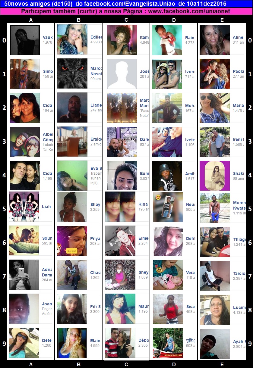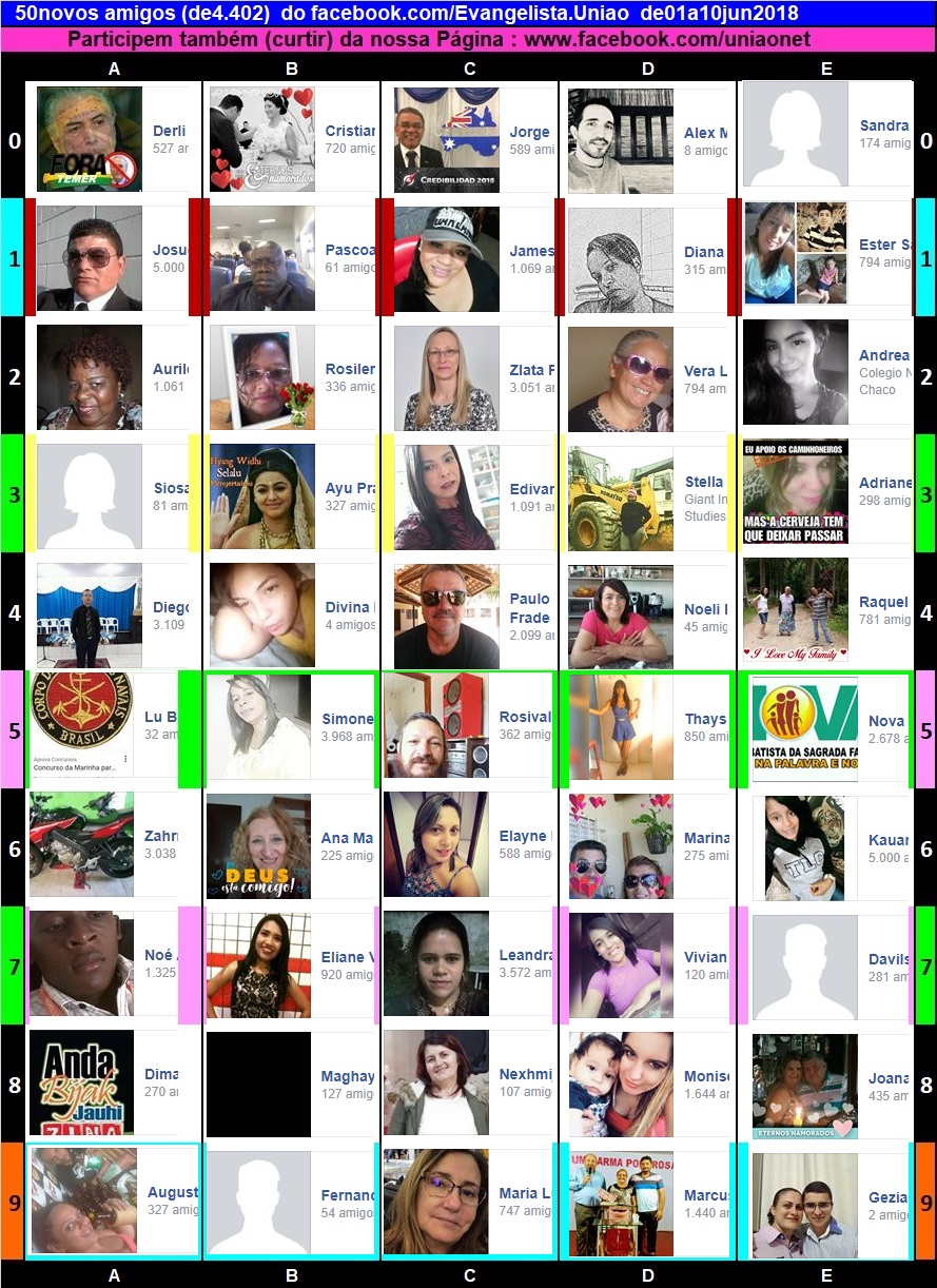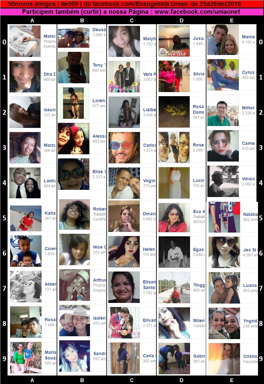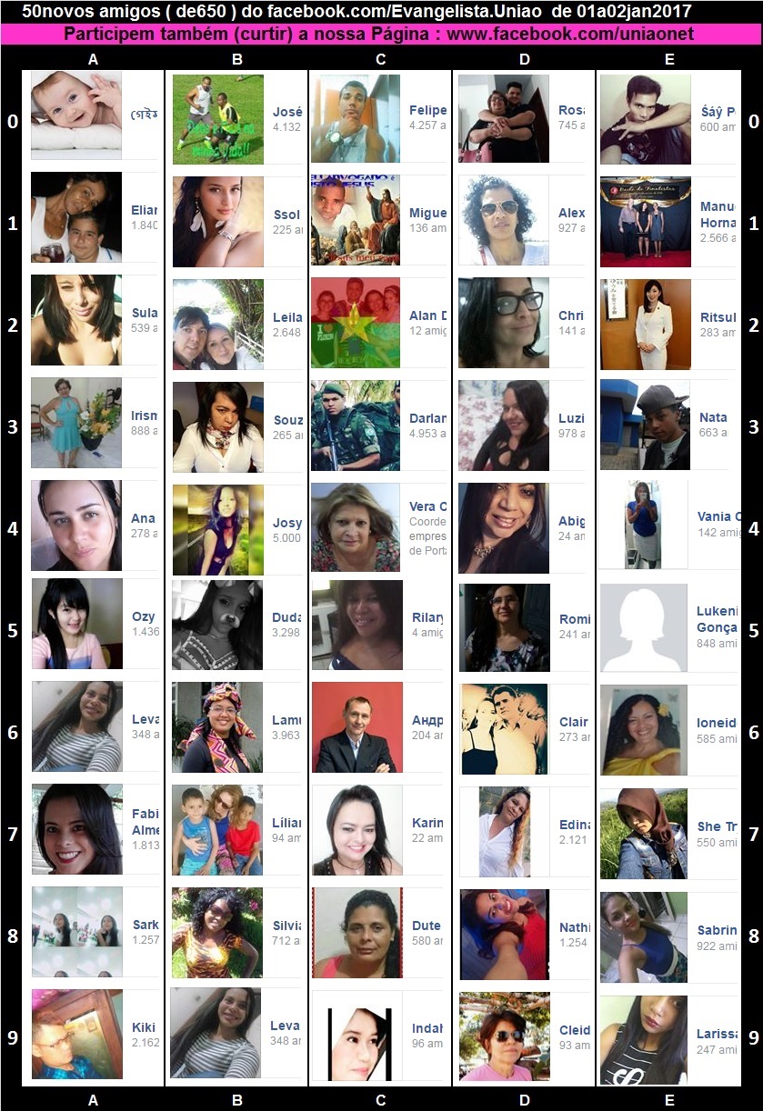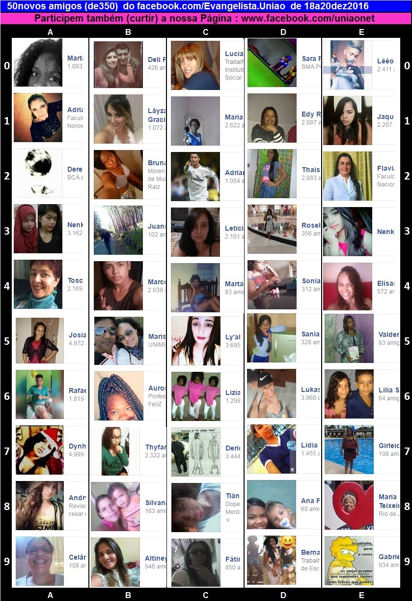 Novos amigos a partir de out2018 ver : www.uniaonet.com/cadamigoatual.htm