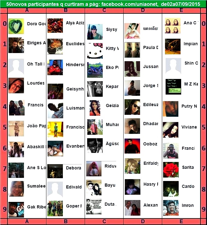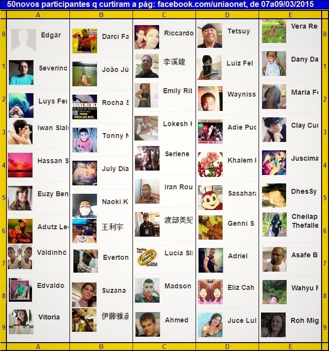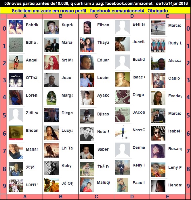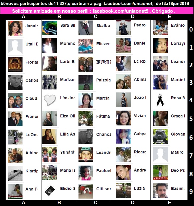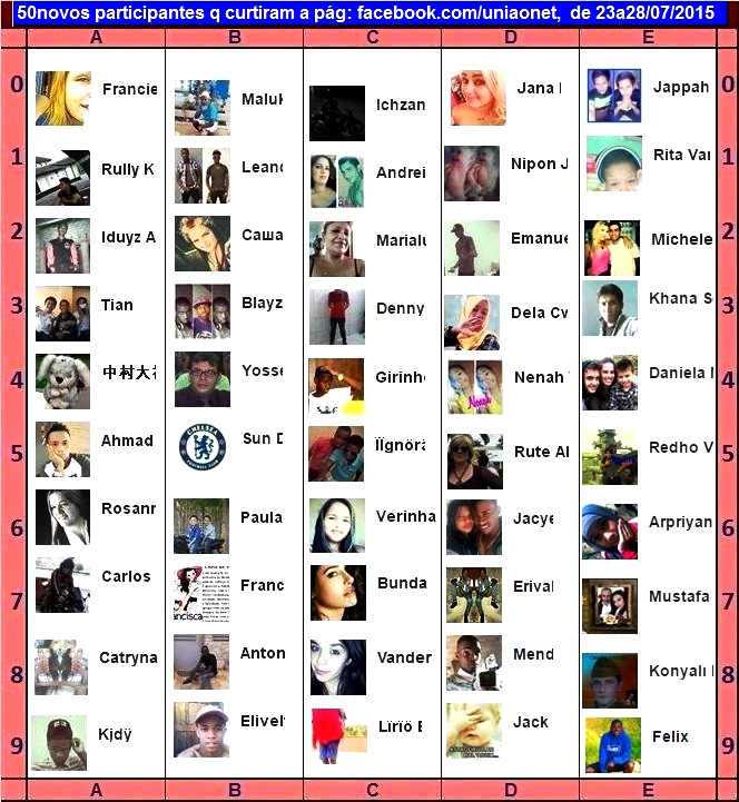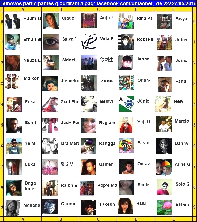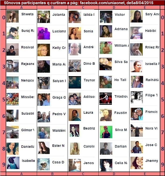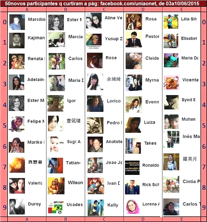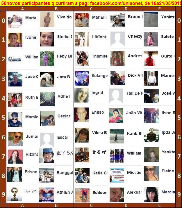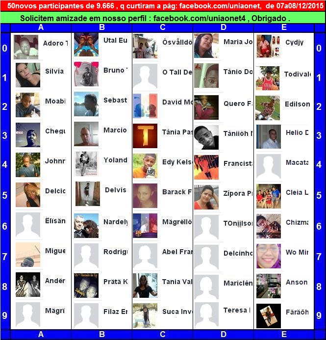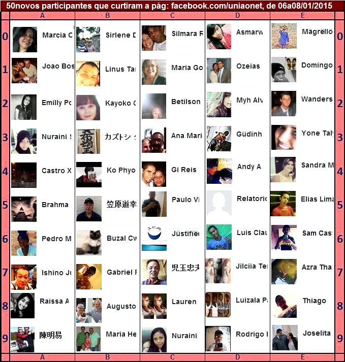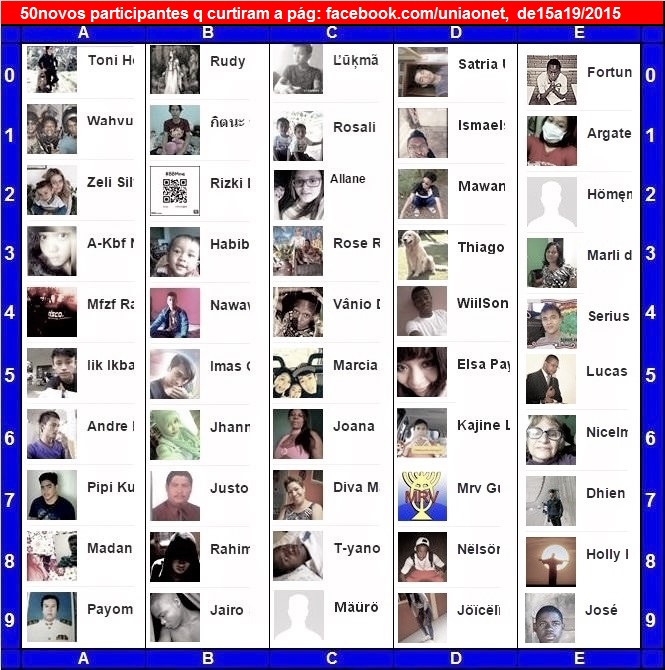 Vindas aos 50novos participantes , que de 06a08/01 /2015