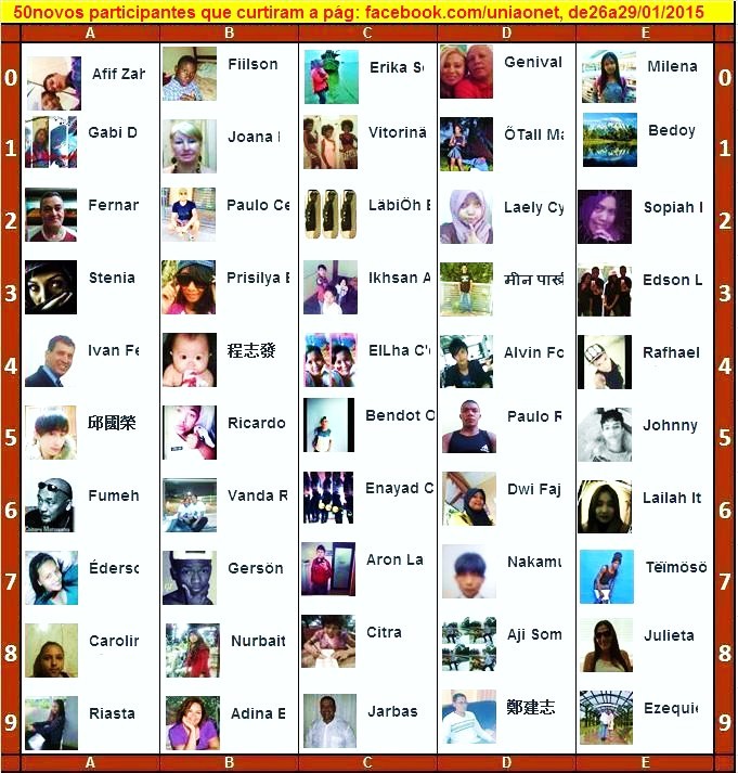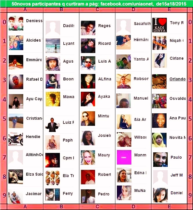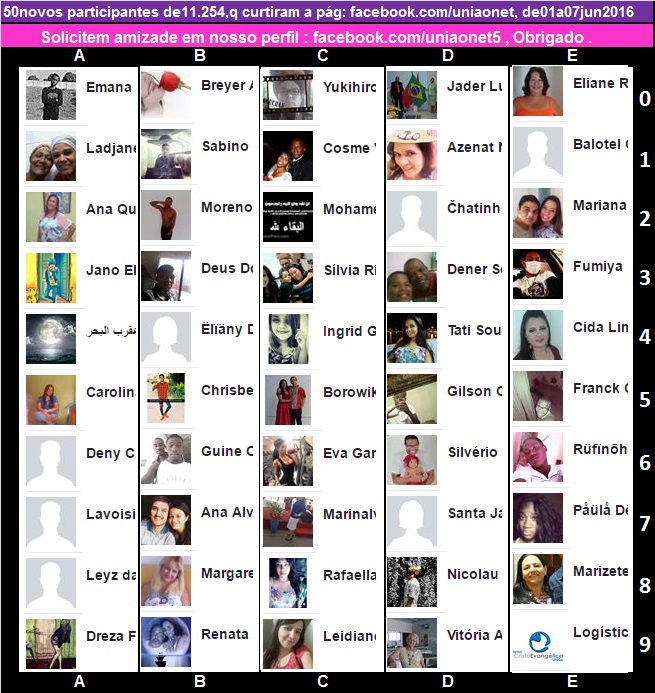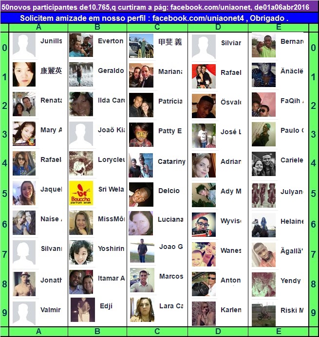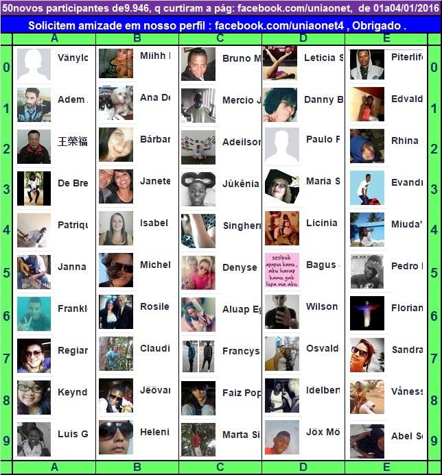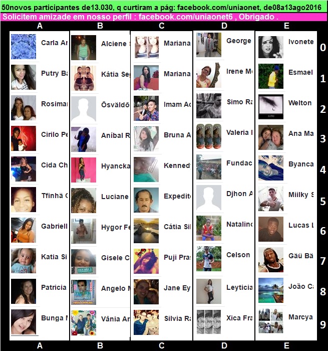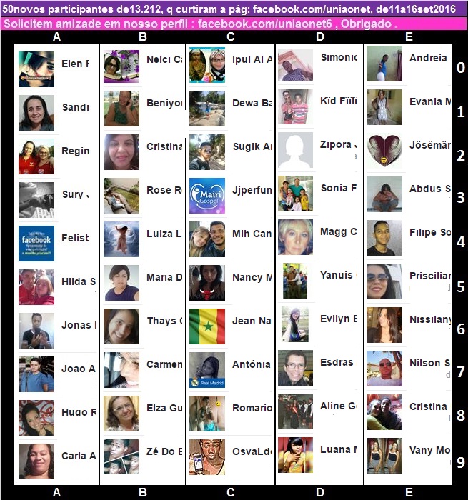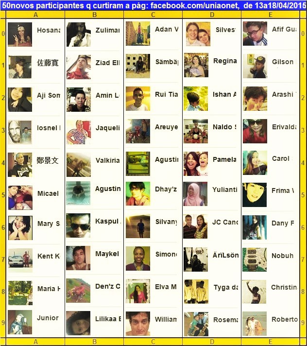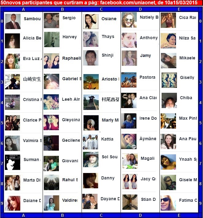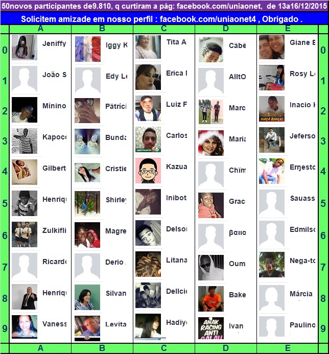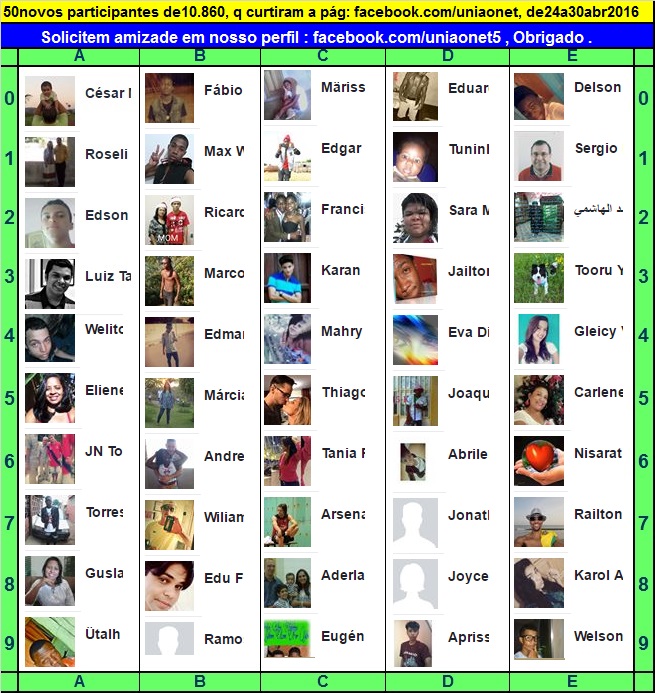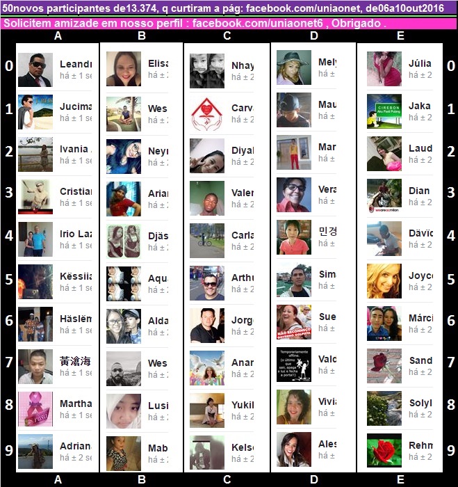 Vindas aos 50novos participantes , que de 06a08/01 /2015