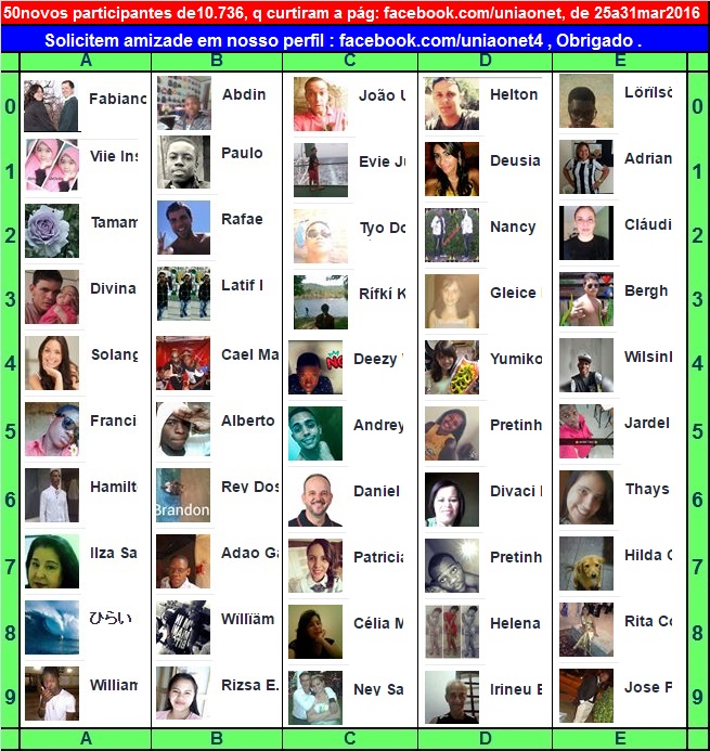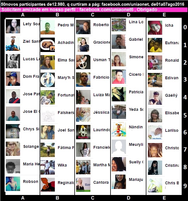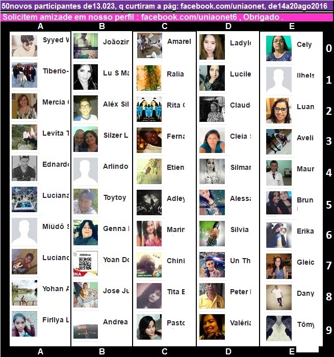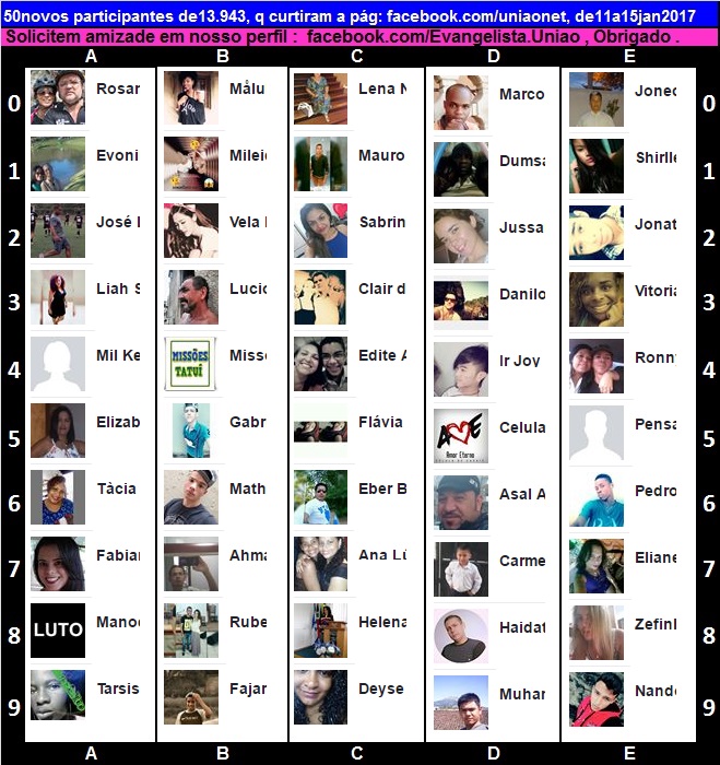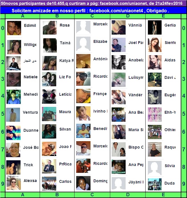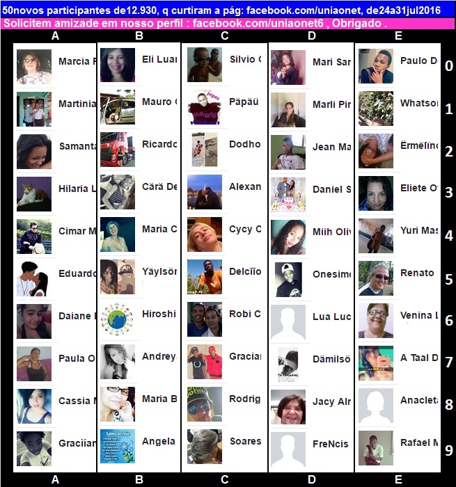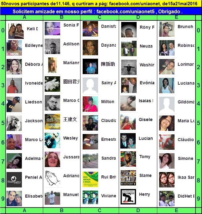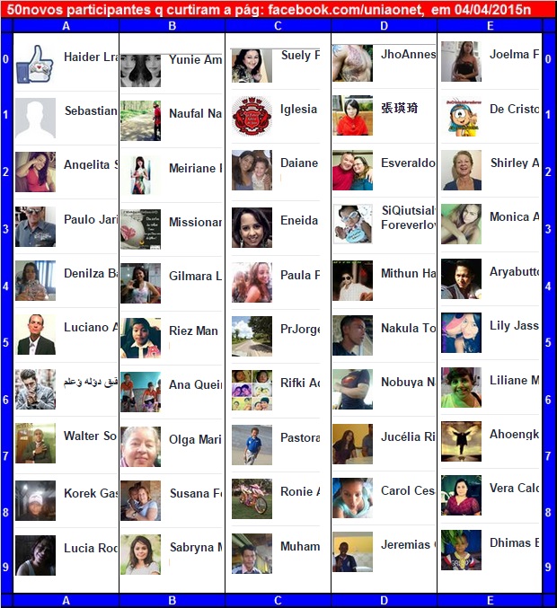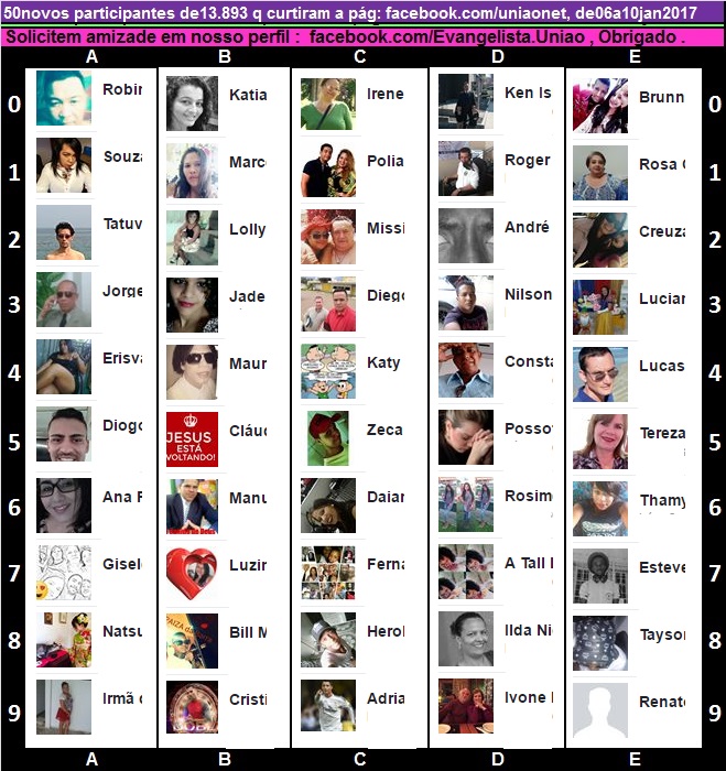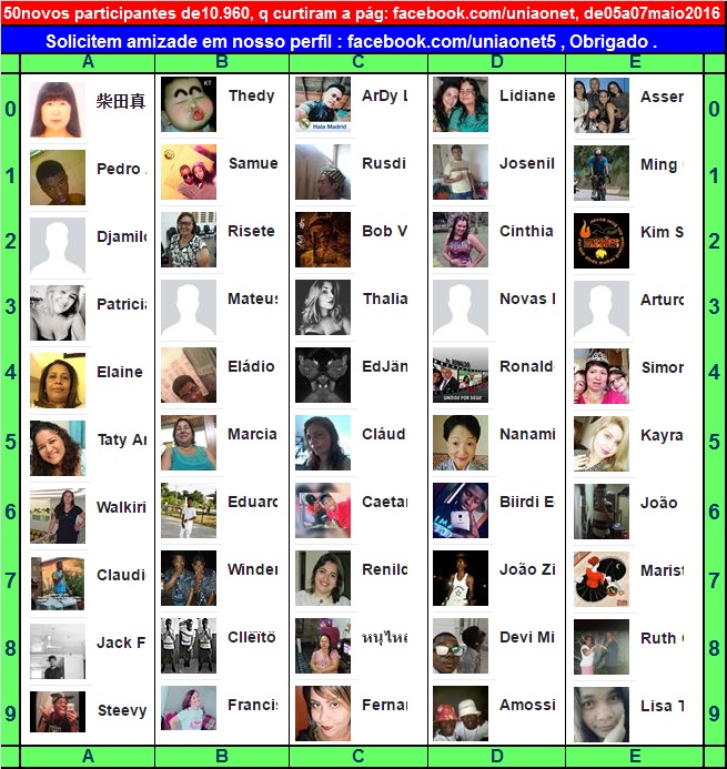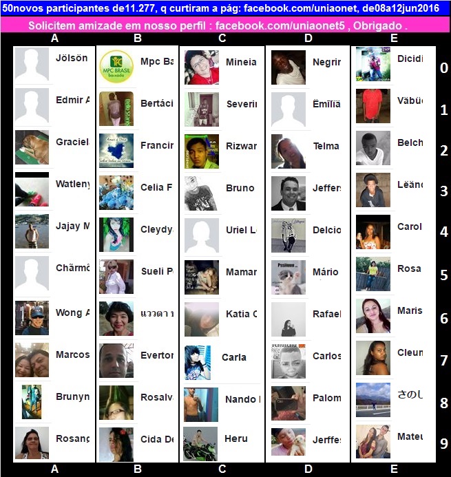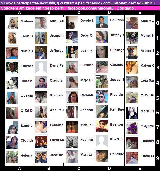 Vindas aos 50novos participantes , que de 06a08/01 /2015