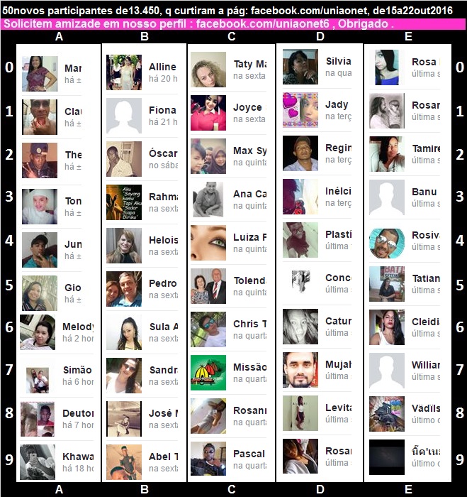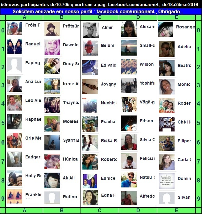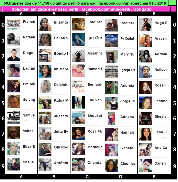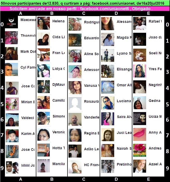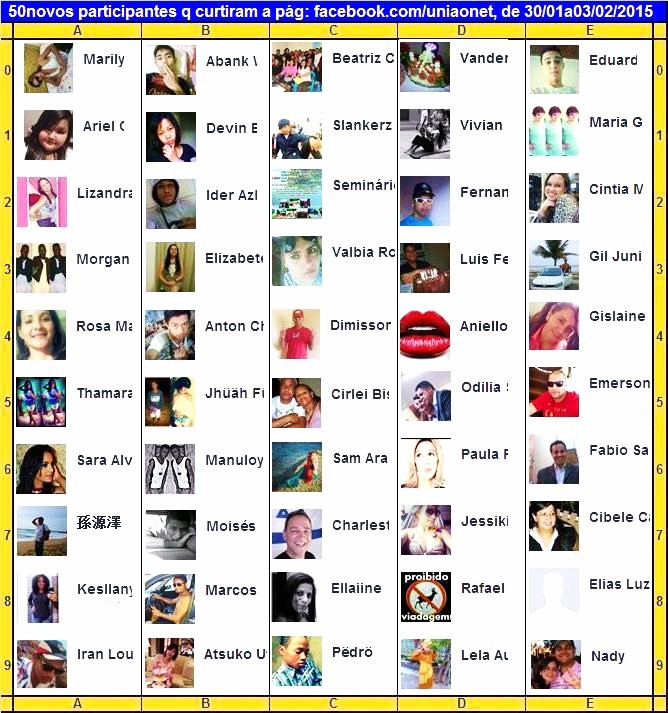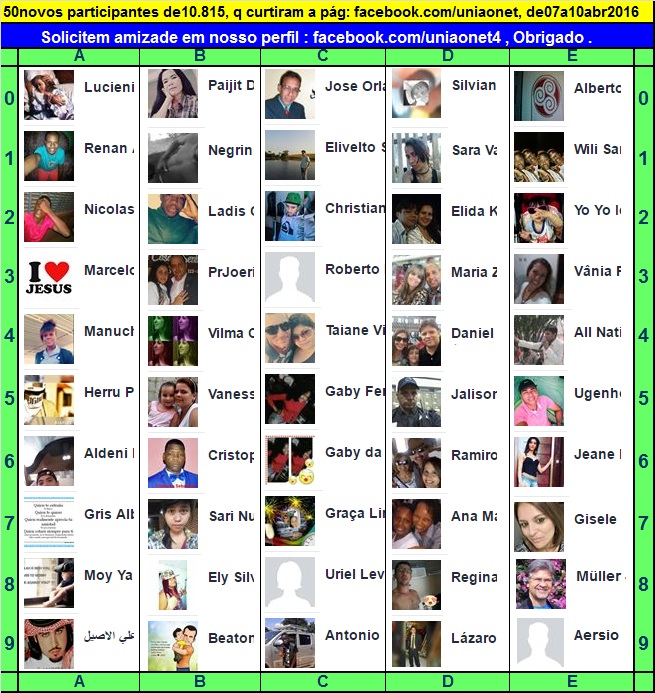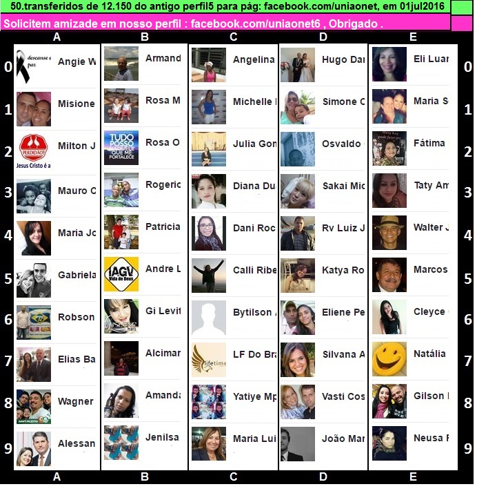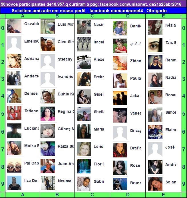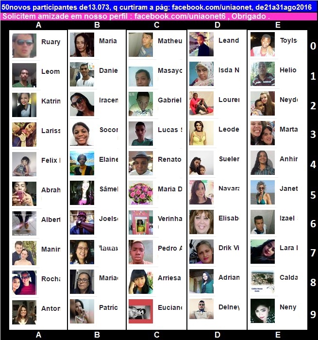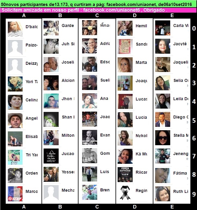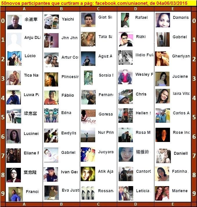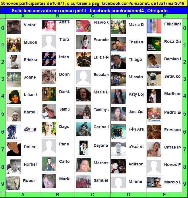 Vindas aos 50novos participantes , que de 06a08/01 /2015