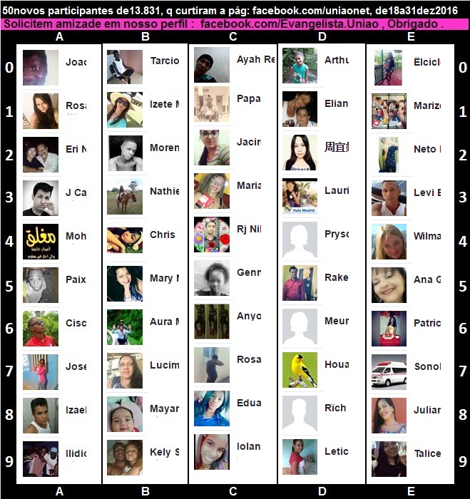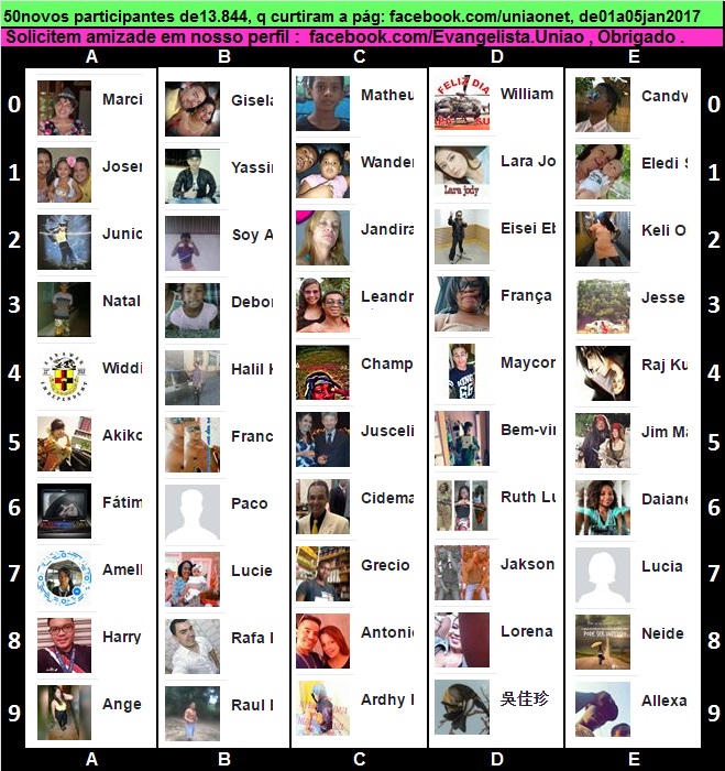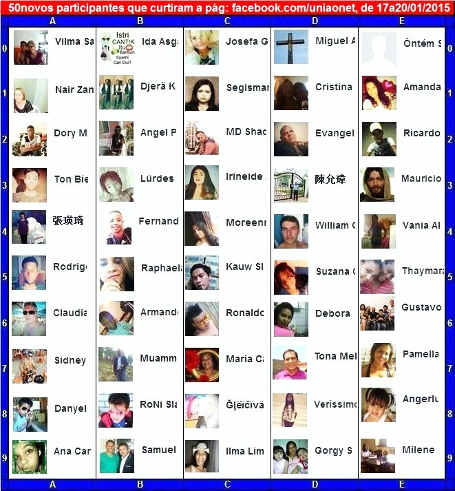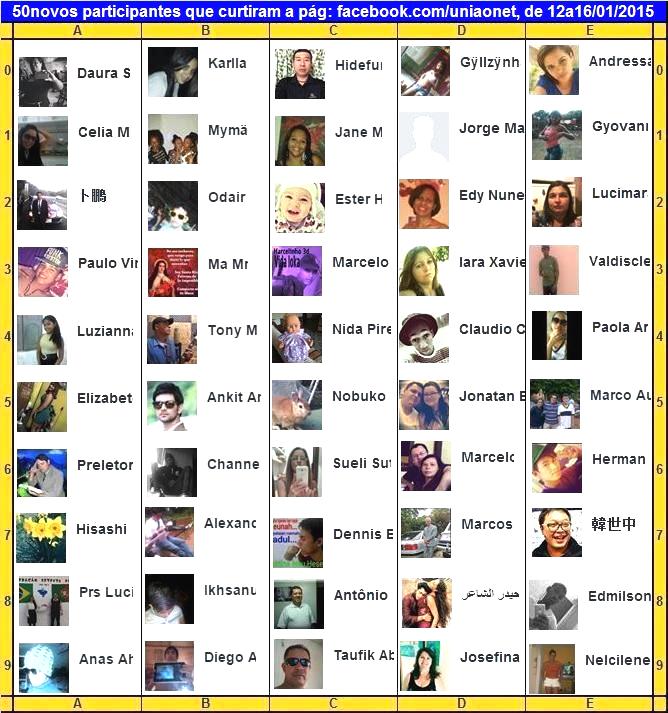 Vindas aos 50novos participantes , que de 01a03 /01/2015