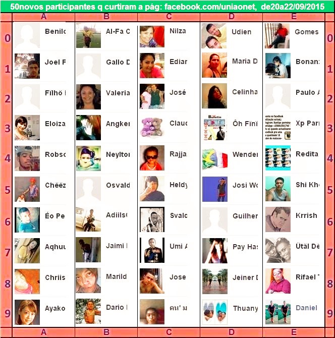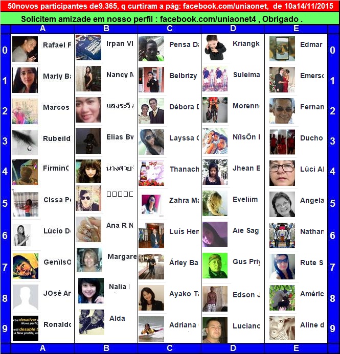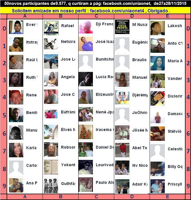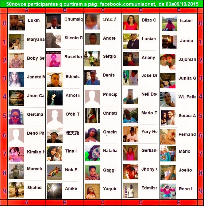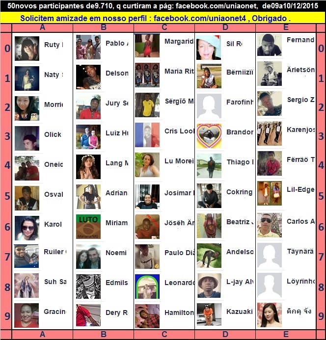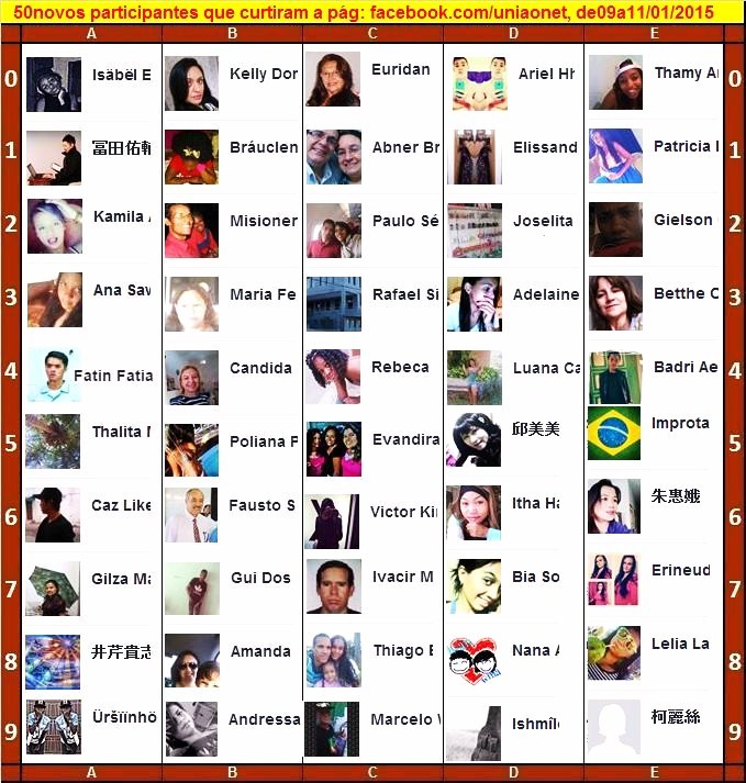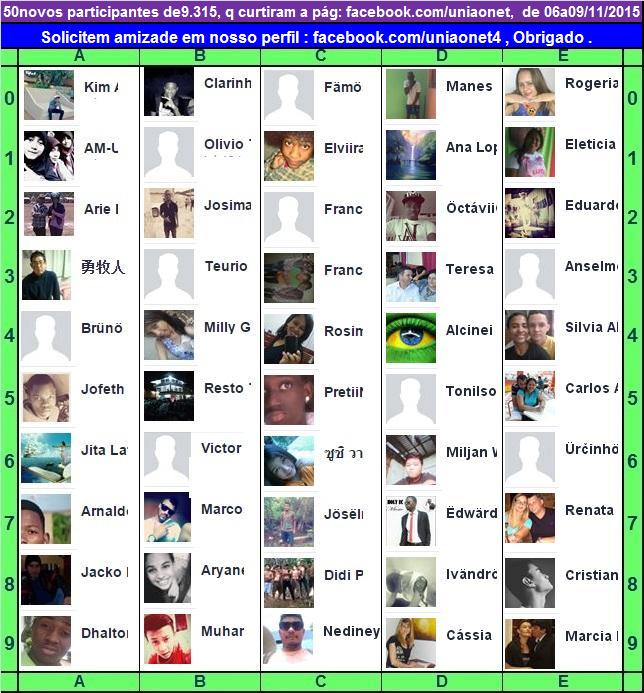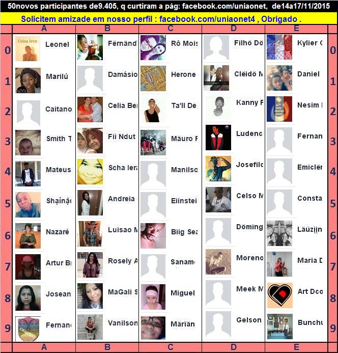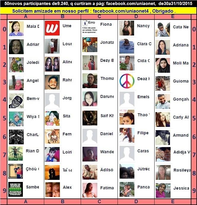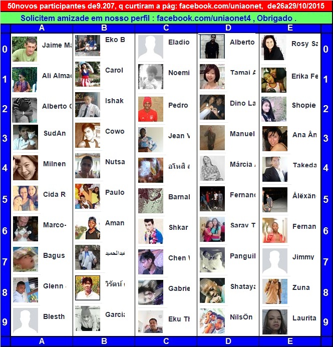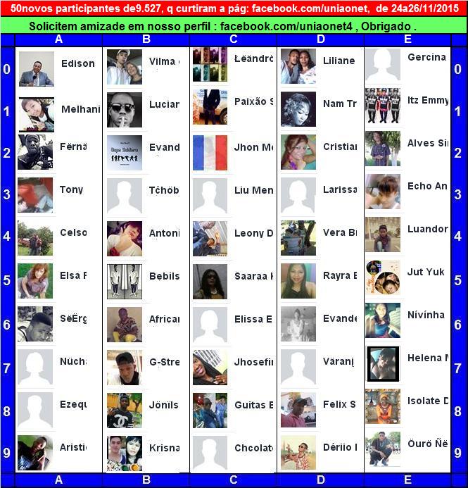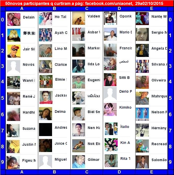 Vindas aos 50novos participantes , que de 09a11/01 /2015