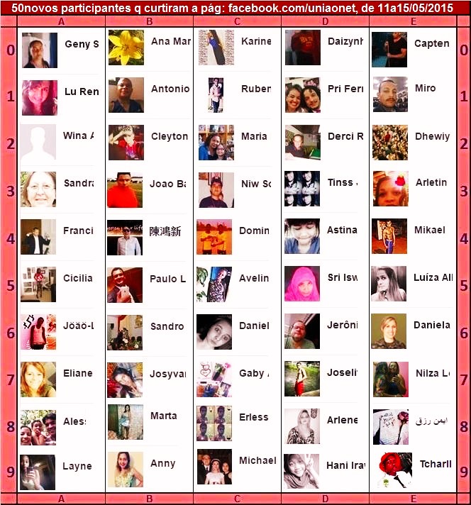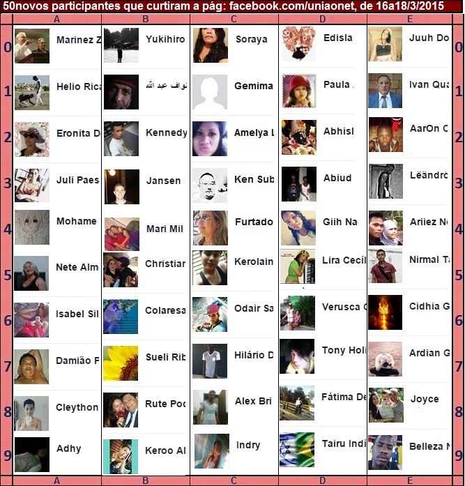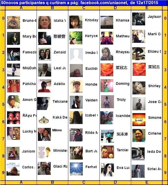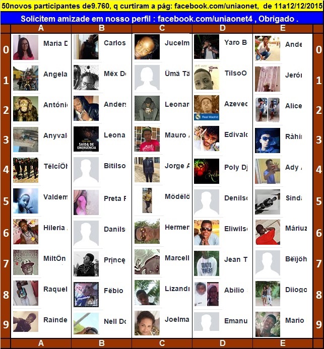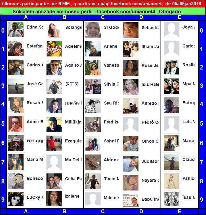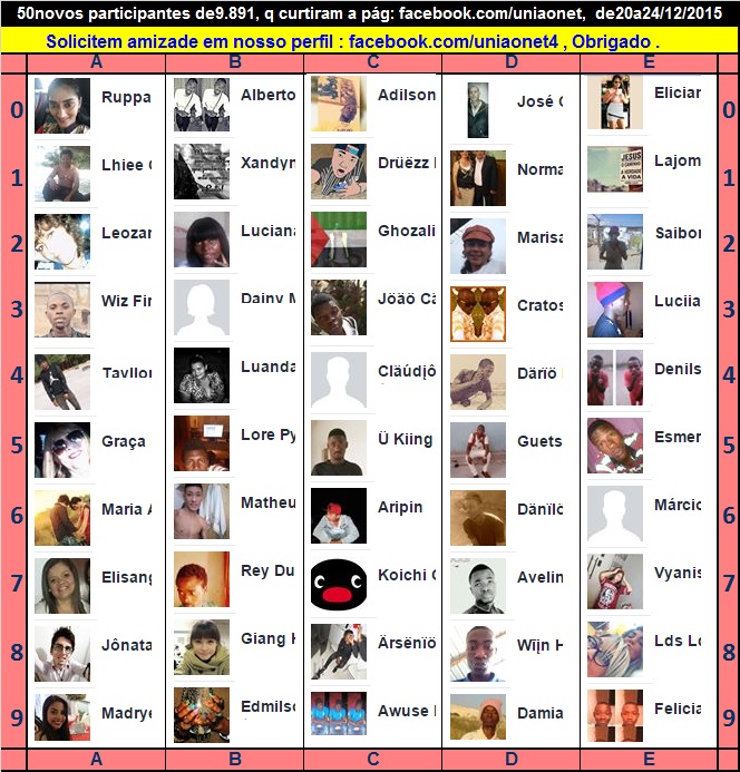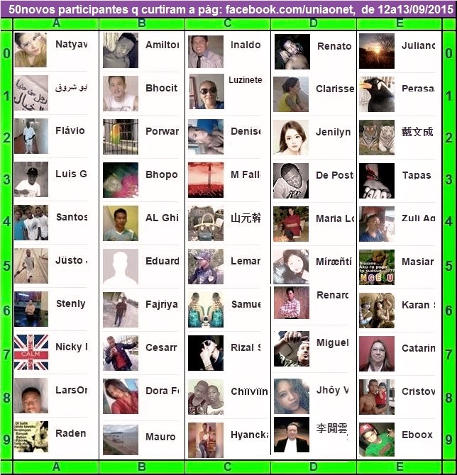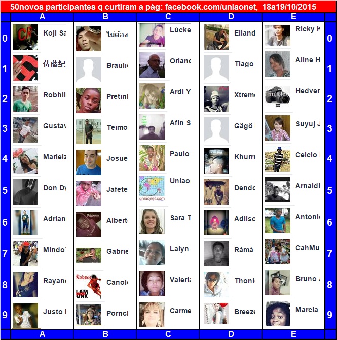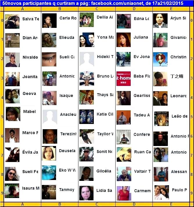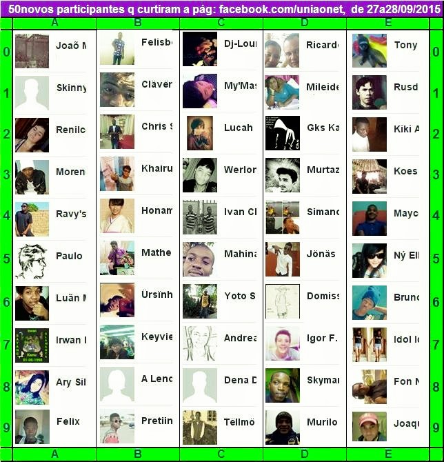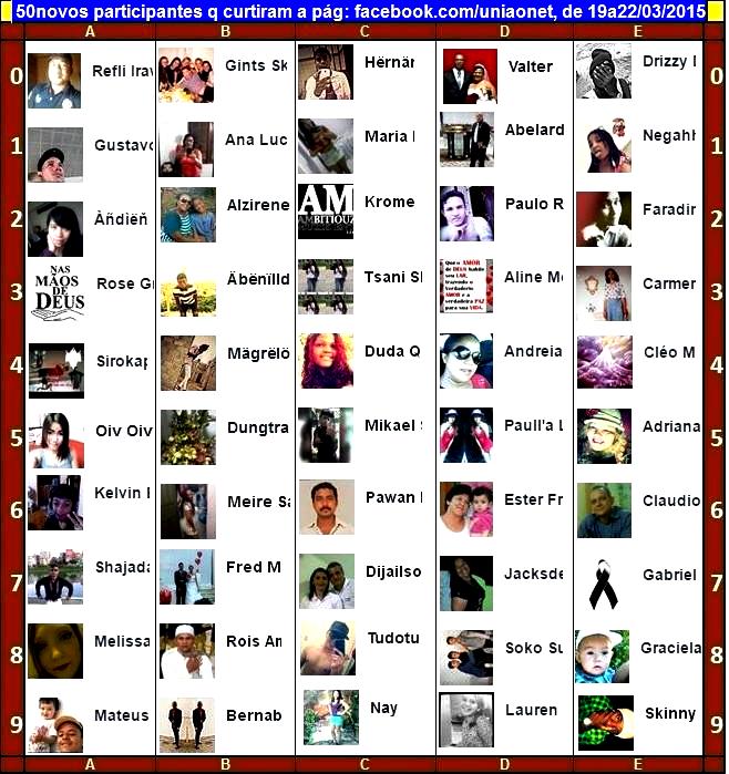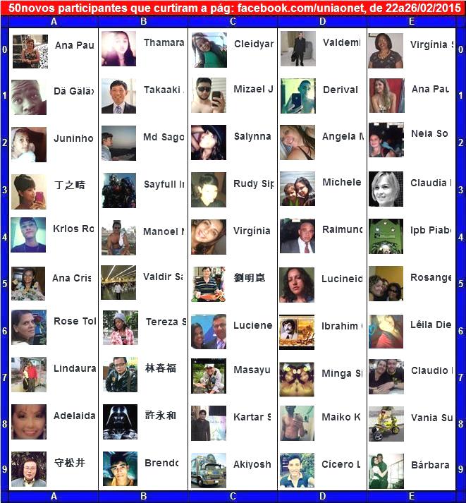 Vindas aos 50novos participantes , que de 09a11/01 /2015