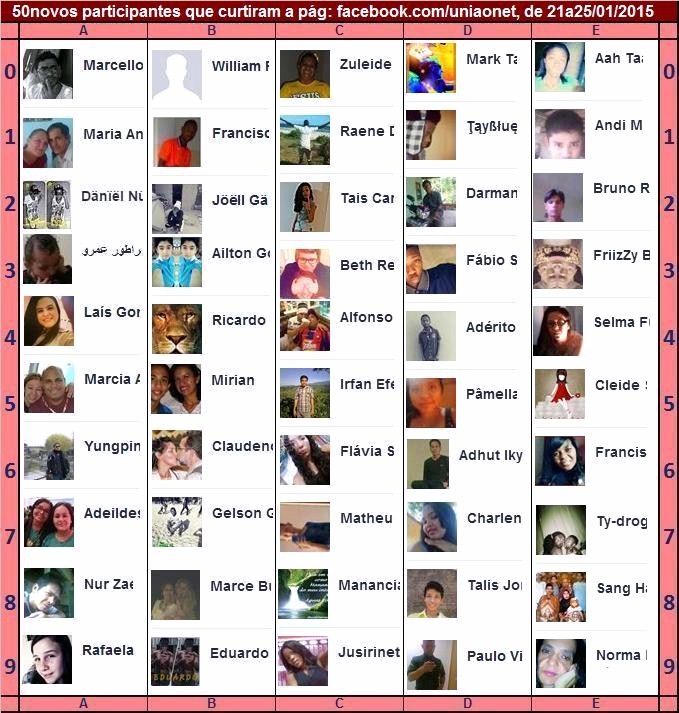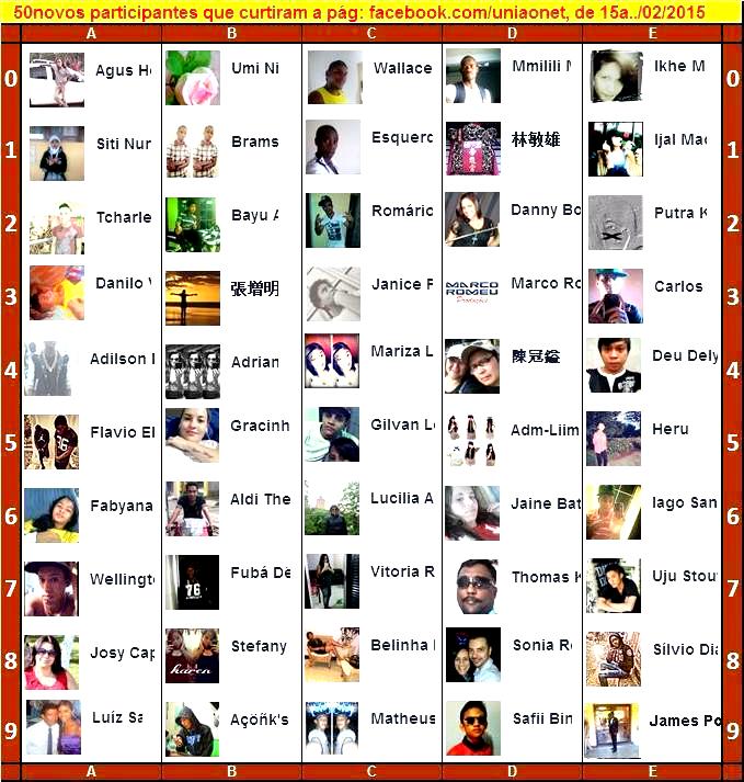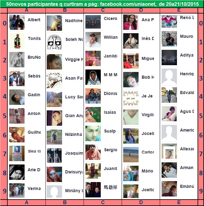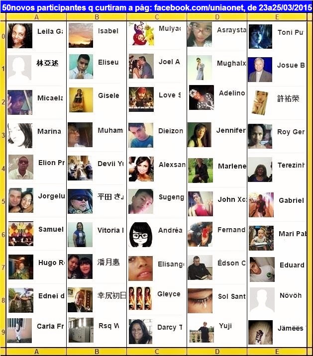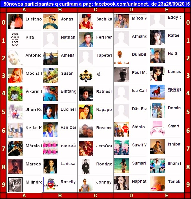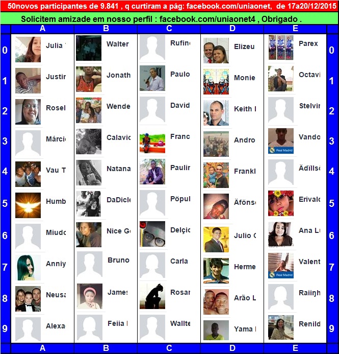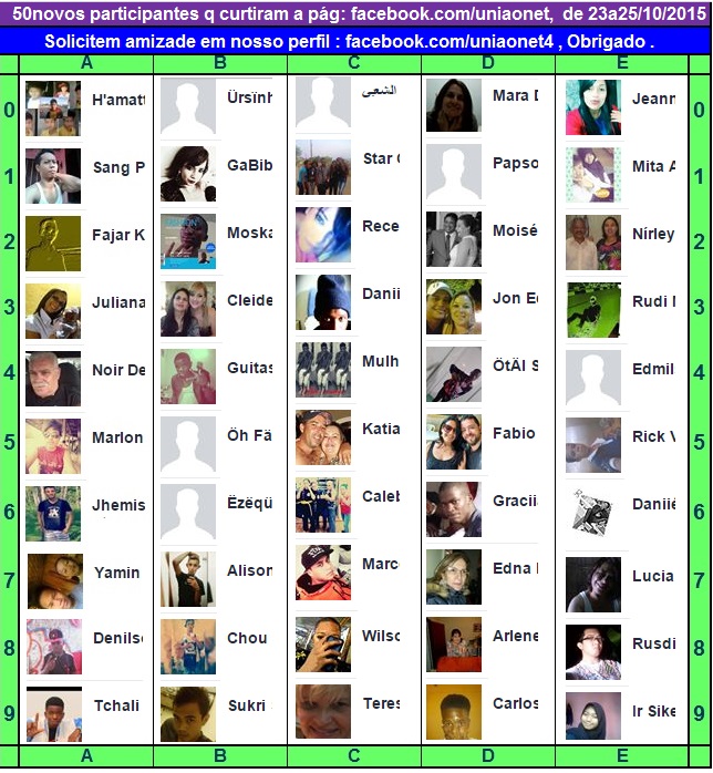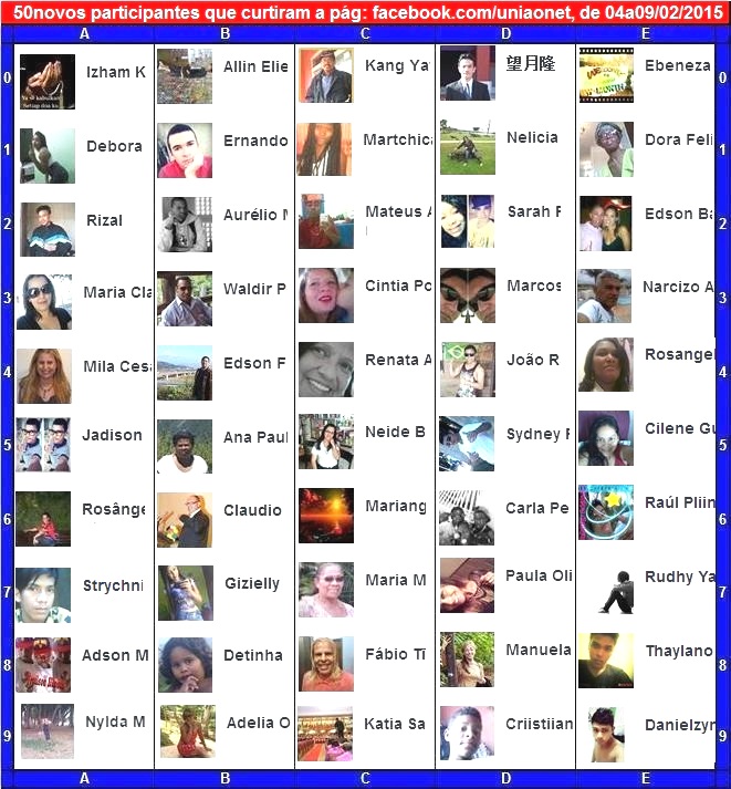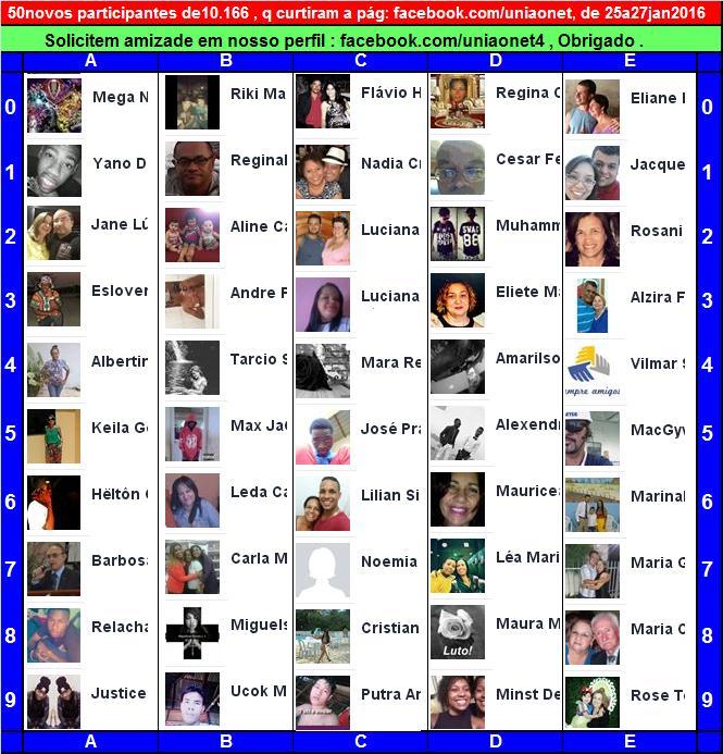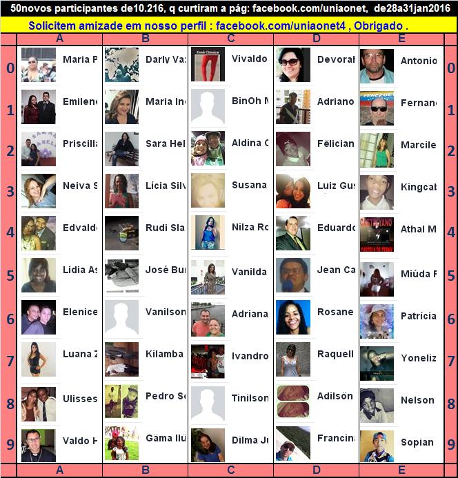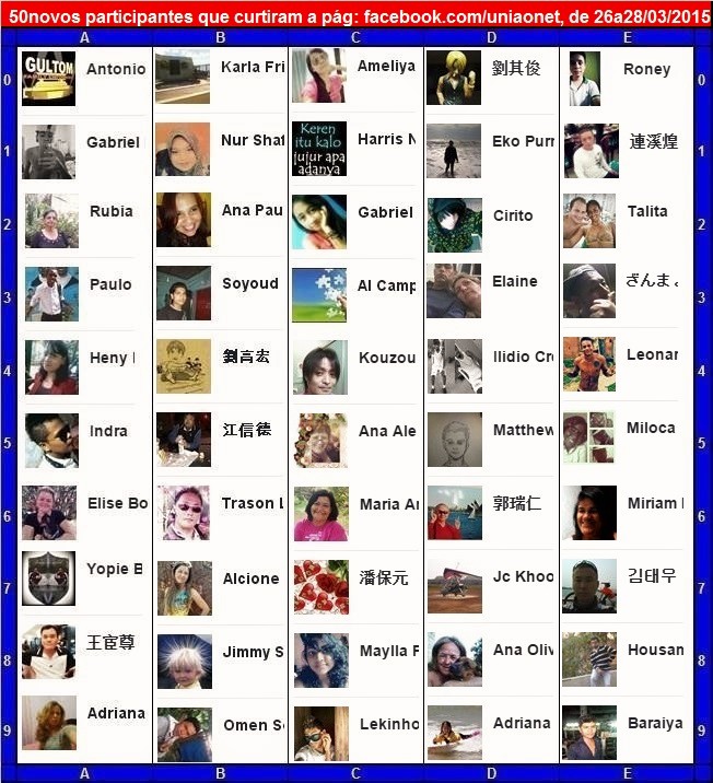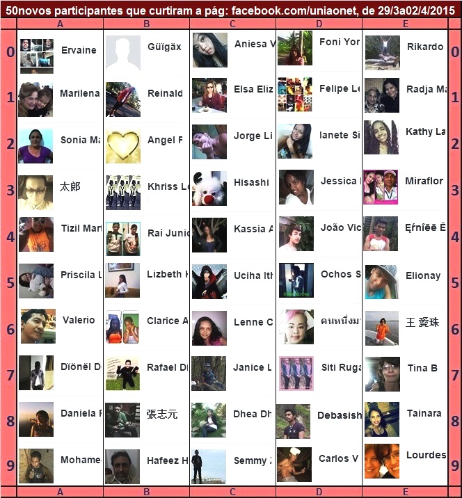 Vindas aos 50novos participantes , que de 09a11/01 /2015