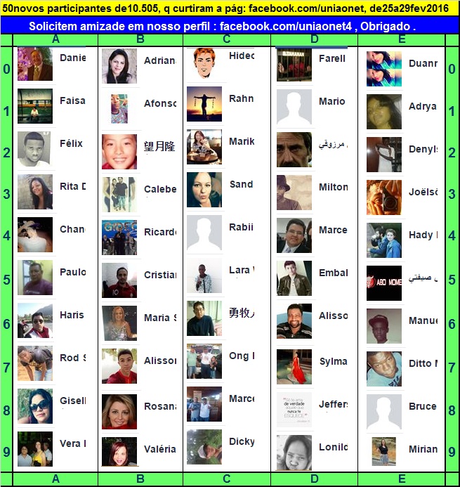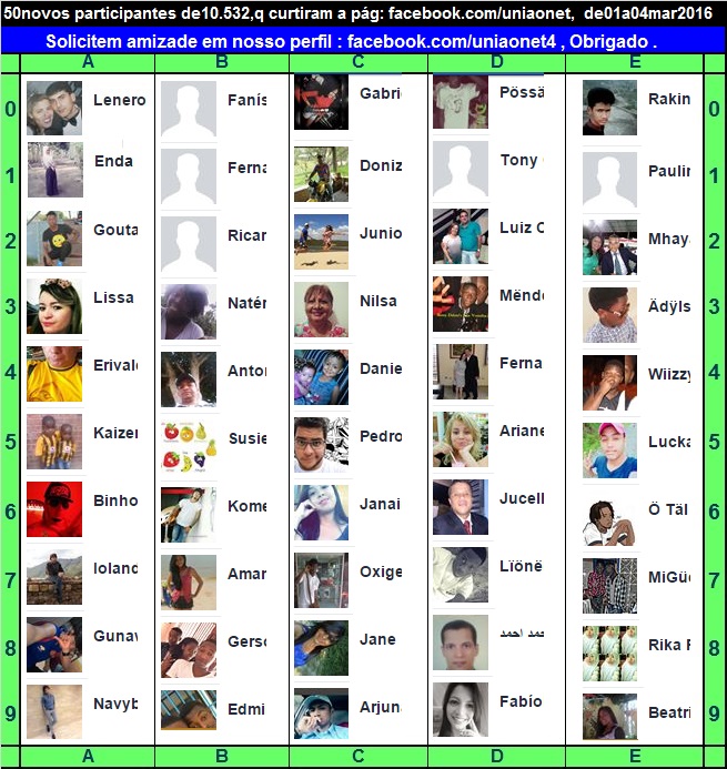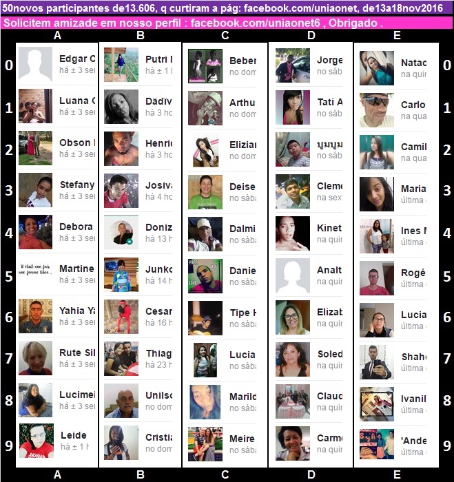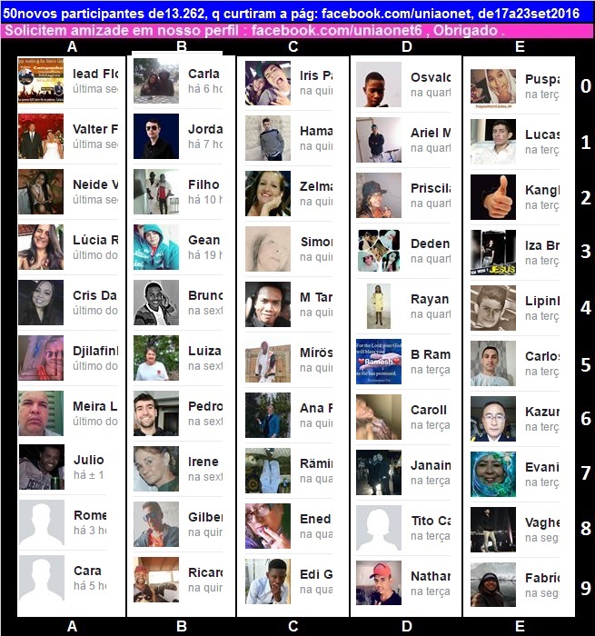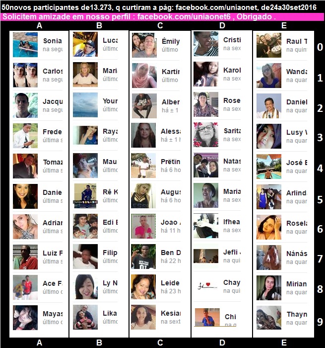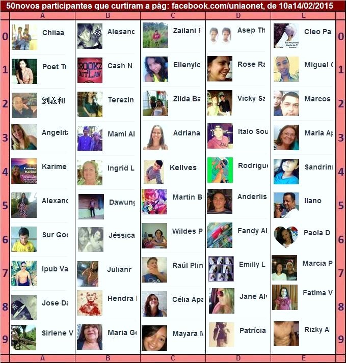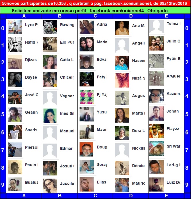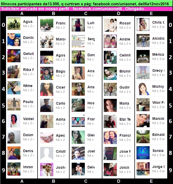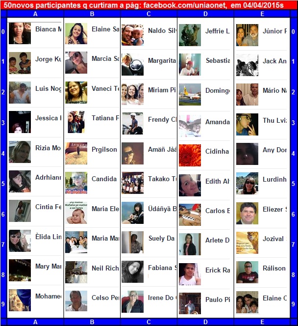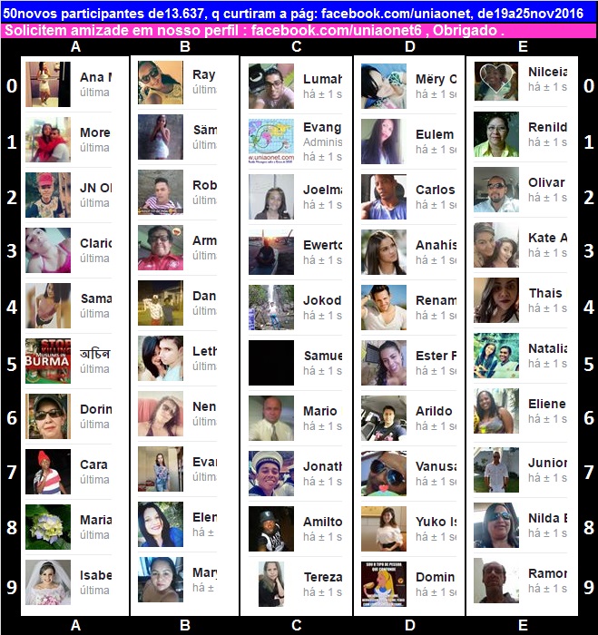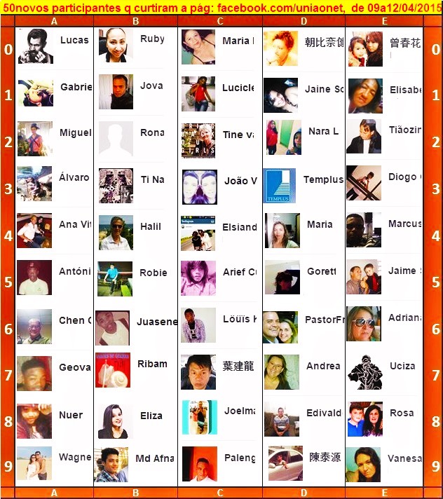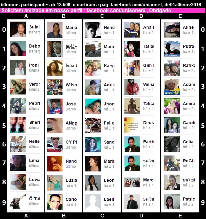 Vindas aos 50novos participantes , que de 09a11/01 /2015