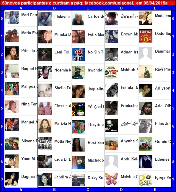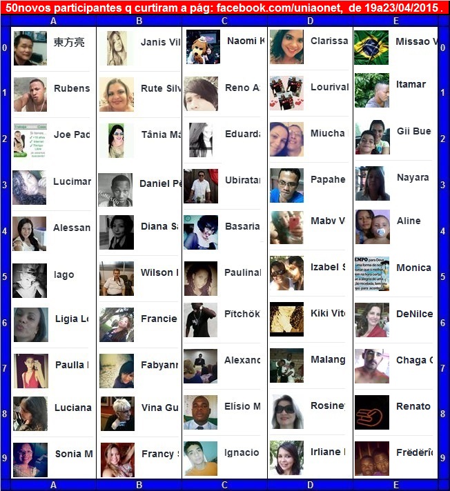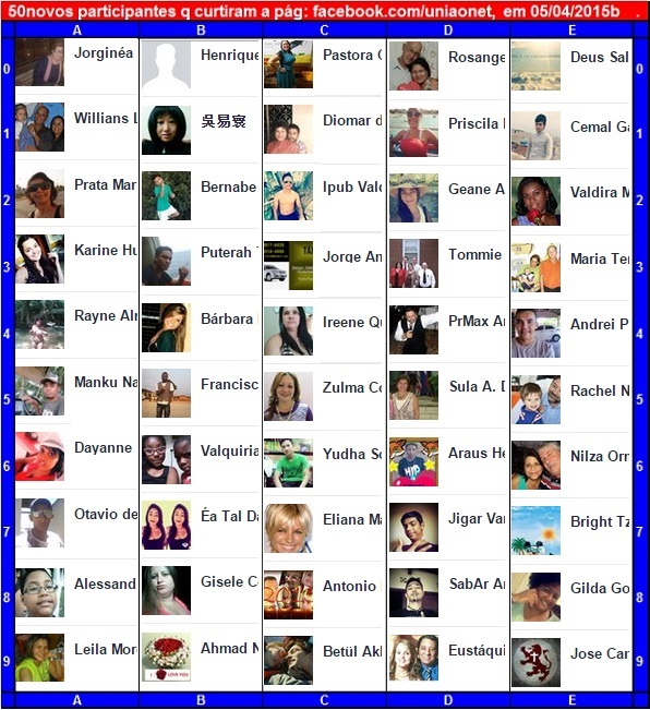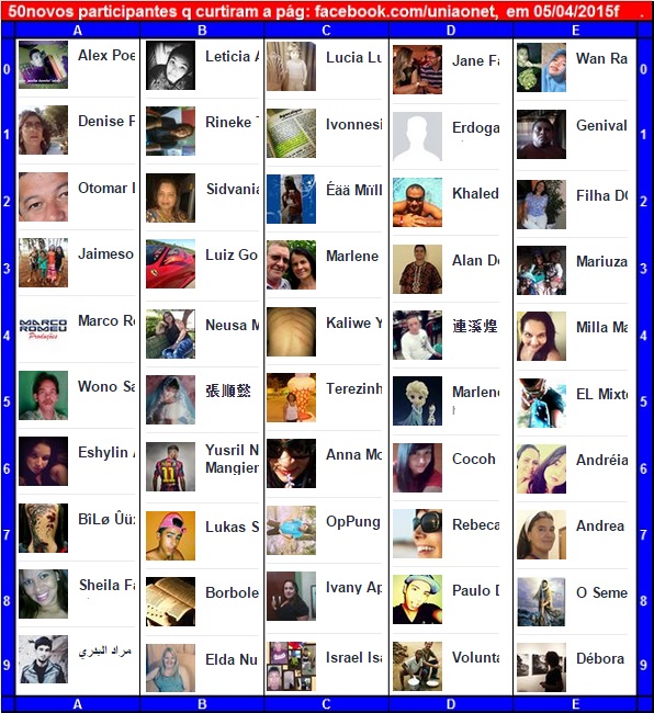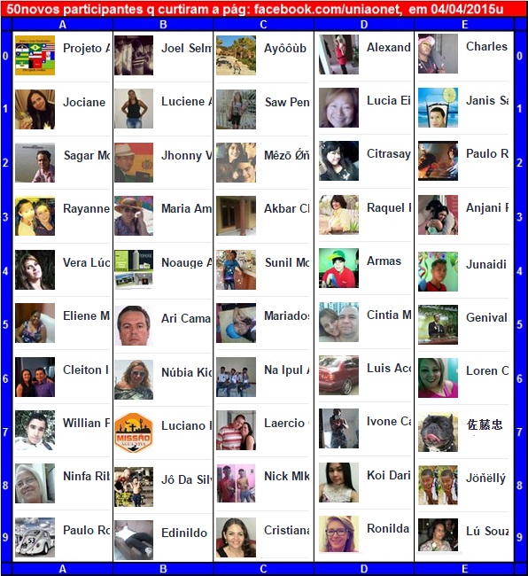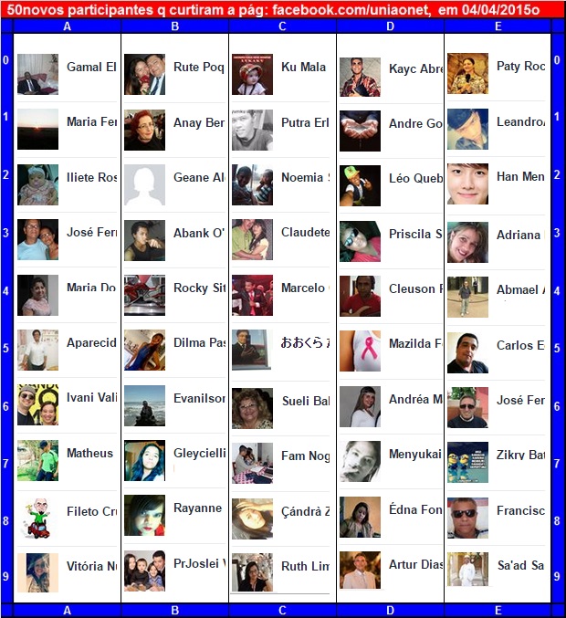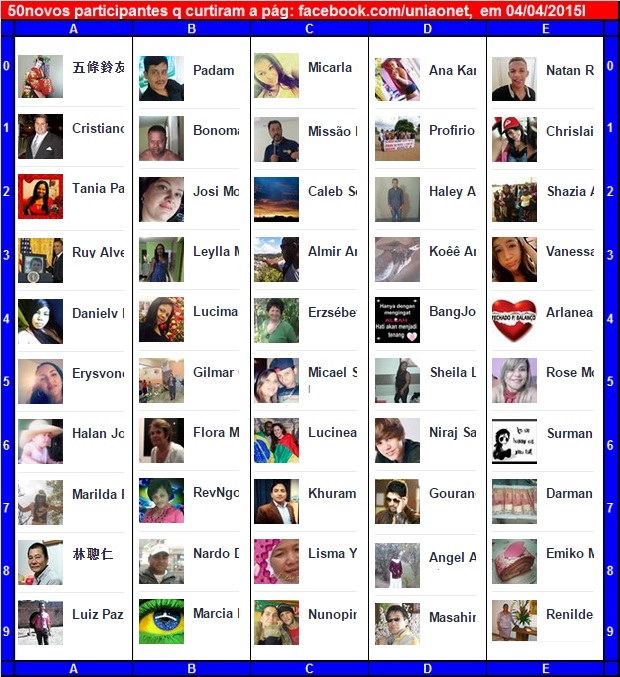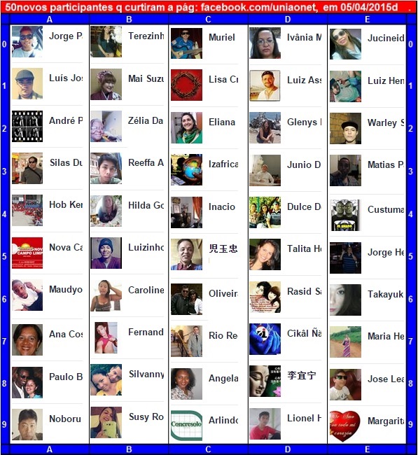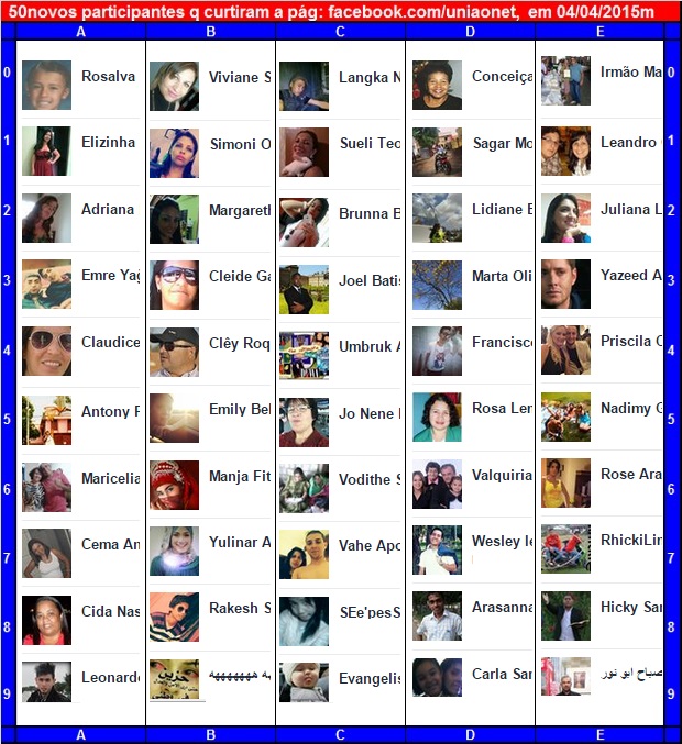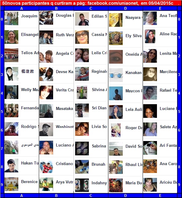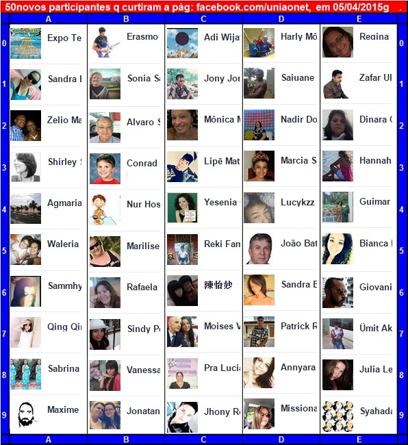 Vindas aos 50novos participantes , que de 04a05/01 /2015
