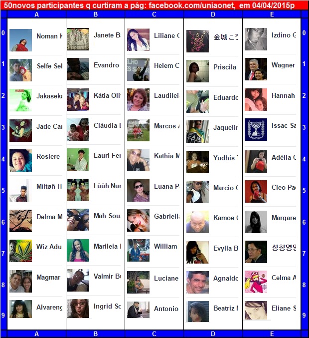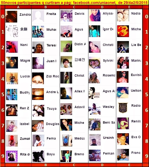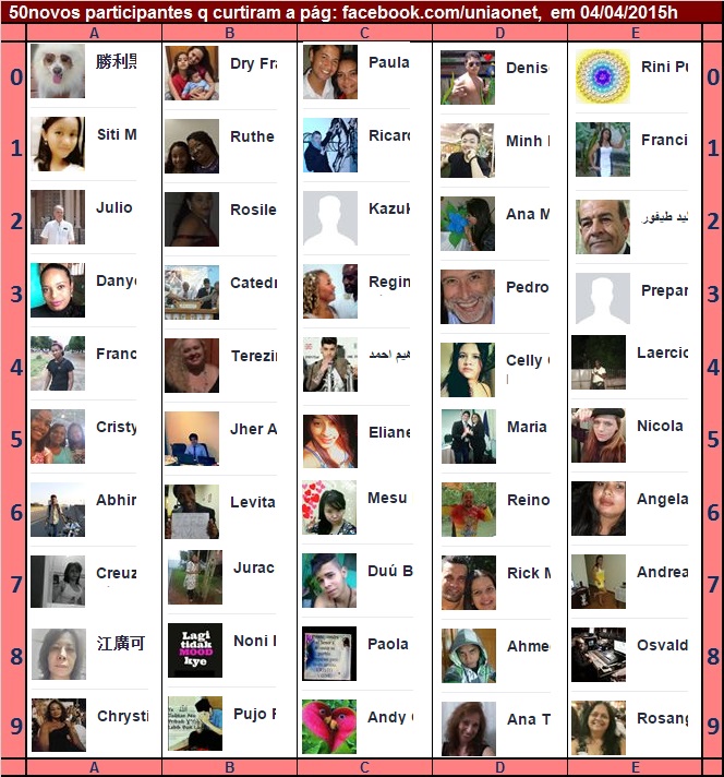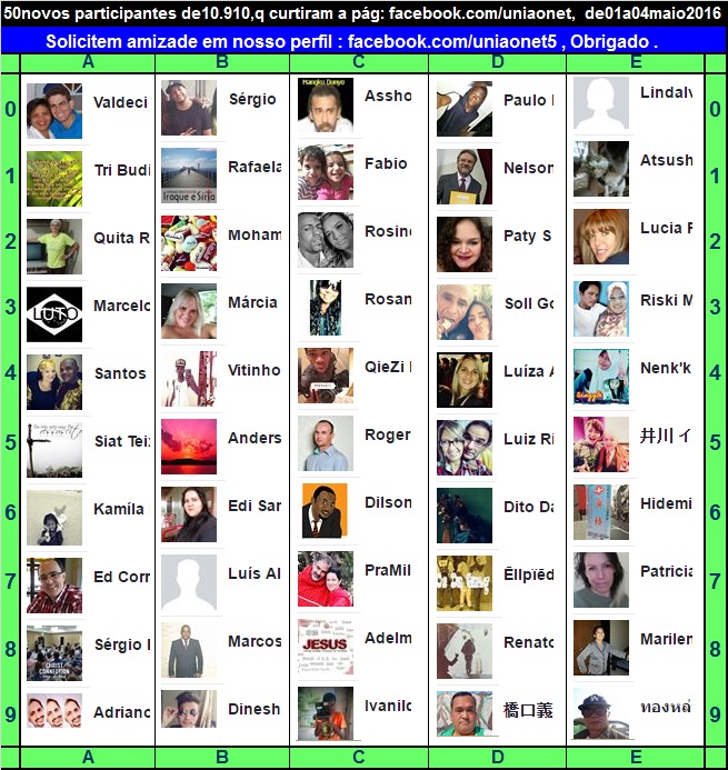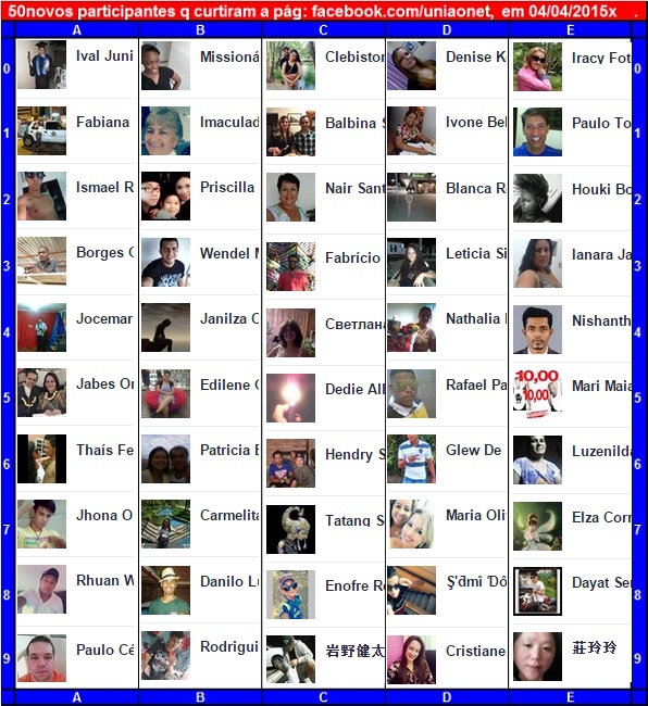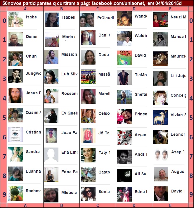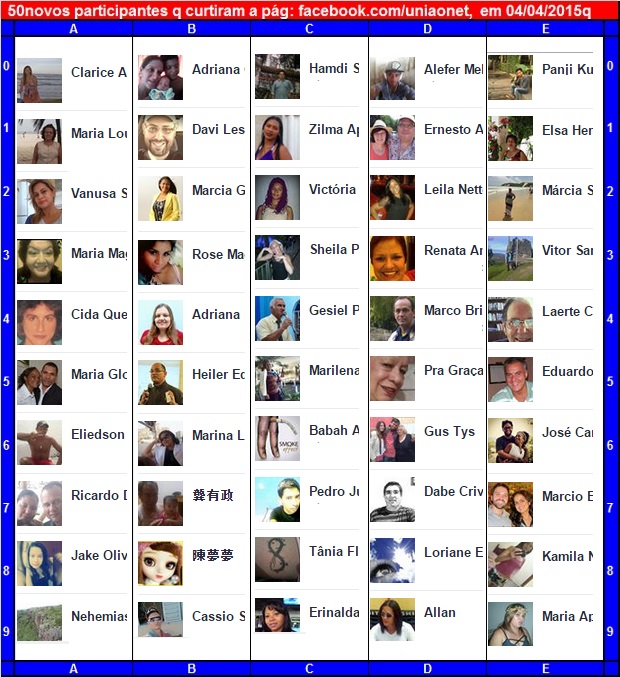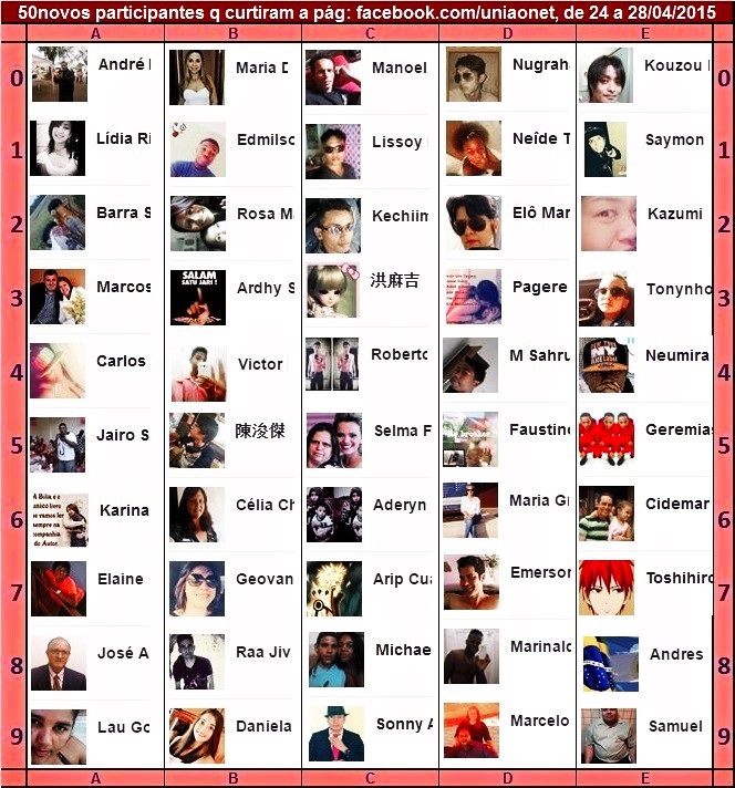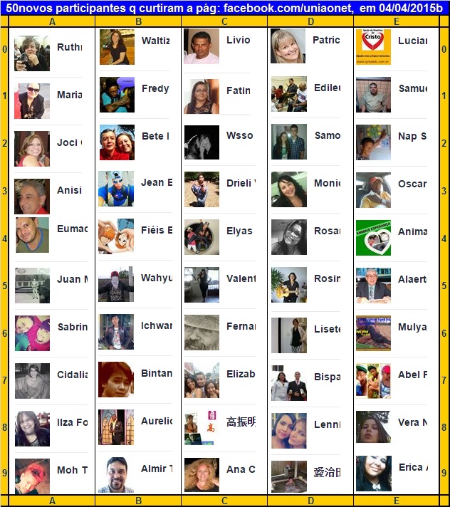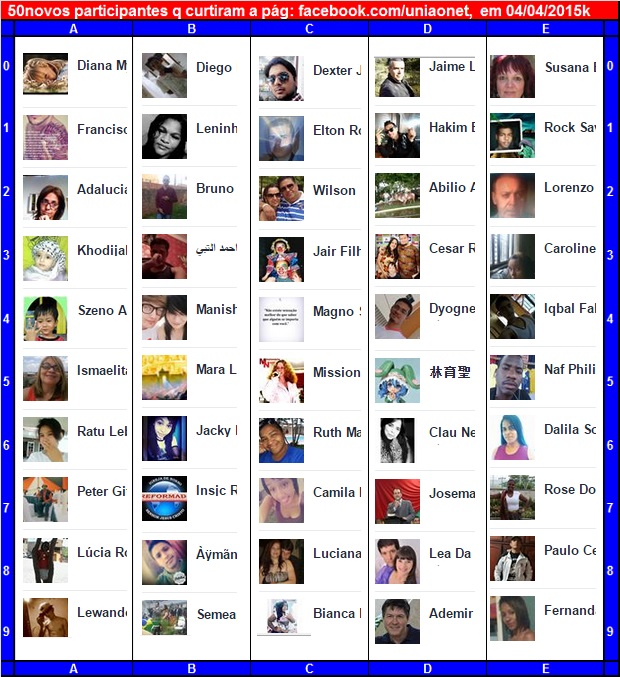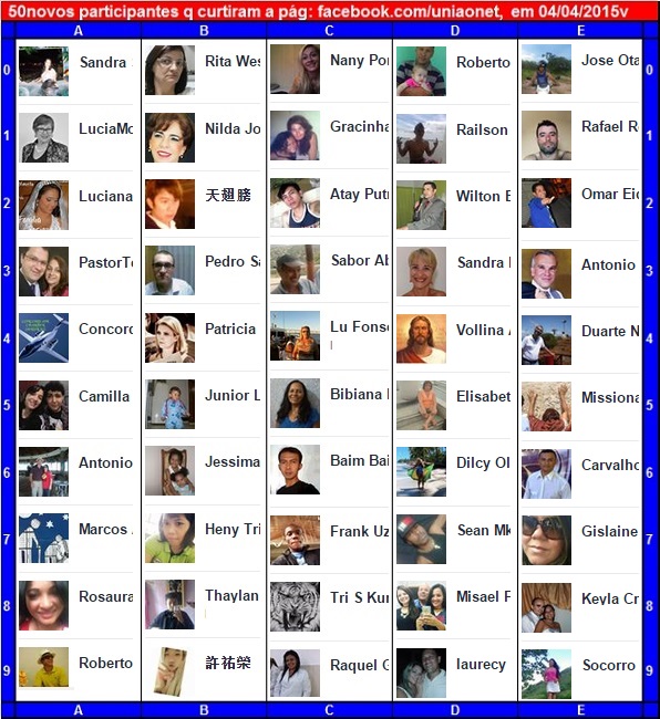 Vindas aos 50novos participantes , que de 04a05/01 /2015