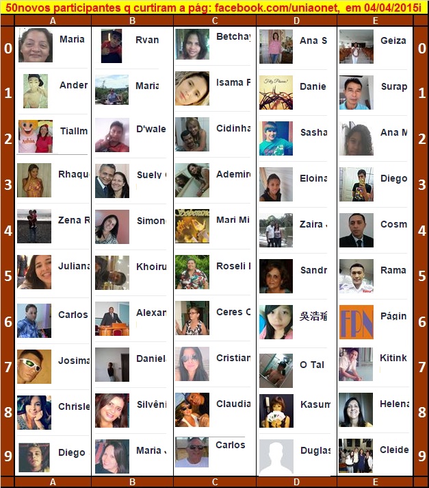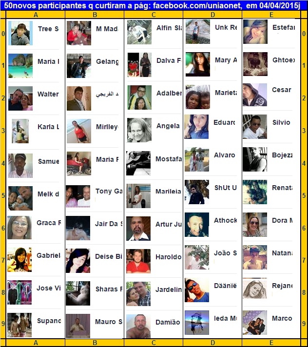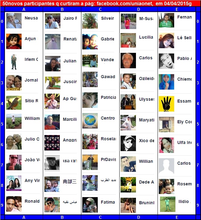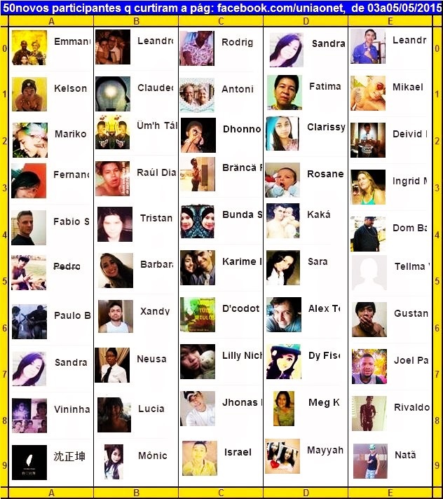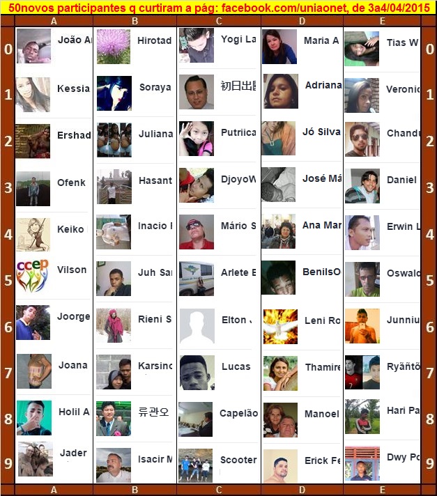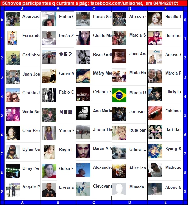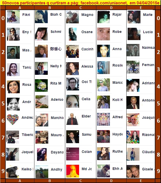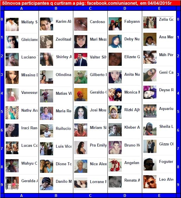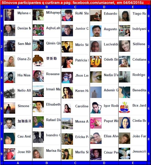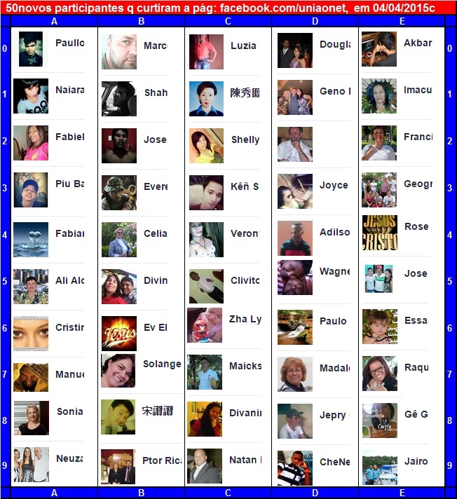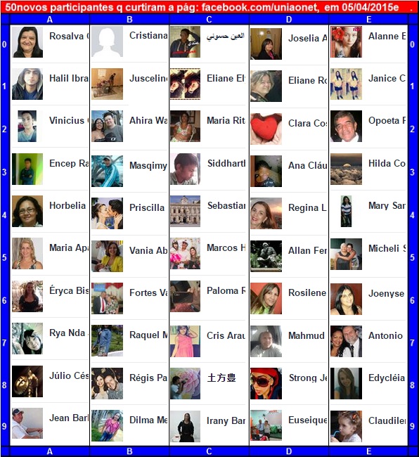 Vindas aos 50novos participantes , que de 04a05/01 /2015