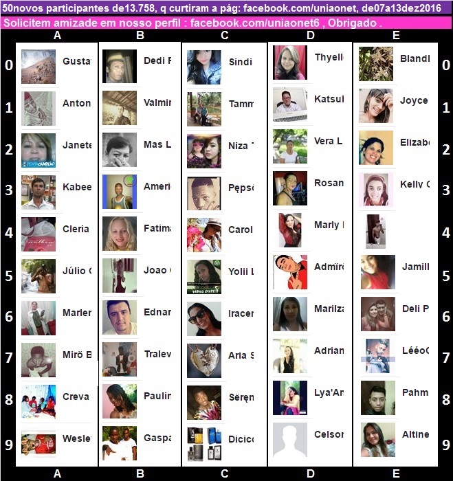 A8 Manoel Luciano Souza A9 Tarsis Tarsis Seu Famoso B0 Målukinhá Barbie B1 Mileidy