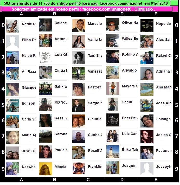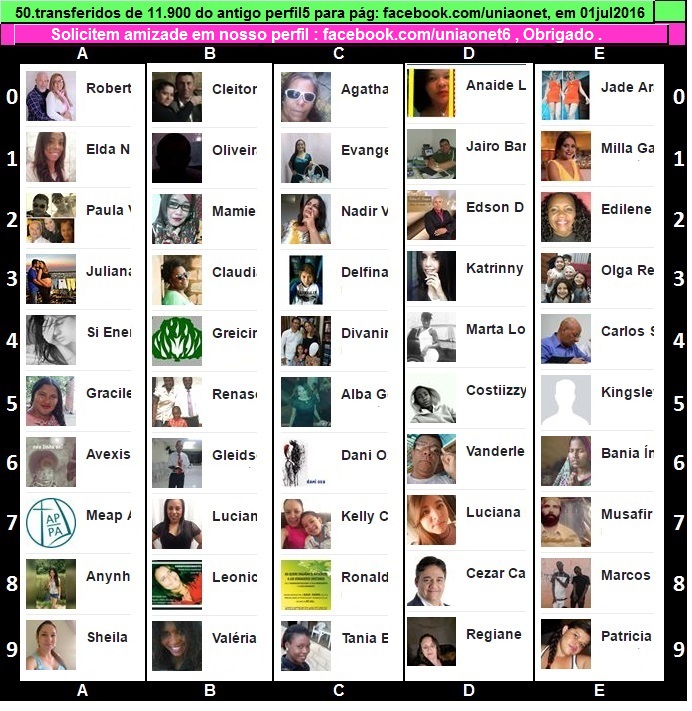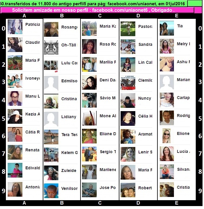 A4 Mil Kered A5 Elizabete Paulo A6 Tàcia Gomes A7 Fabiana Dos Santos Almerinda