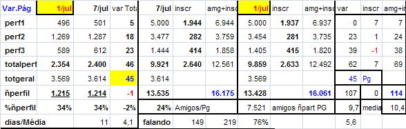 ( Total de Amigos nos Perfis : 9.507 Agora : 9.621, total de 7.464 não
