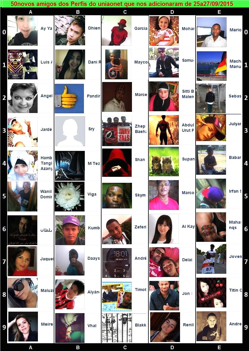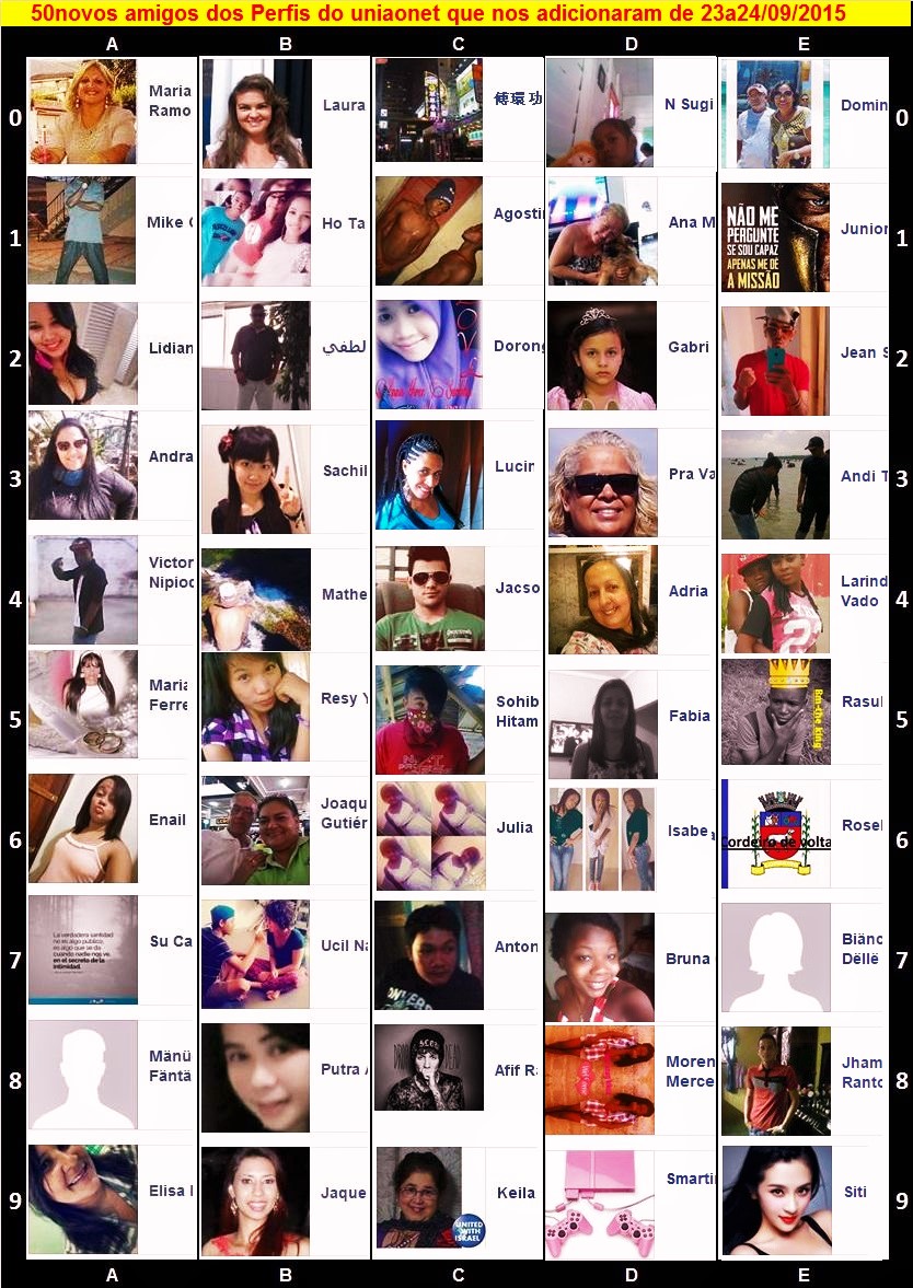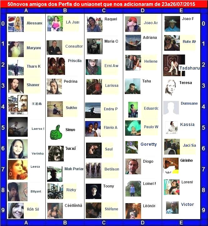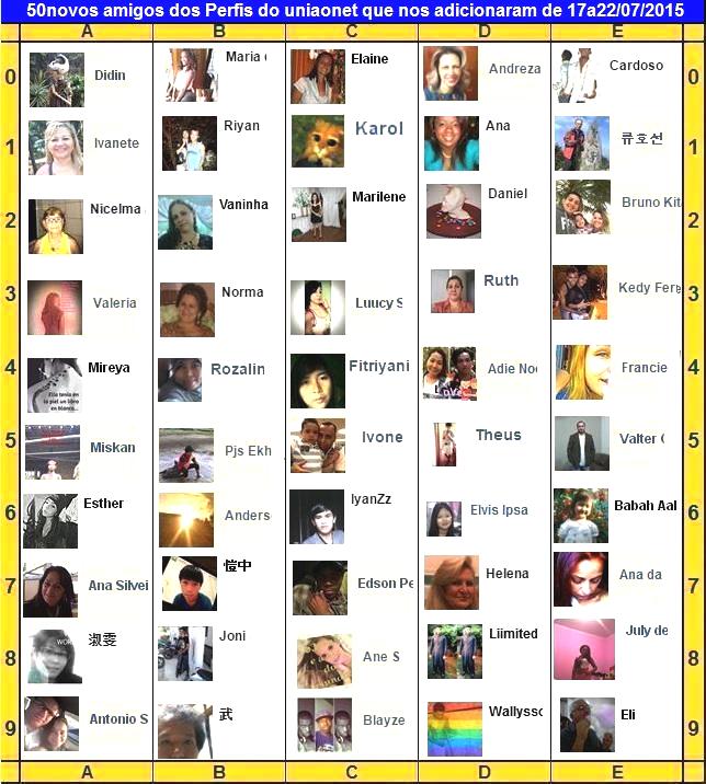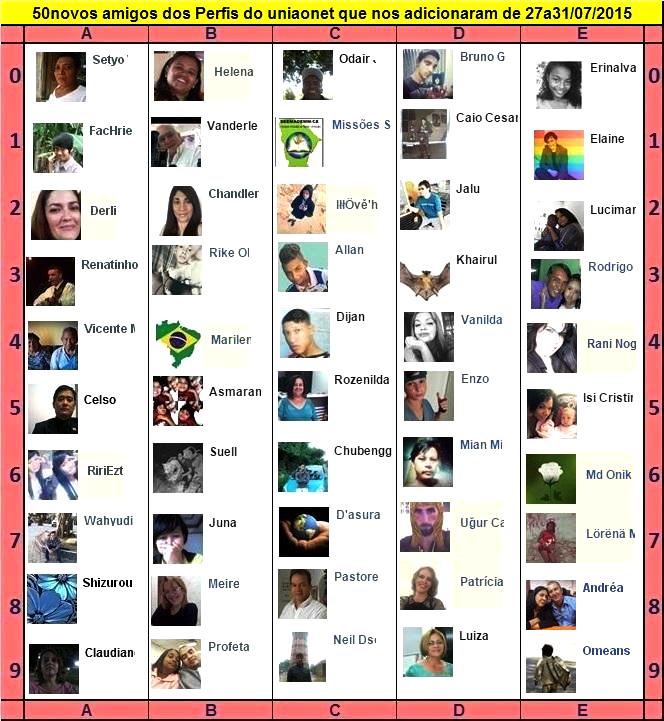 50novos amigos dos Perfis do uniaonet que nos adicionaram de 10a16/07/2015 .