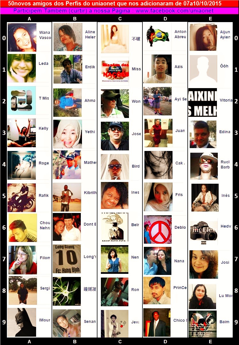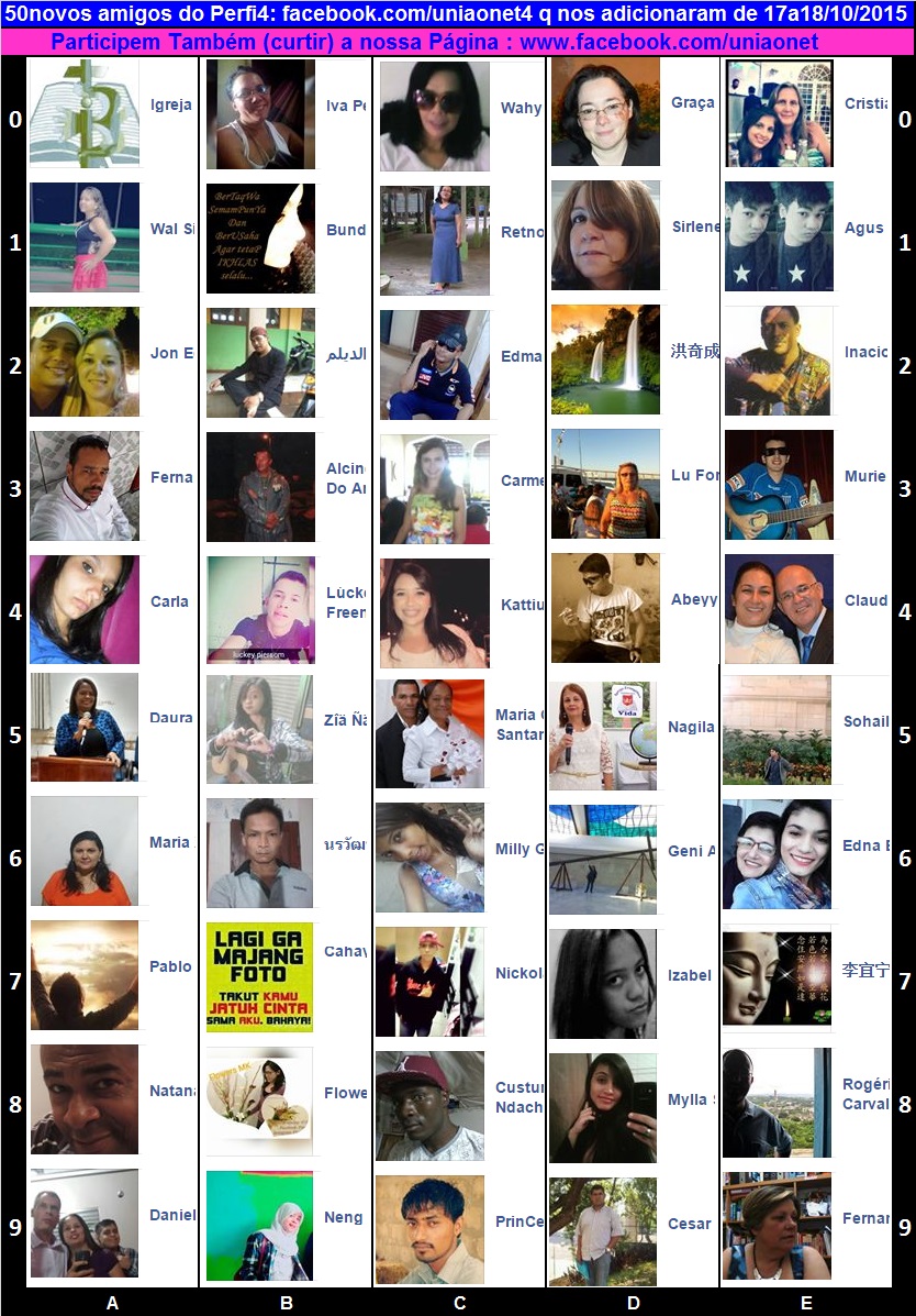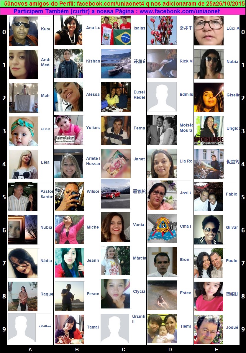 50novos amigos dos Perfis do uniaonet que nos adicionaram de 10a16/07/2015 .