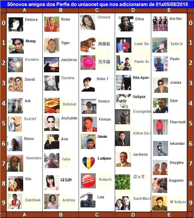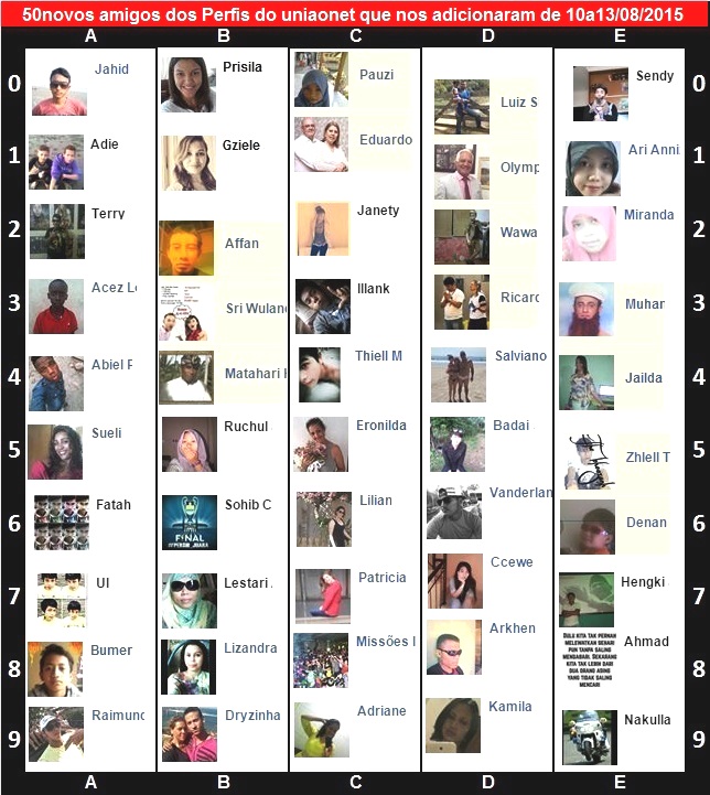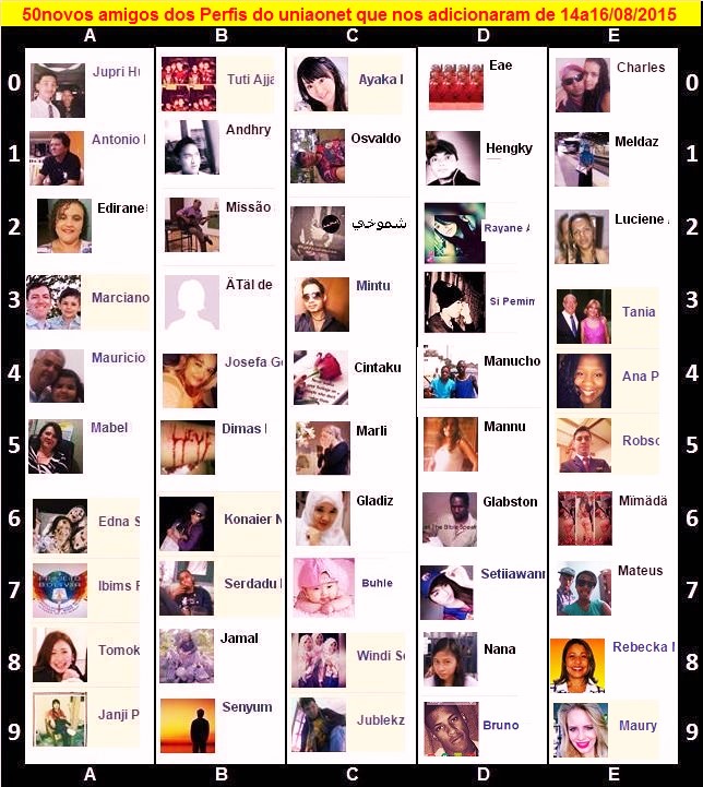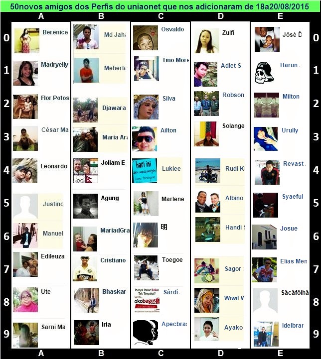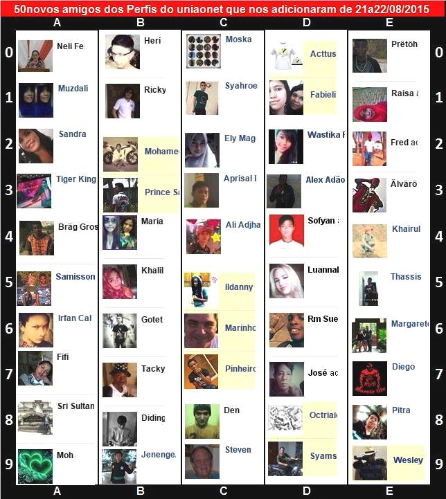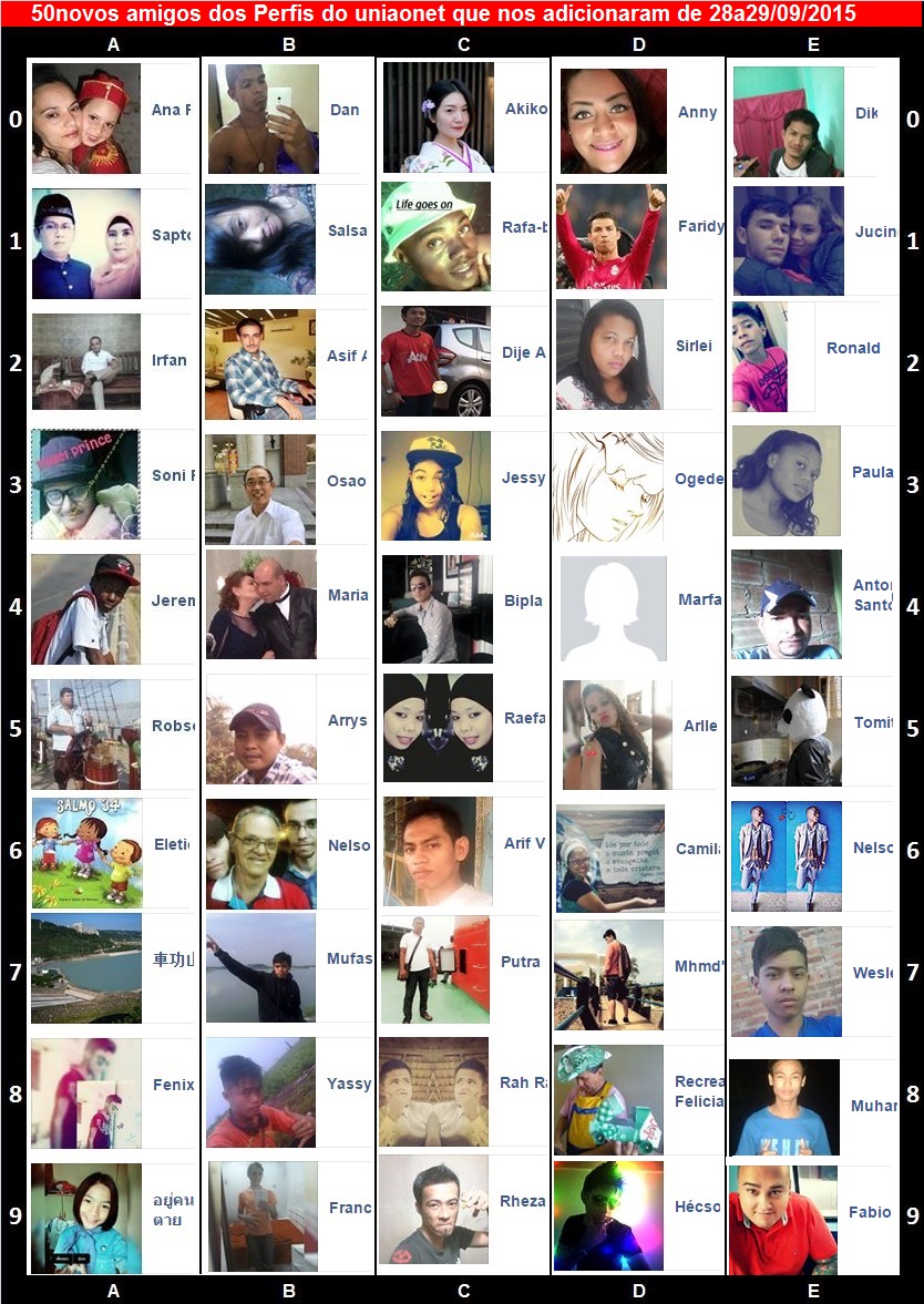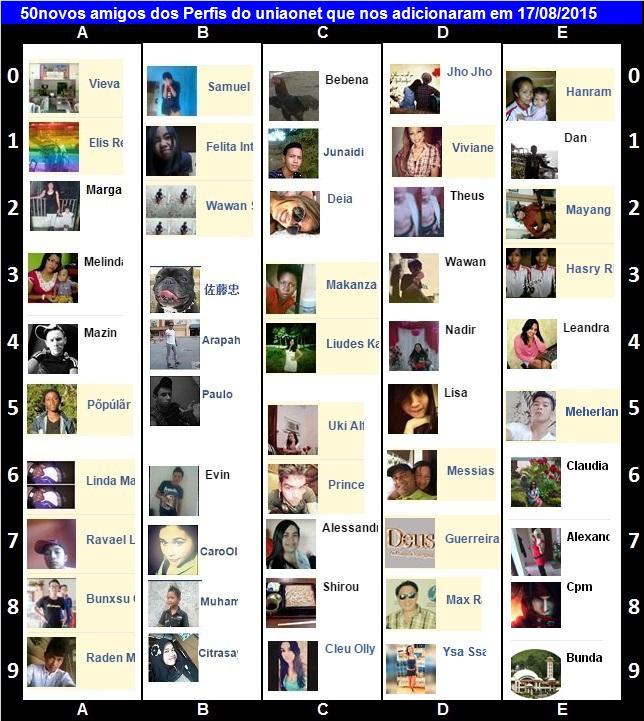 50novos amigos dos Perfis do uniaonet que nos adicionaram de 01a05/08/2015 , contudo