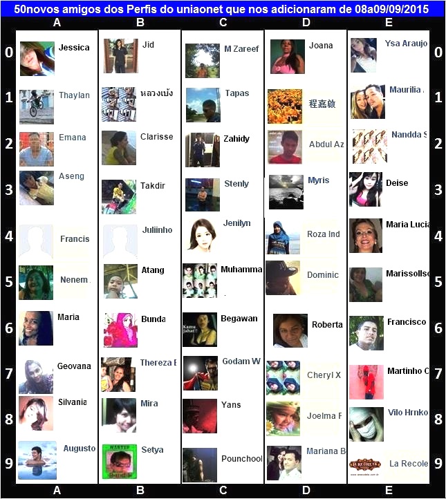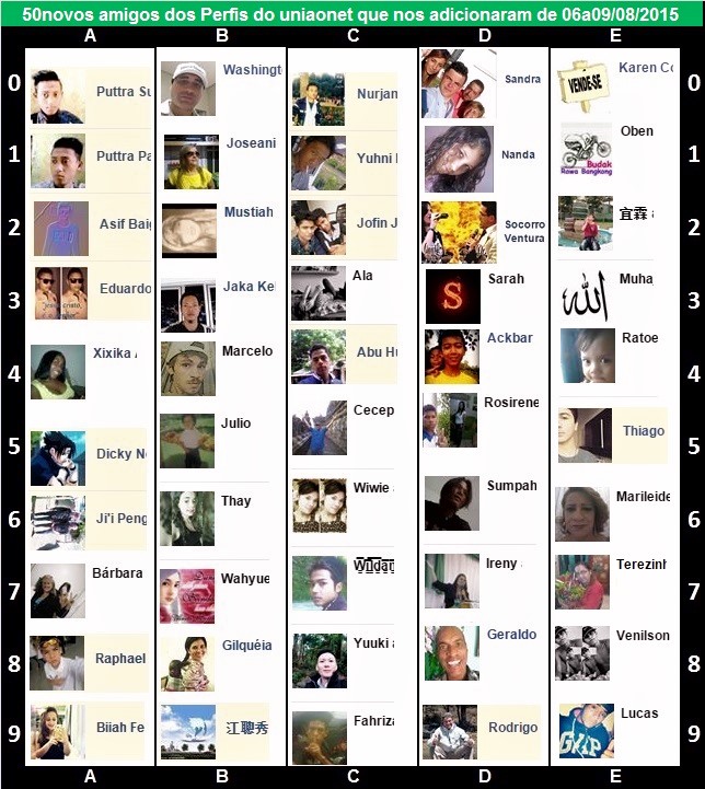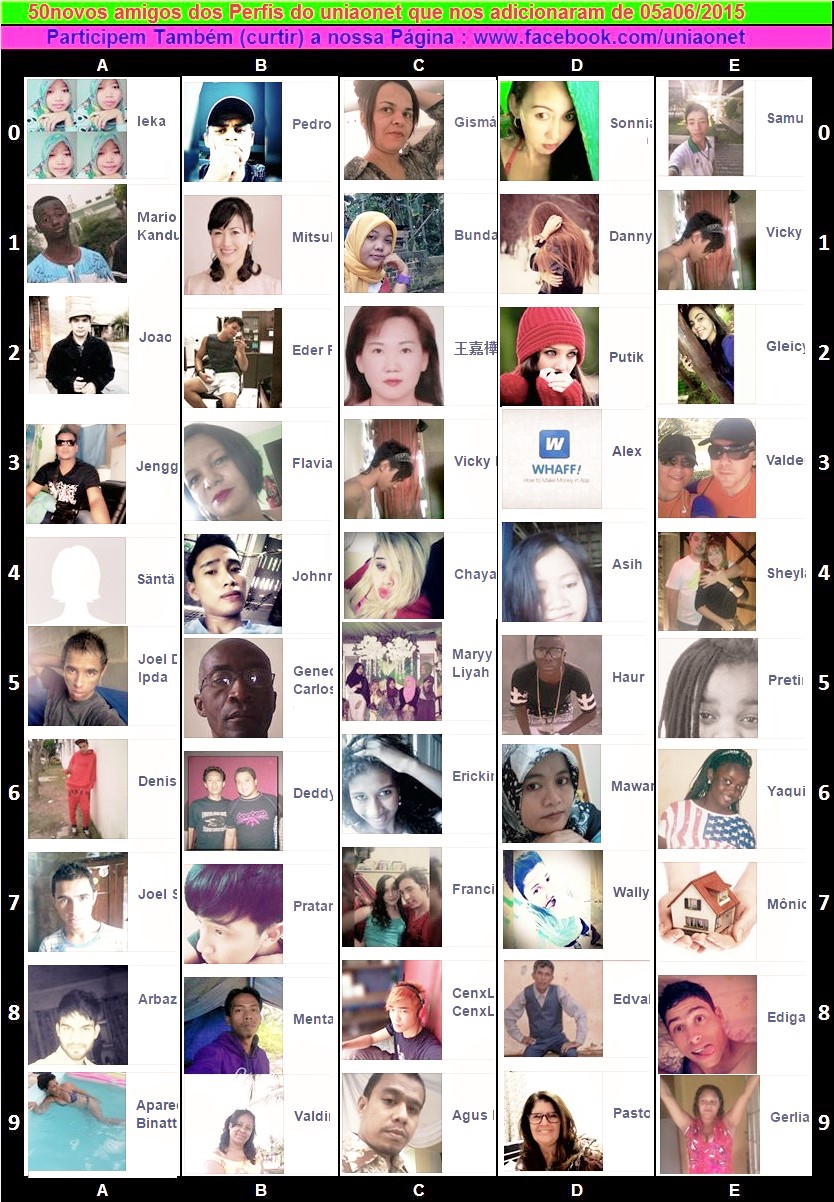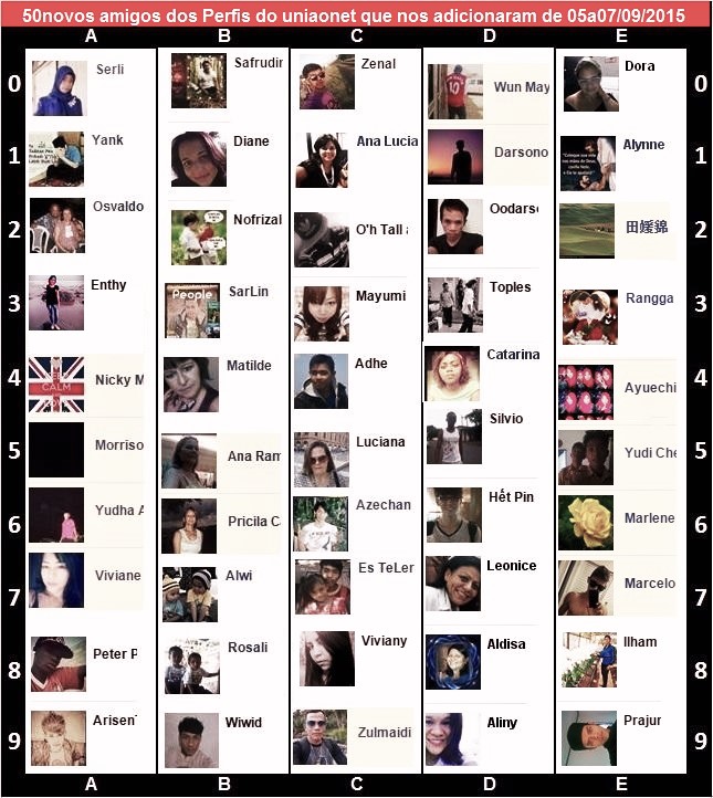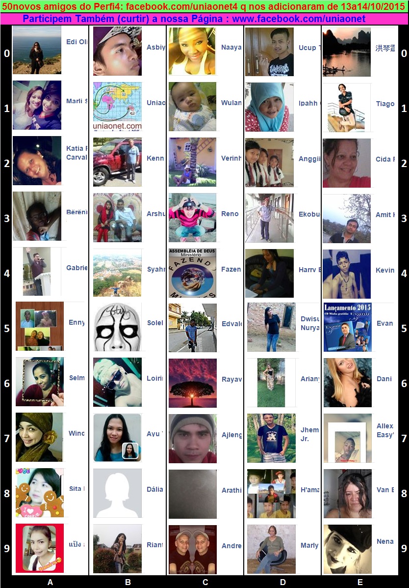 50novos amigos dos Perfis do uniaonet que nos adicionaram de 01a05/08/2015 , contudo