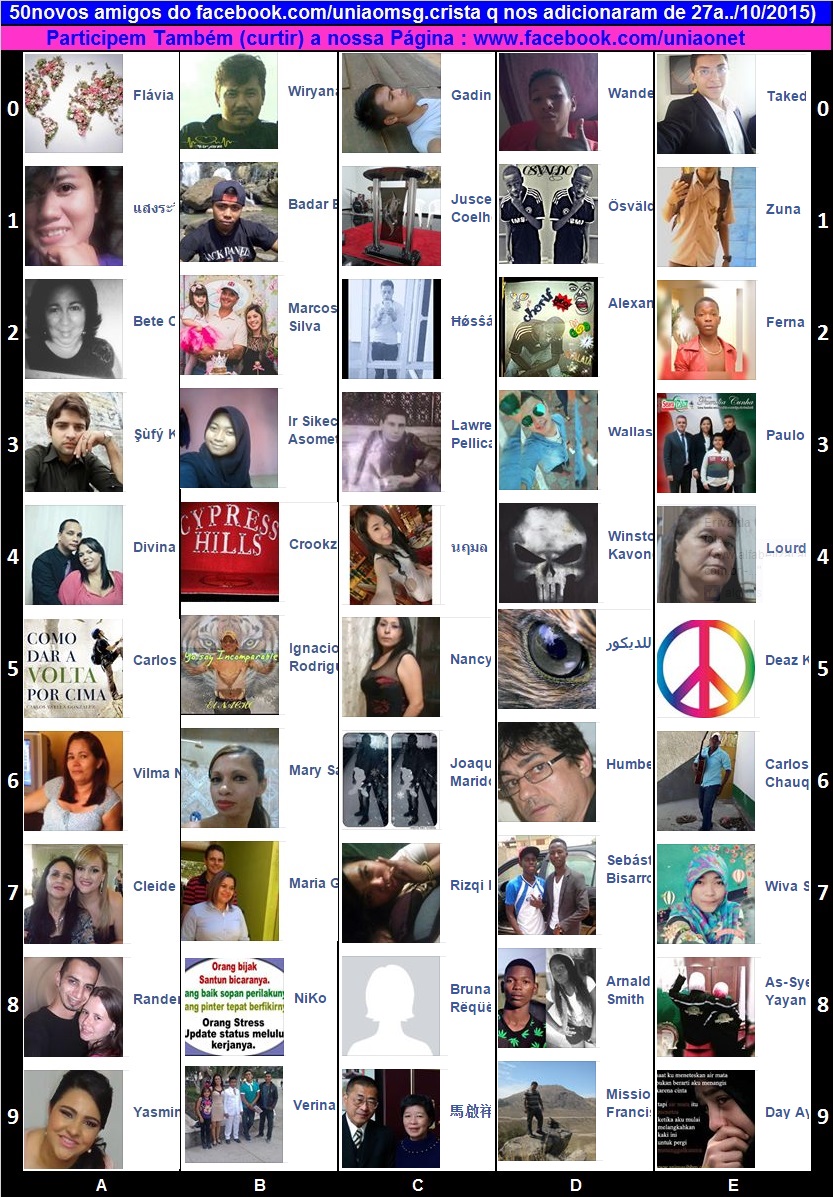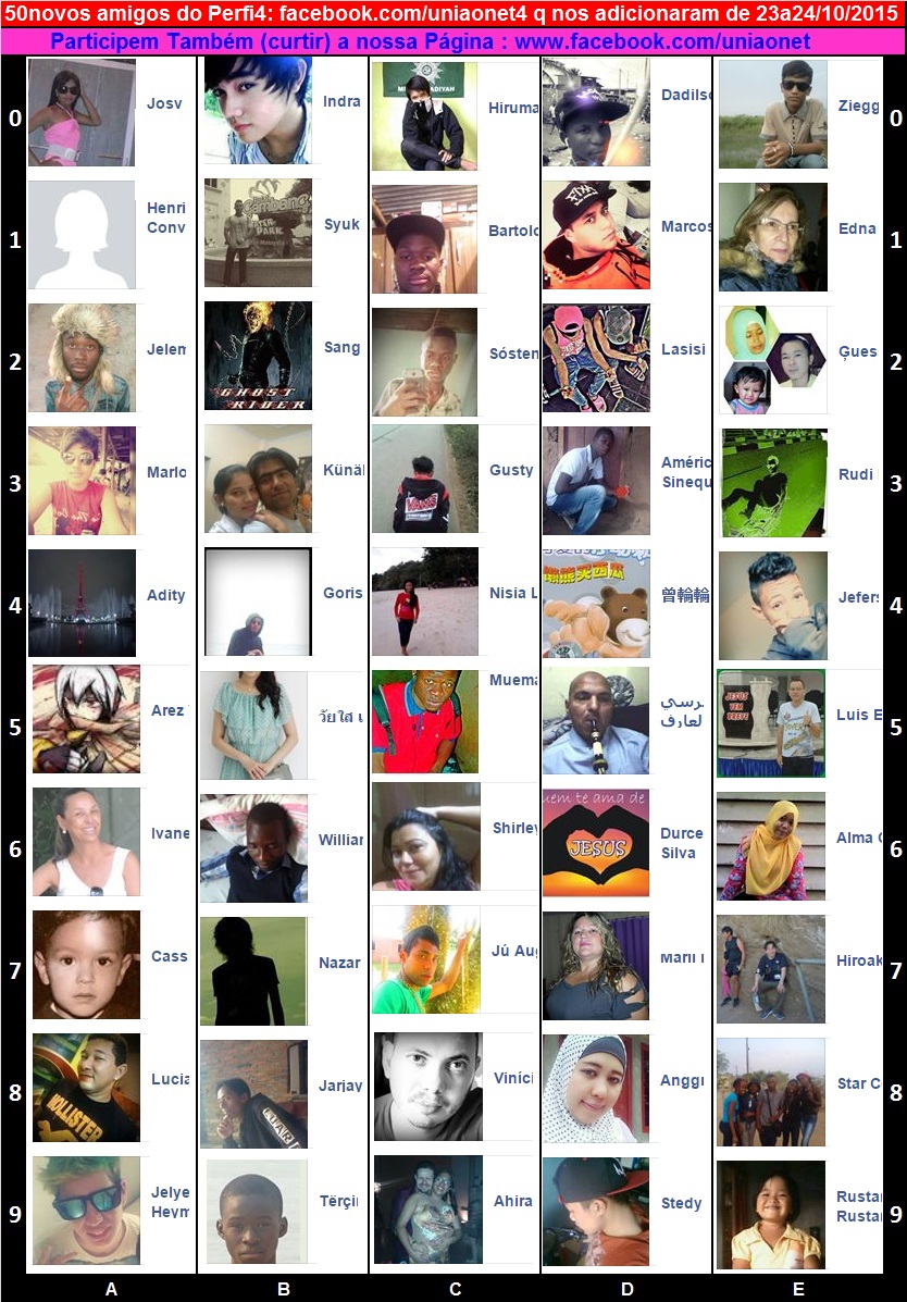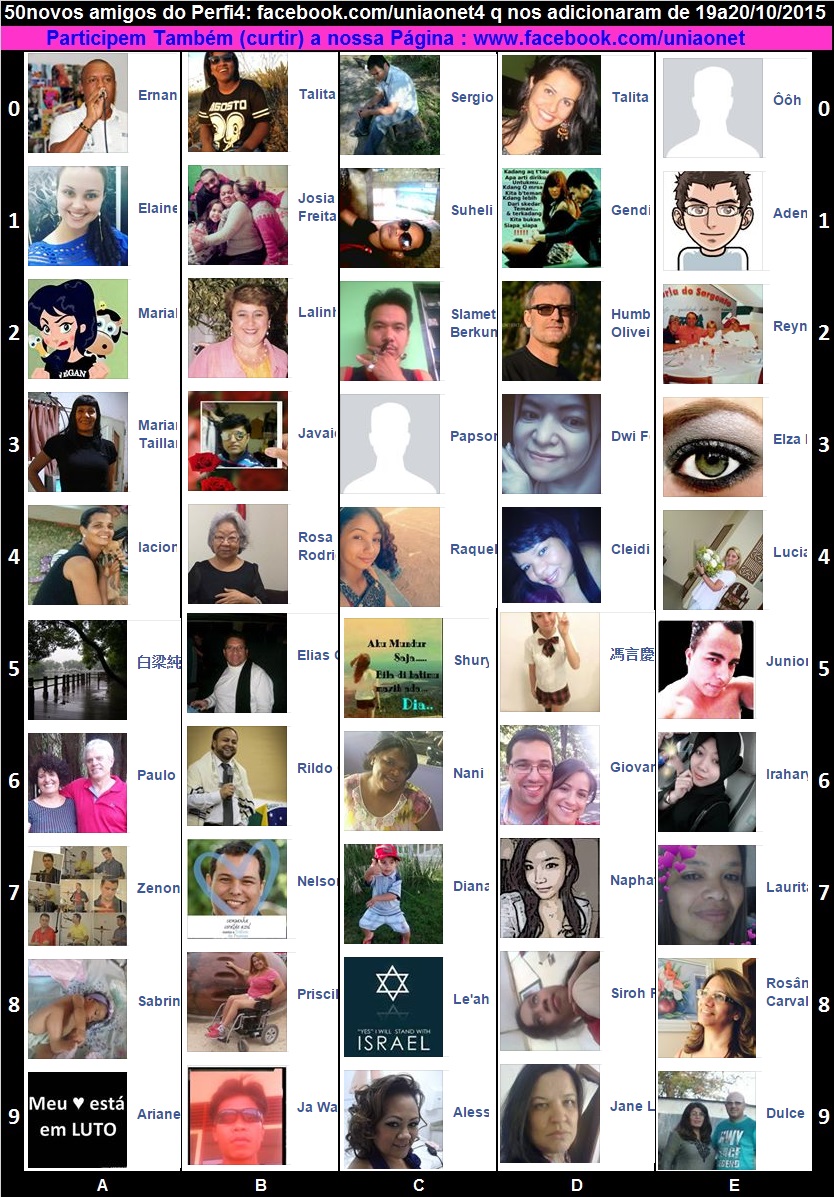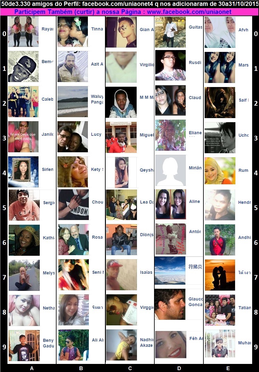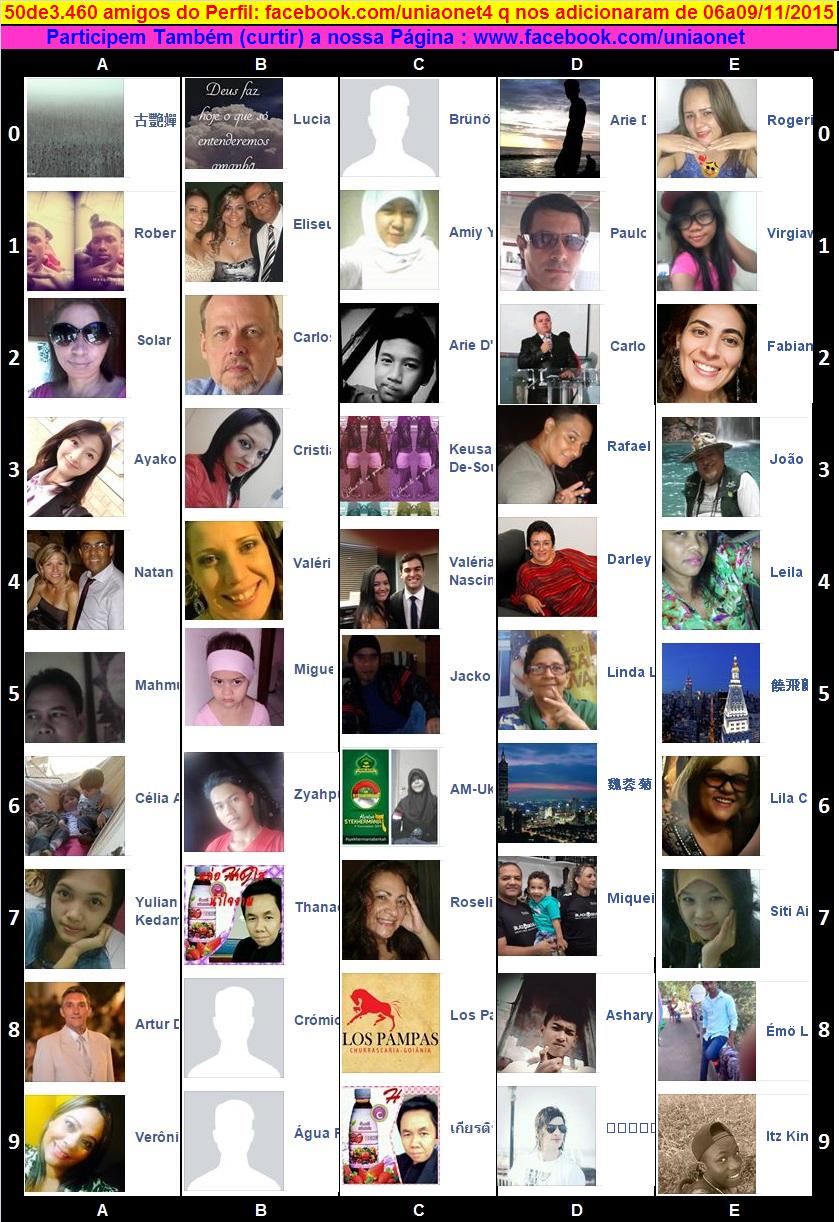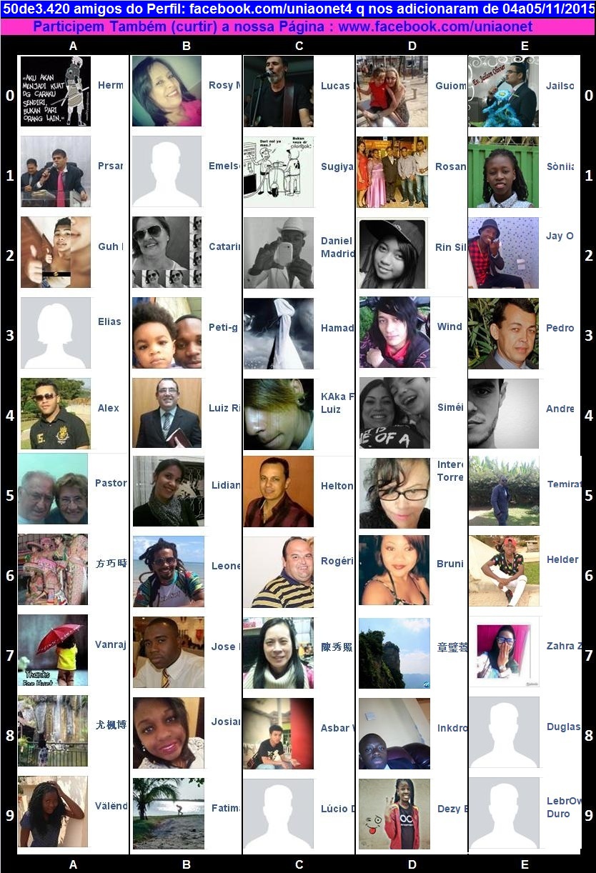 50novos amigos (de3.420) que de 04a05/11/2015 , nos adicionaram em seus Perfis