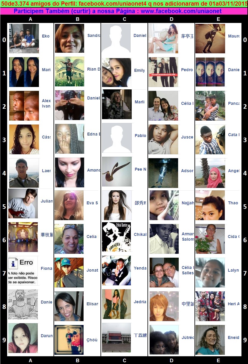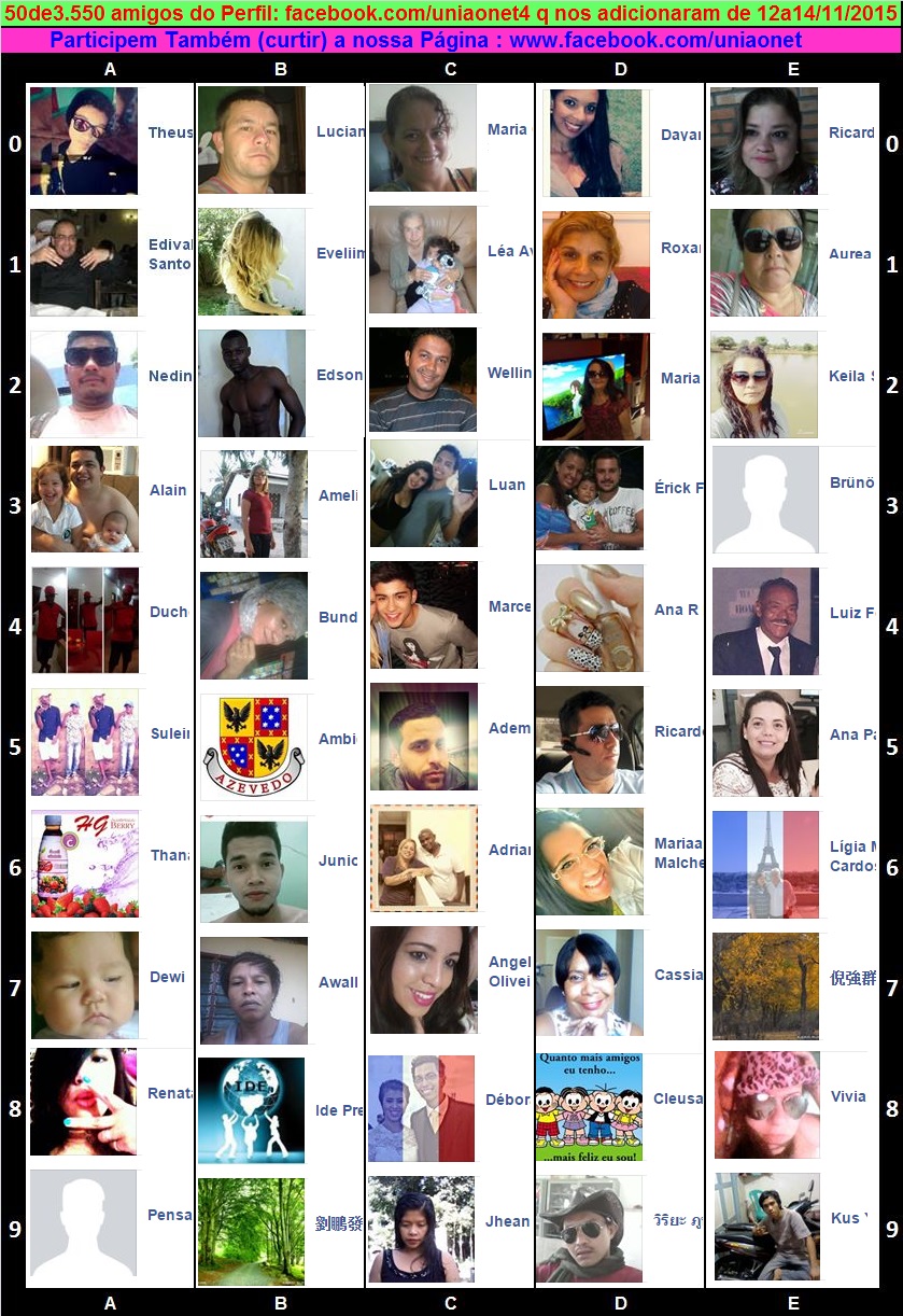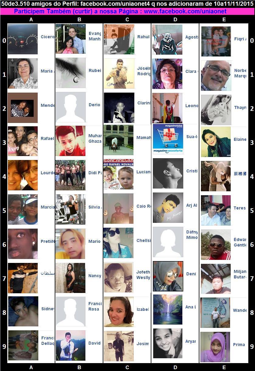 50novos amigos (de3.550) que de 12a14/11/2015 , nos adicionaram em seus Perfis