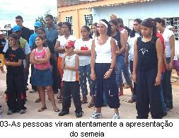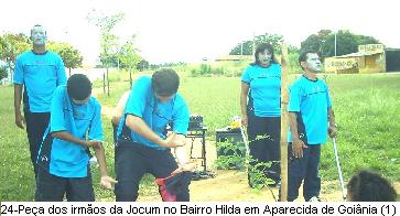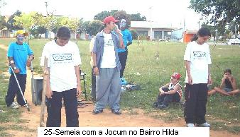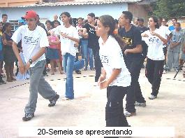 . 6. Jocum dá oportunidade ao Semeia No regresso para casa depois de apresentar no St Trindade II, parte do Semeia, com Thiago, Thiaguinho, Aline e Clarice, encontraram na praça do Bairro Hilda em Aparecida de Goiânia, um grupo de irmãos da Jovens Com Uma Missão (JOCUM) iniciando o evangelismo para os moradores. Ao assistir as apresentações e peças os irmãos que estavam se apresentando convidaram o Semeia para também fazer parte. Na ocasião o Semeia apresentou corteografia de duas músicas. O trabalho da JOCUM é muito salutar, pois apesar de haver muitos templos naquele bairro, não se vê qualquer tipo de evangelismo popular. .