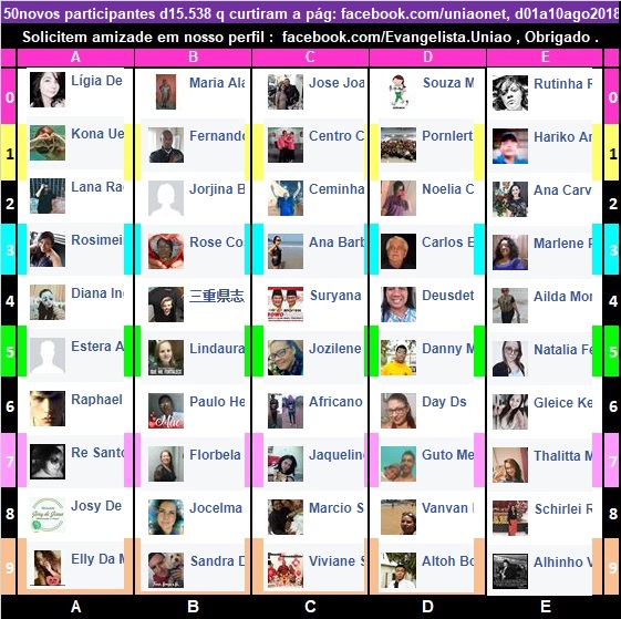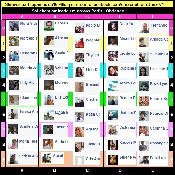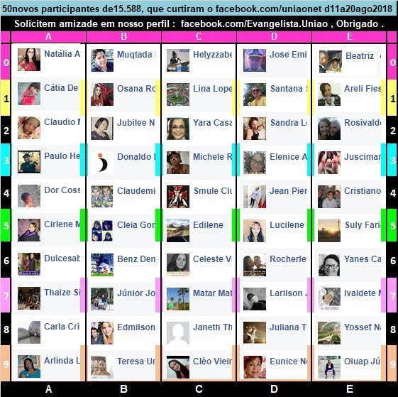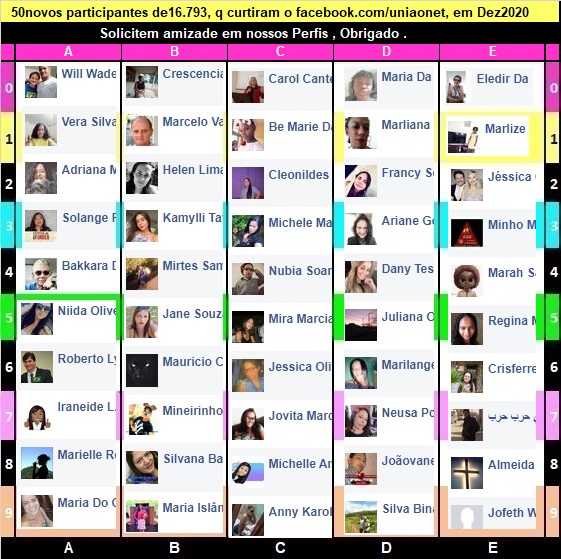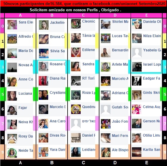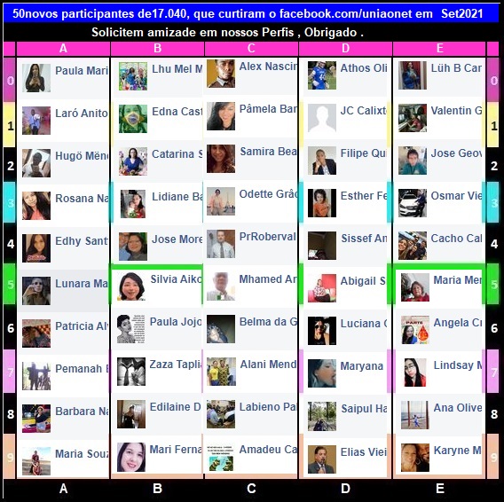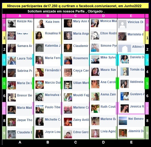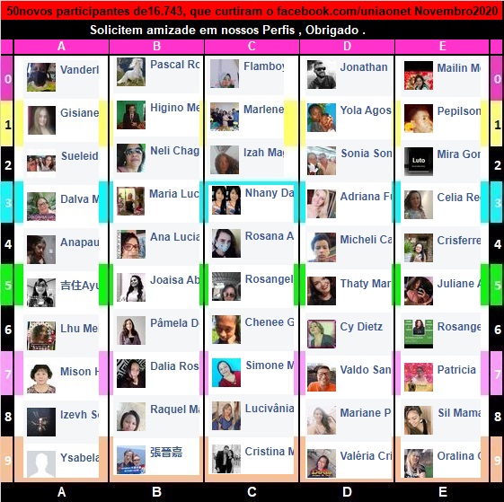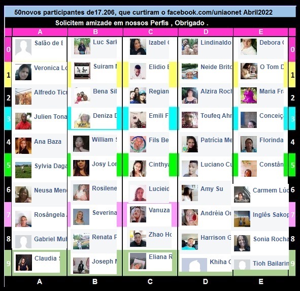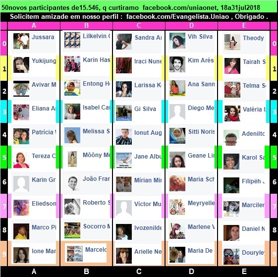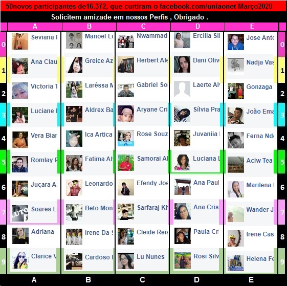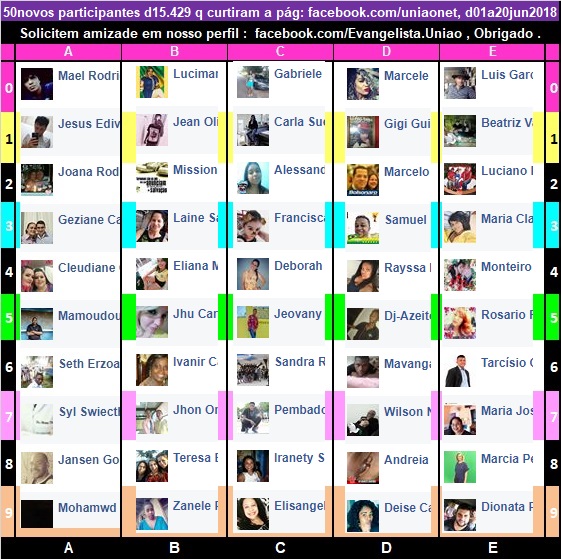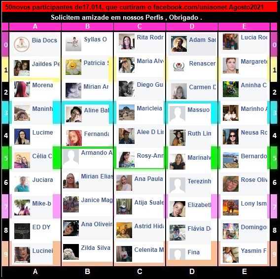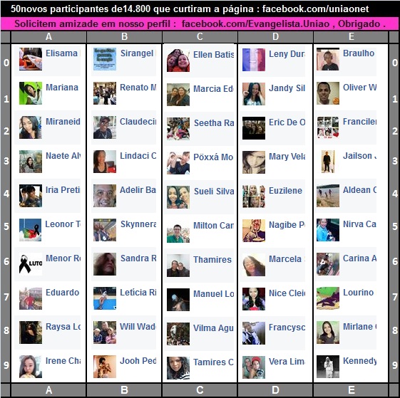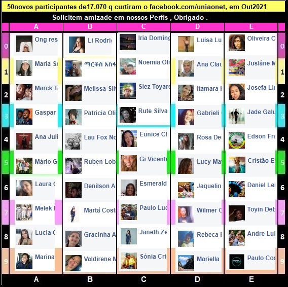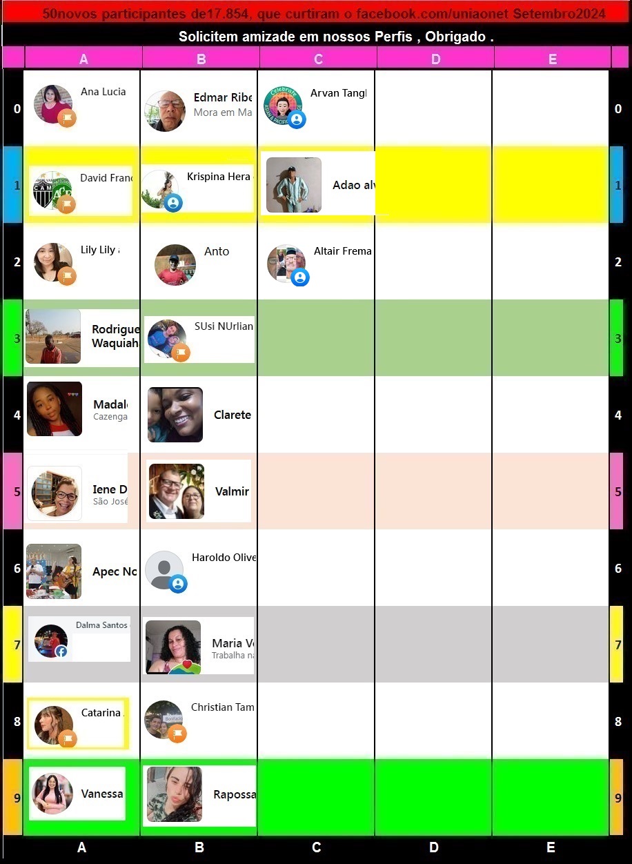 B8 Yaya Leuhena B9 Auri Paiva C1 Ermelinda Kellen D0 ademir vieira D1 Ines de