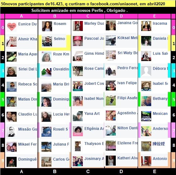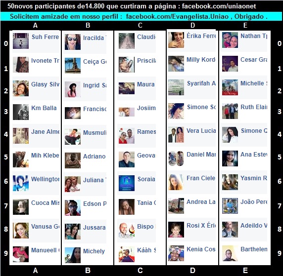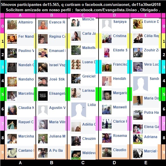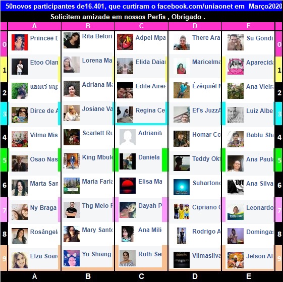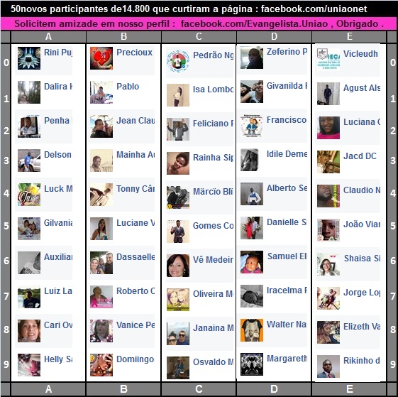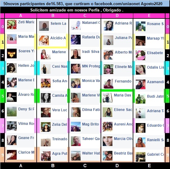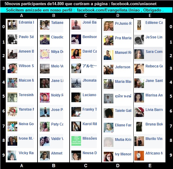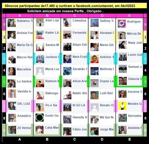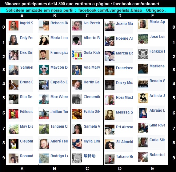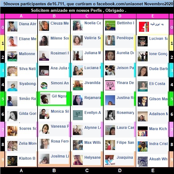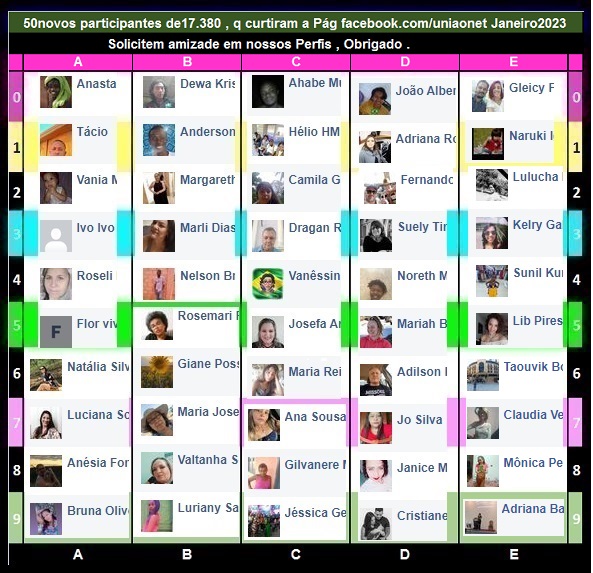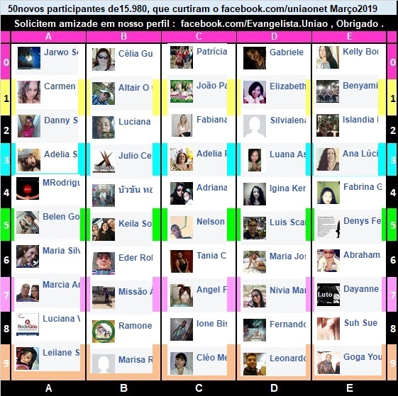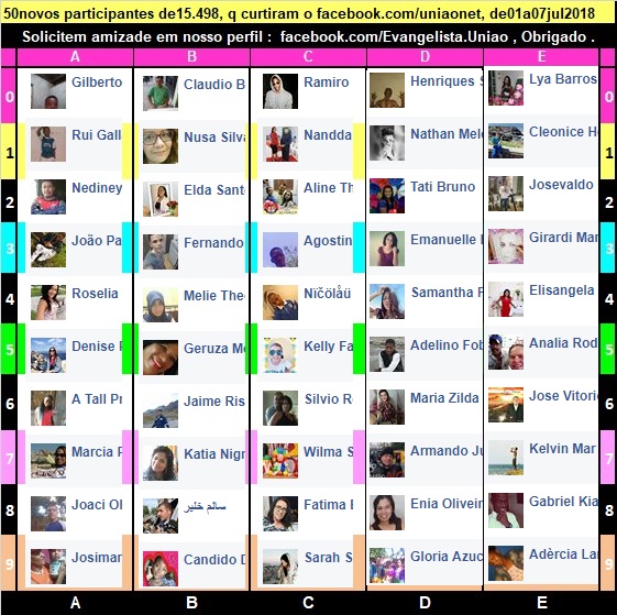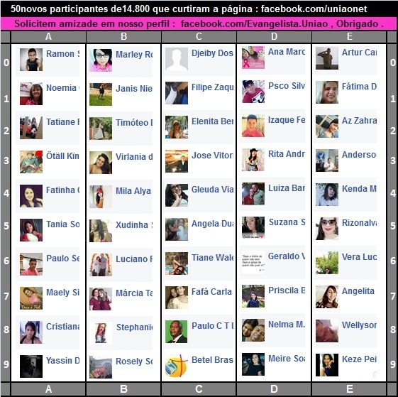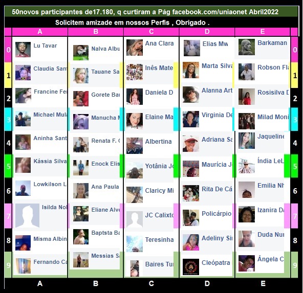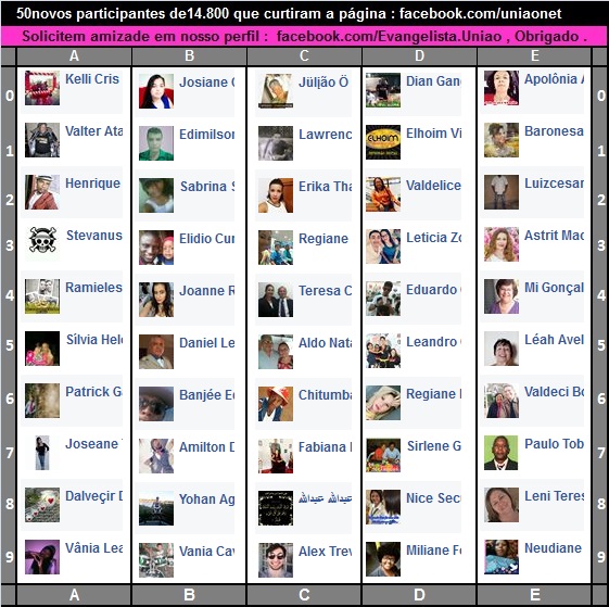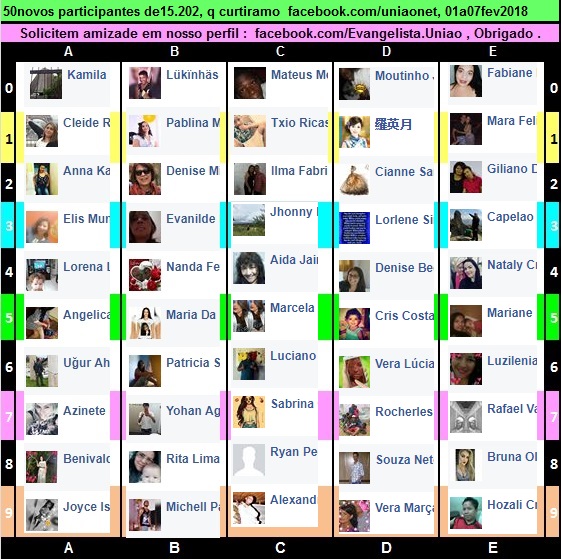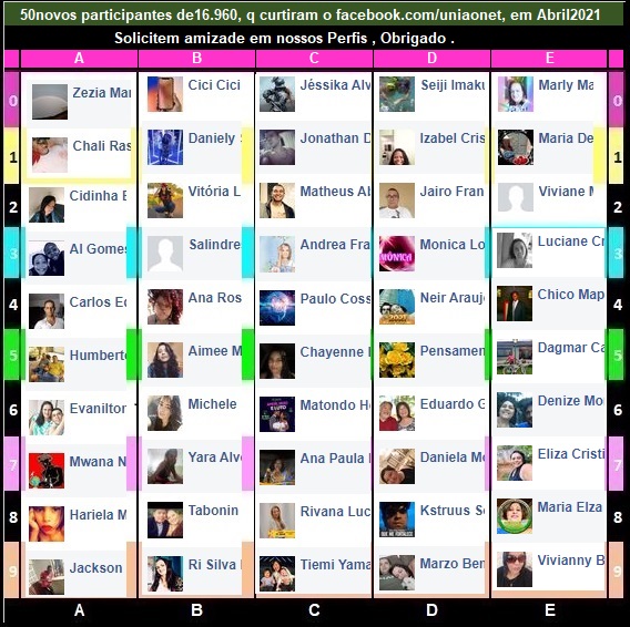 B8 Yaya Leuhena B9 Auri Paiva C1 Ermelinda Kellen D0 ademir vieira D1 Ines de