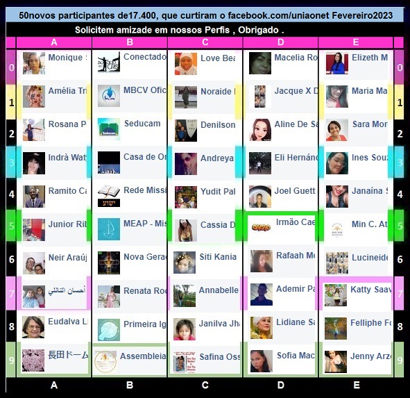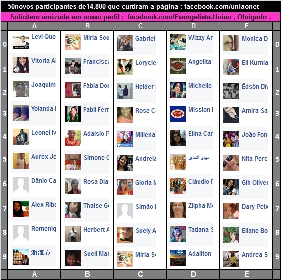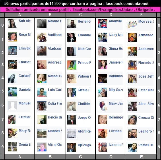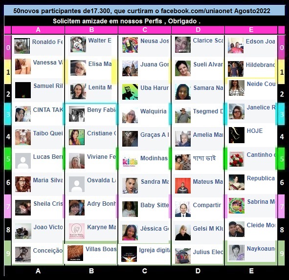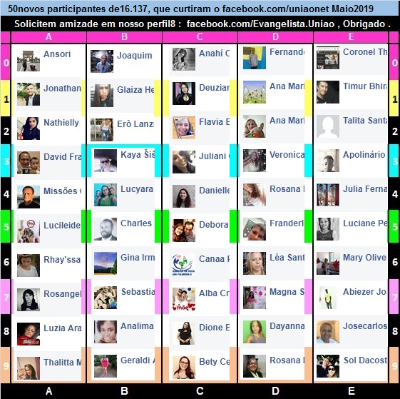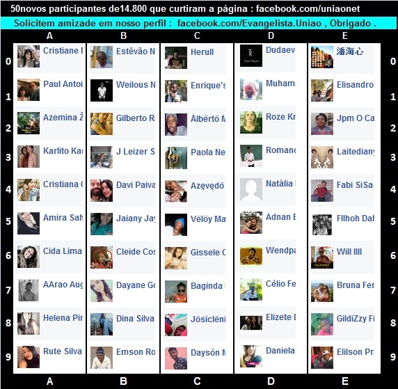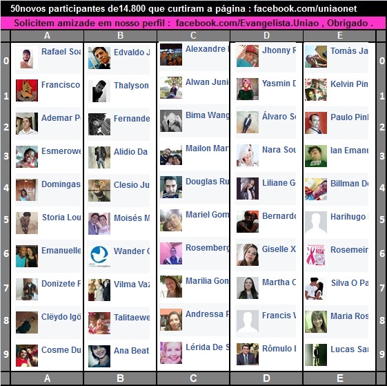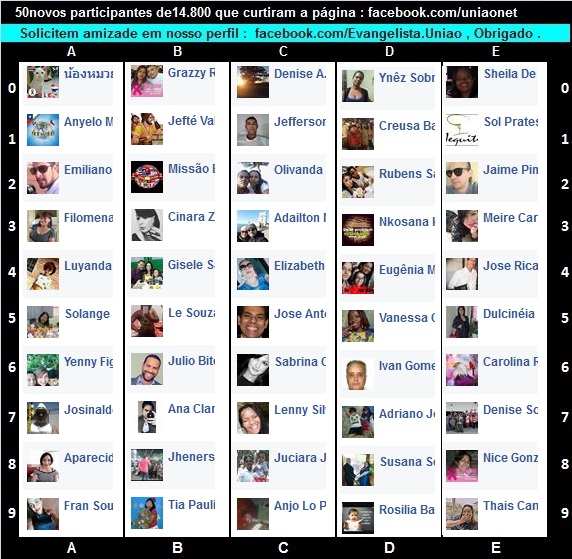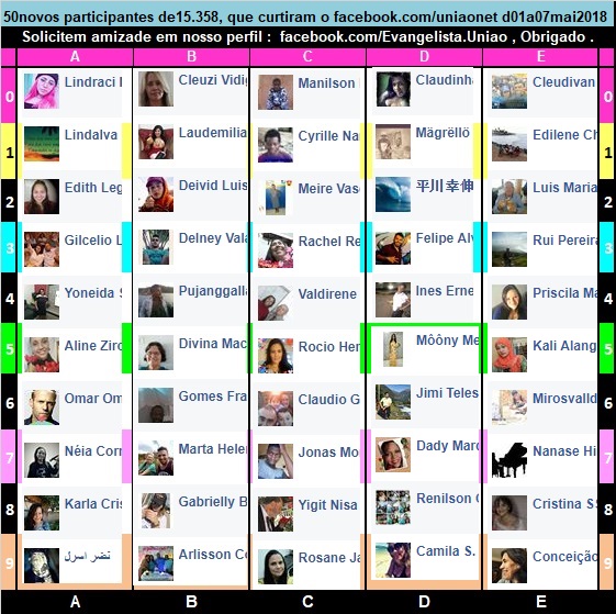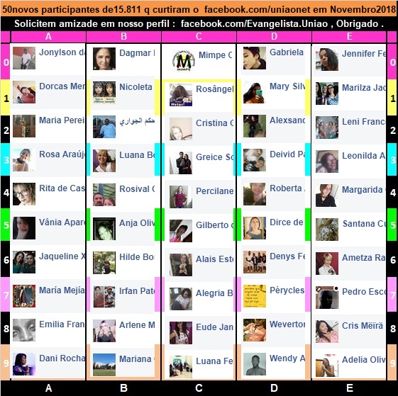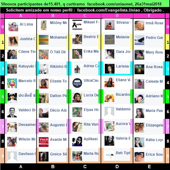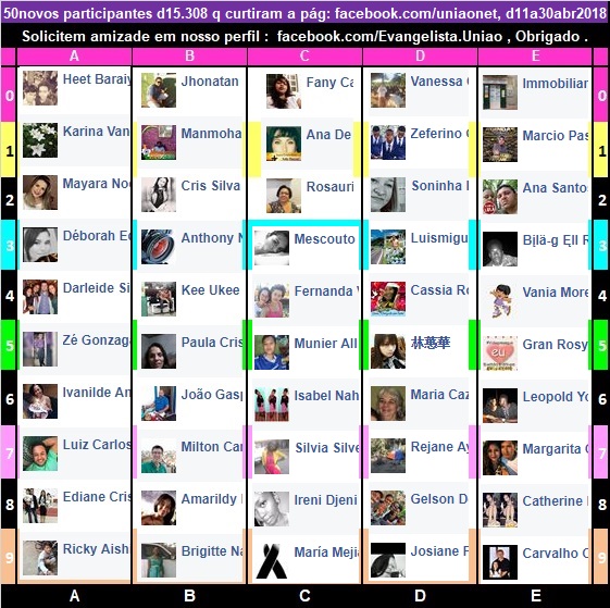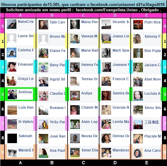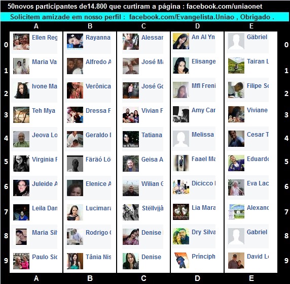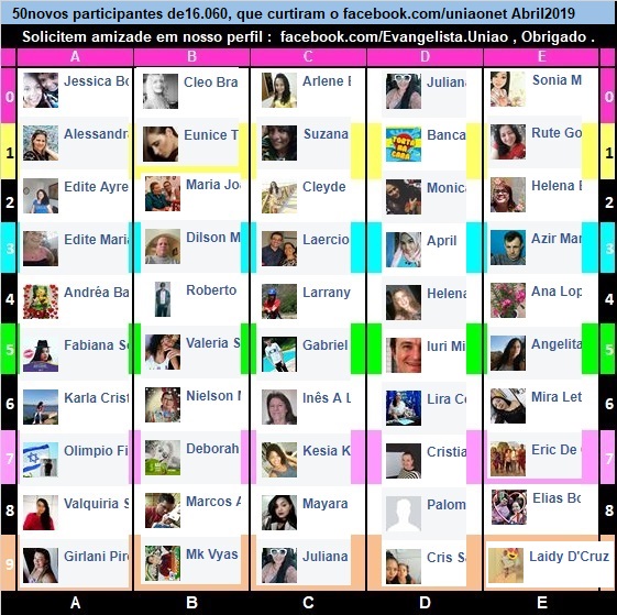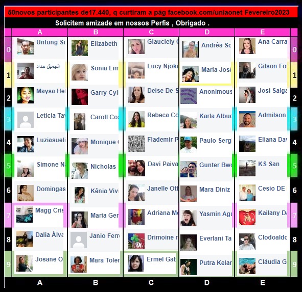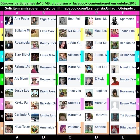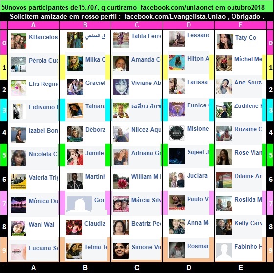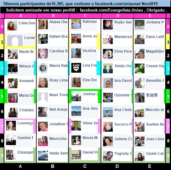B8 Yaya Leuhena B9 Auri Paiva C1 Ermelinda Kellen D0 ademir vieira D1 Ines de