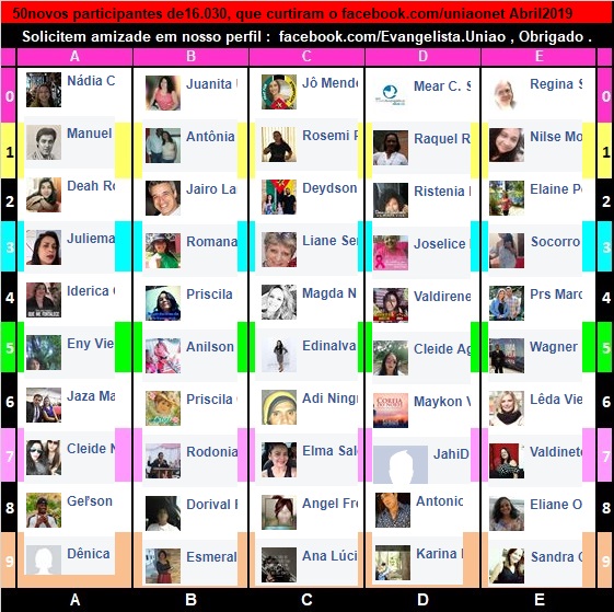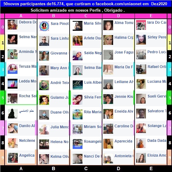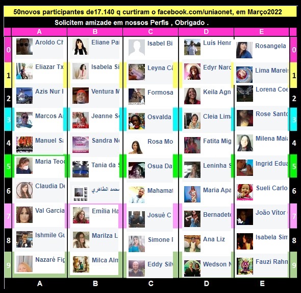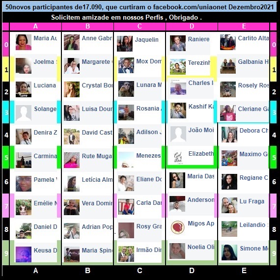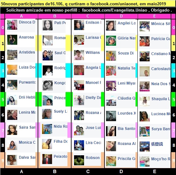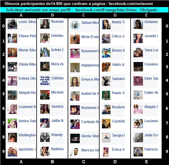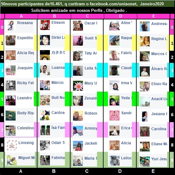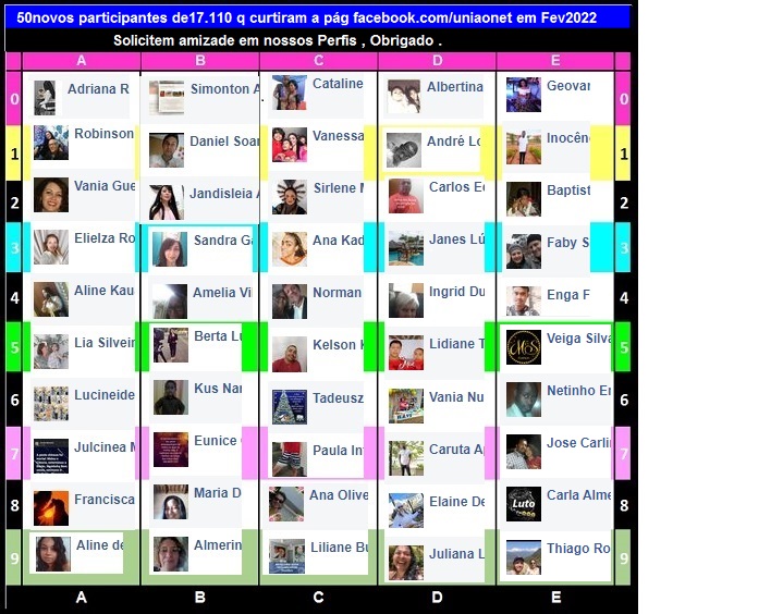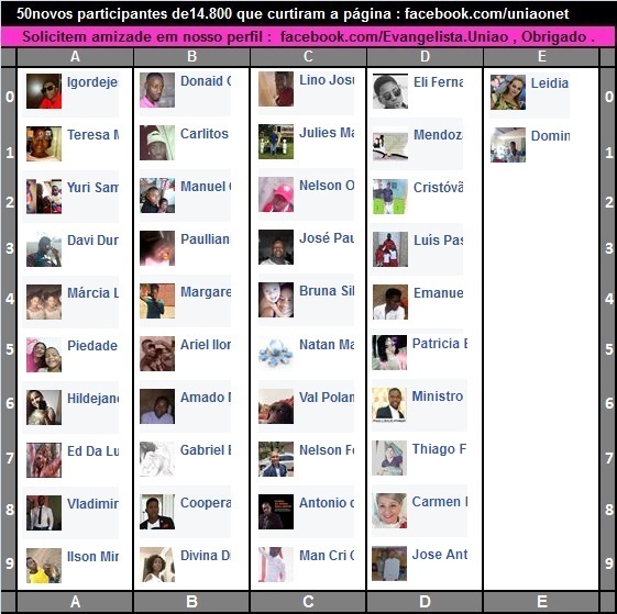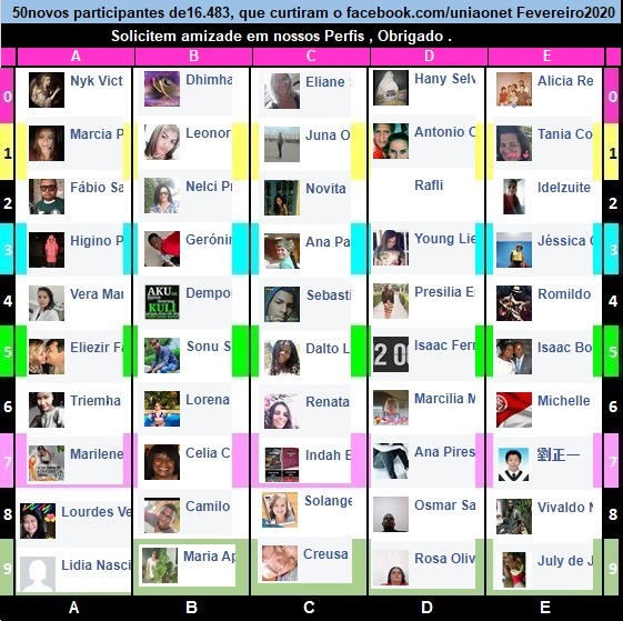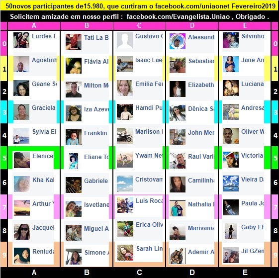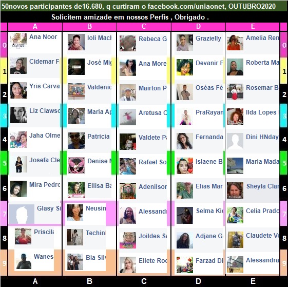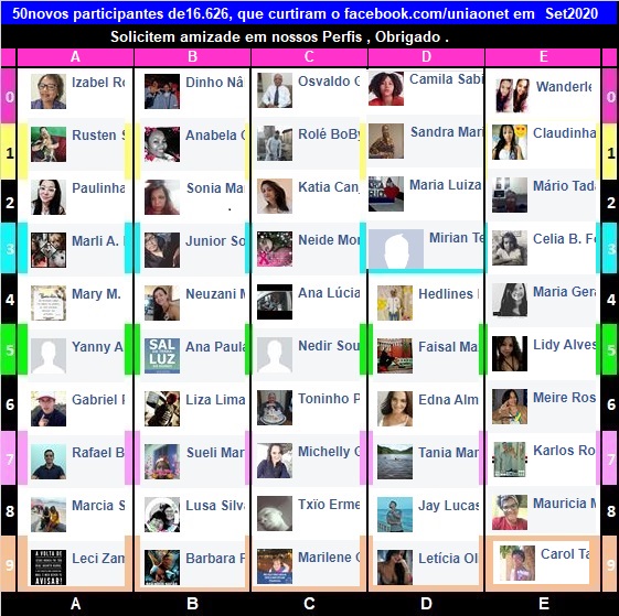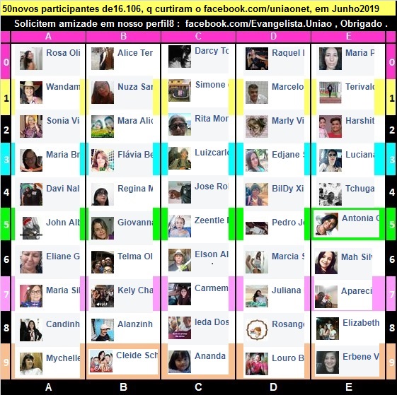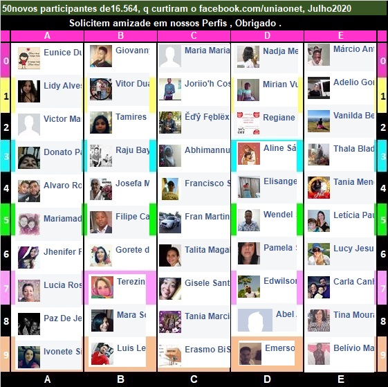 C5 Socorro Souza C7 Marilucy Leite D9 Antonio Monteiro E0 Nordino Garido E1 Neir