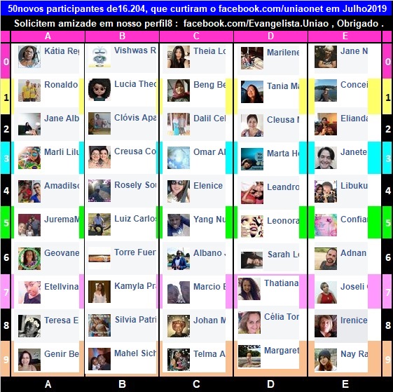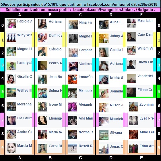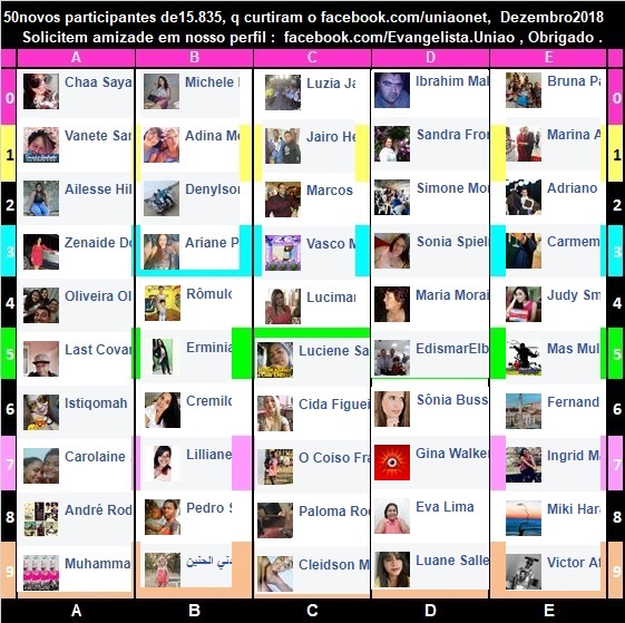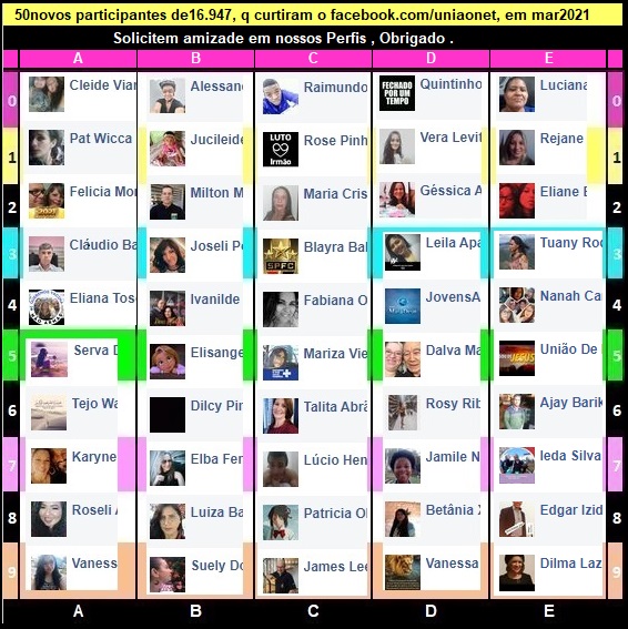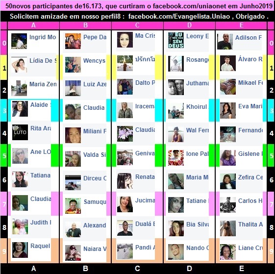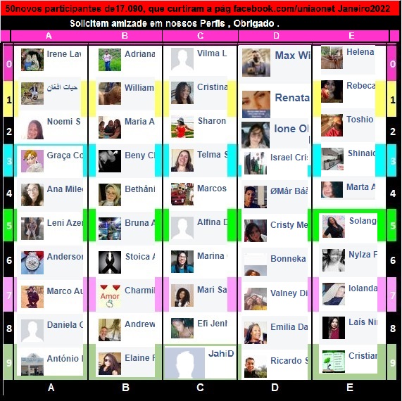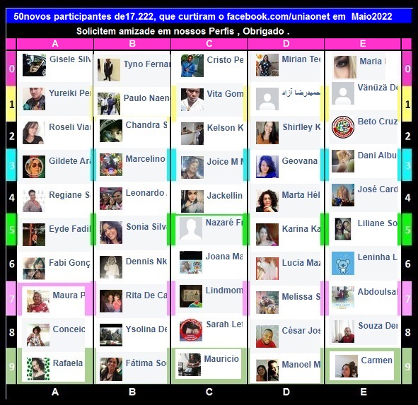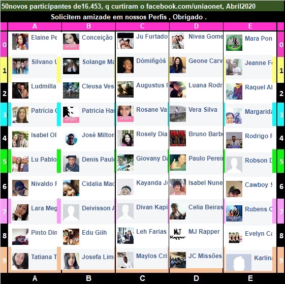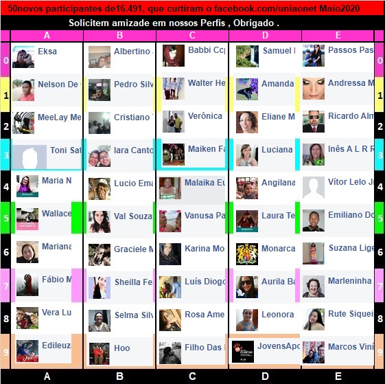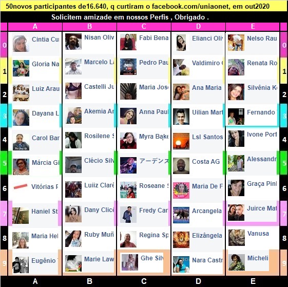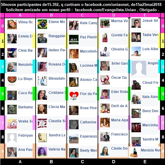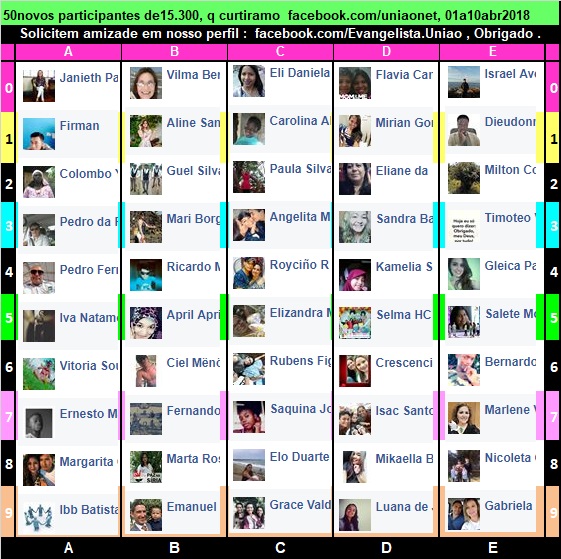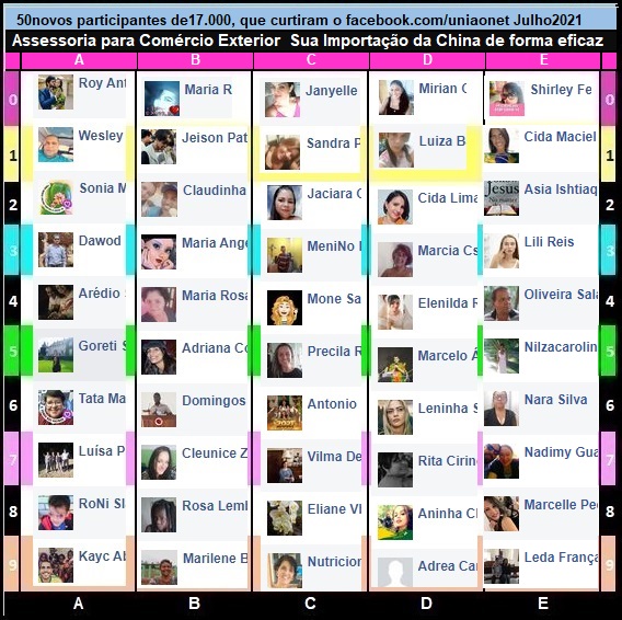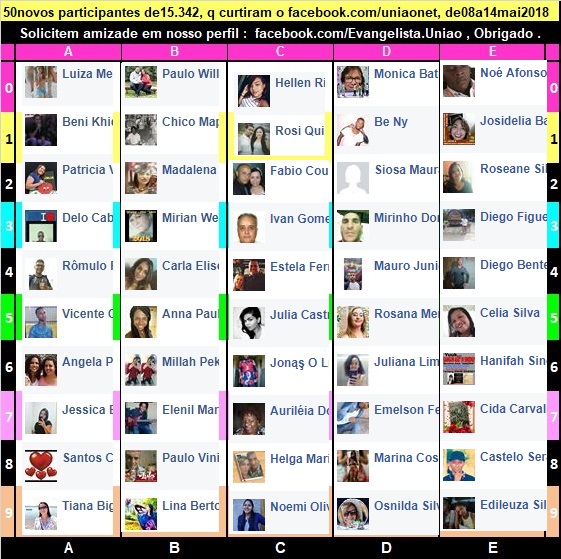 C5 Socorro Souza C7 Marilucy Leite D9 Antonio Monteiro E0 Nordino Garido E1 Neir