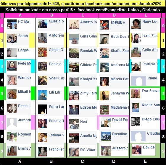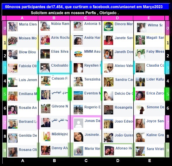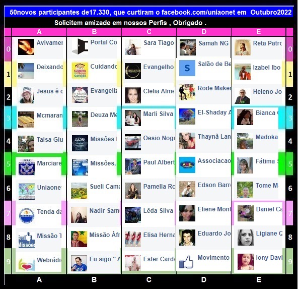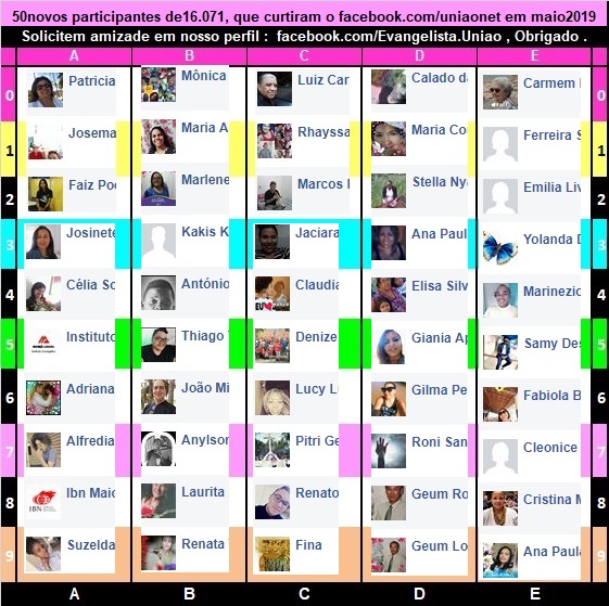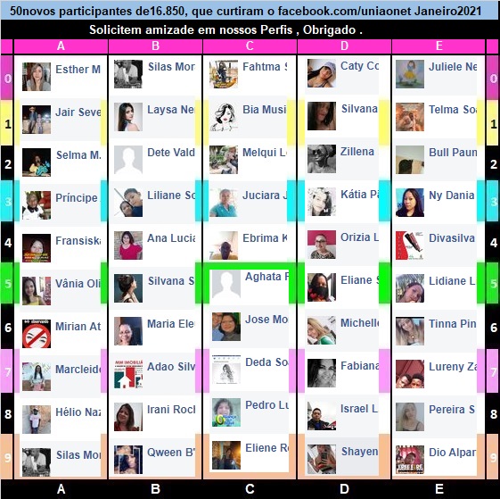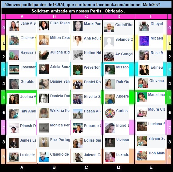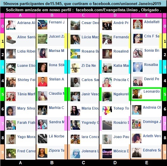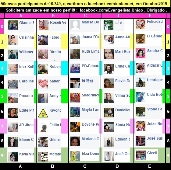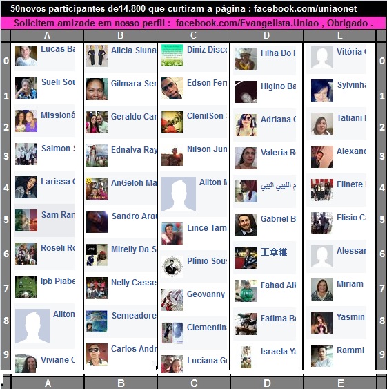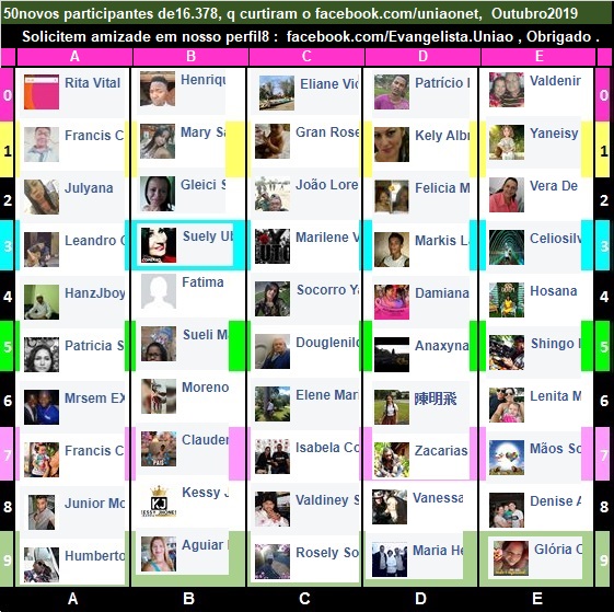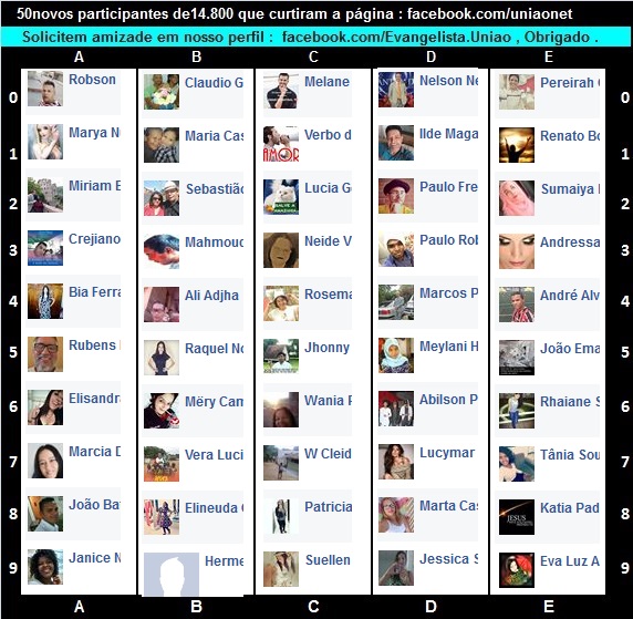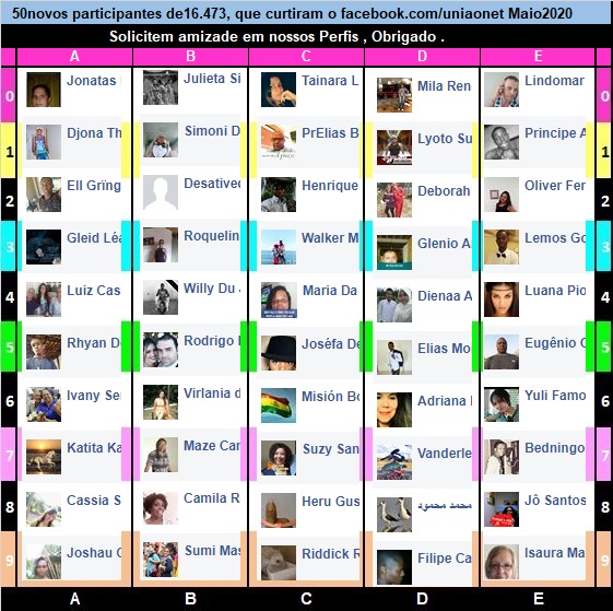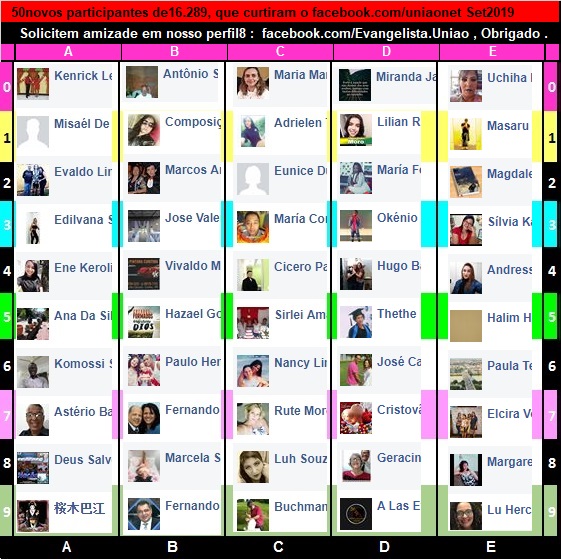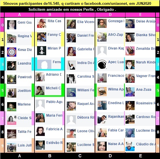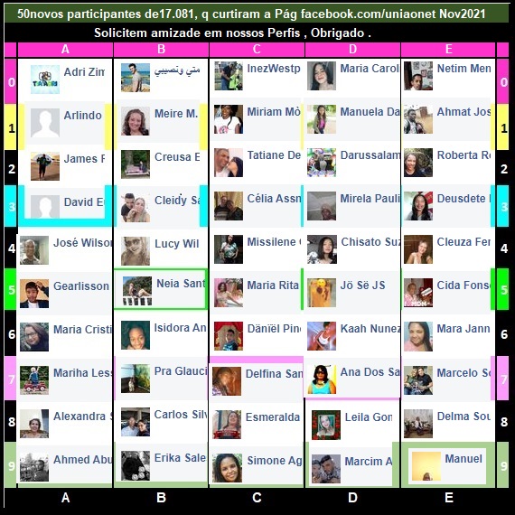 C5 Socorro Souza C7 Marilucy Leite D9 Antonio Monteiro E0 Nordino Garido E1 Neir
