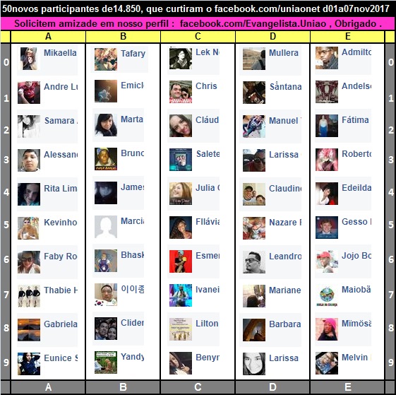 A8 Antonio Edson Gurgel Lins A9 Apriliaa Creww B0 Mickaella Sousa B1 Michael Saldaña